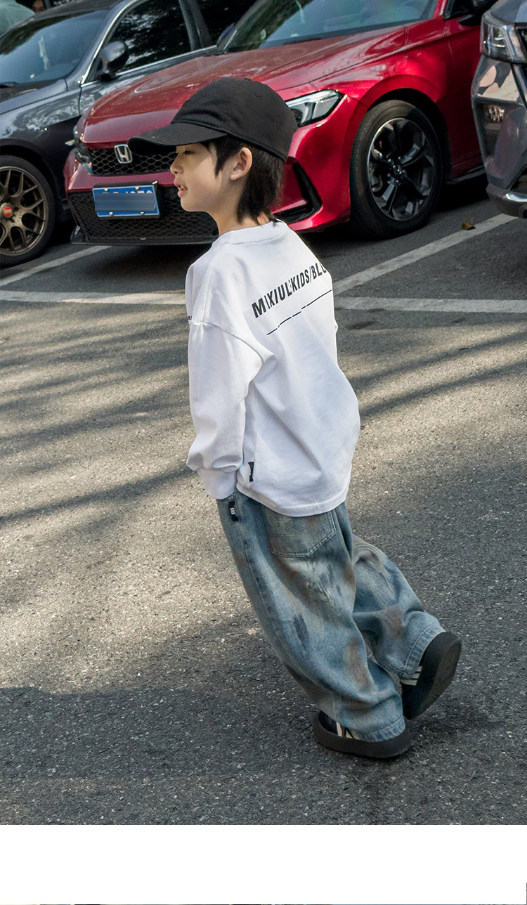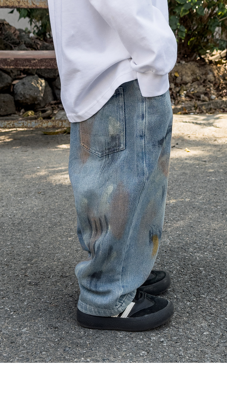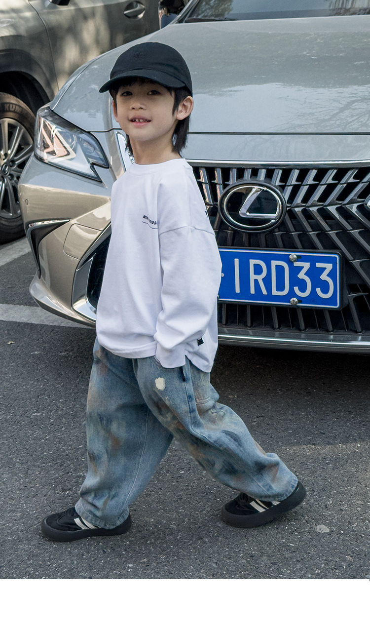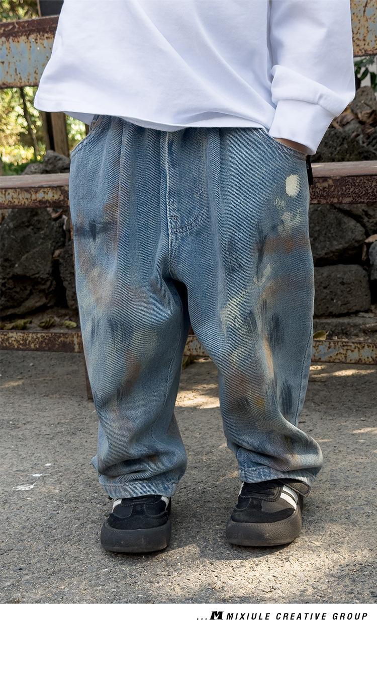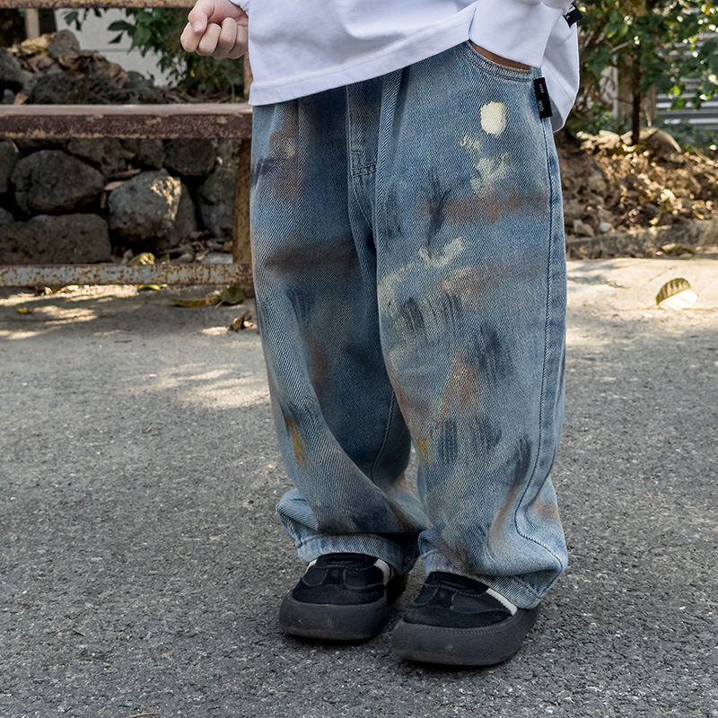 어린이 청바지 2025 봄 새 소년 느슨한 서양식 낙서 바지 소년 캐주얼 잘 생긴 유행 바지스토어 가기
