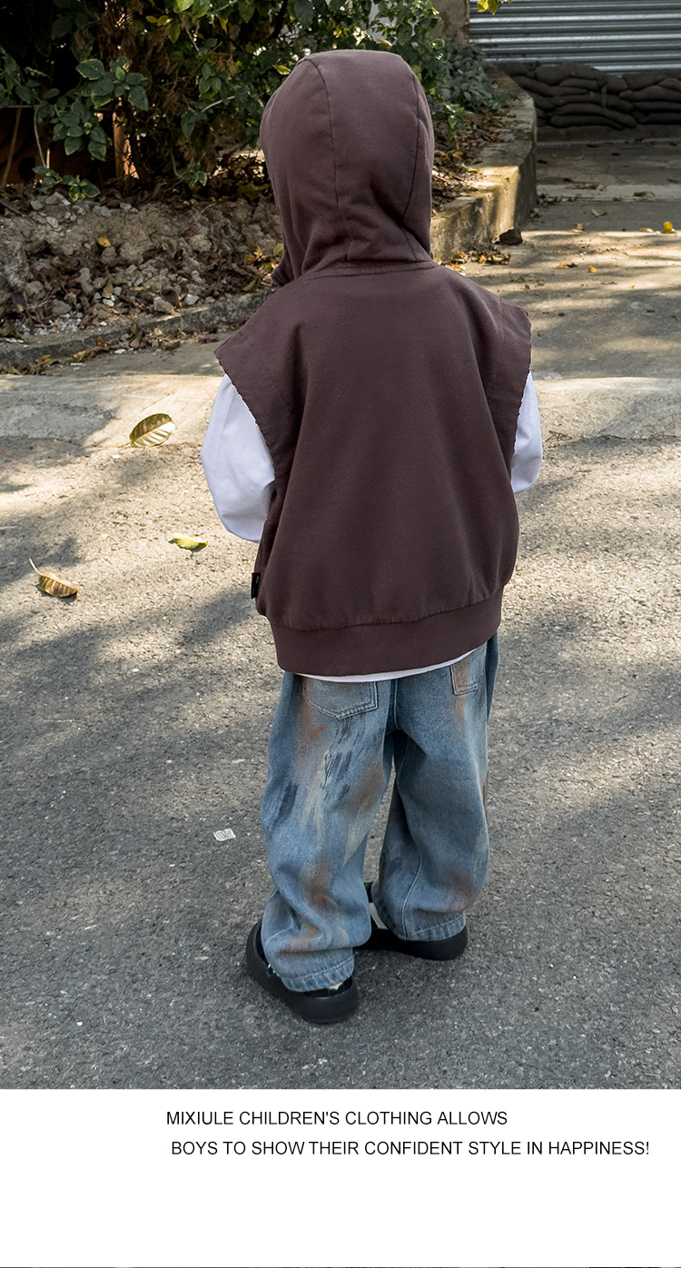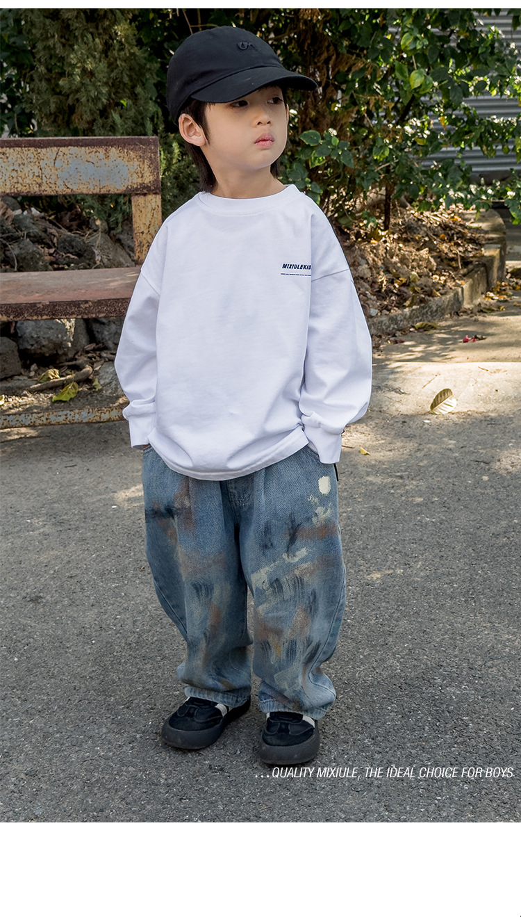 어린이 청바지 2025 봄 새 소년 느슨한 서양식 낙서 바지 소년 캐주얼 잘 생긴 유행 바지