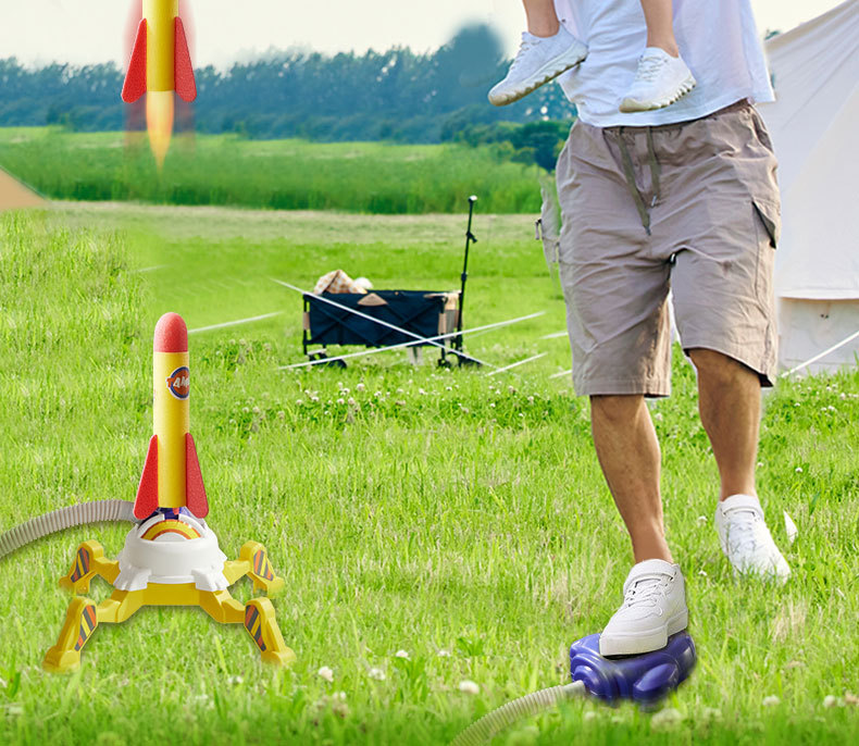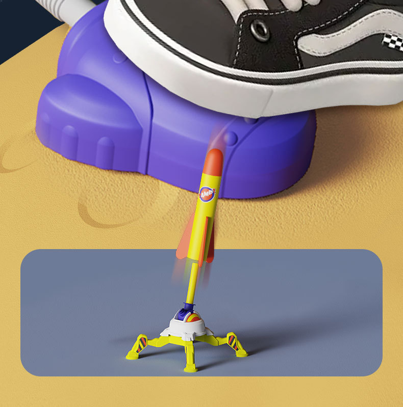 어린이 장난감 발 로켓 발사 프리스비 플래시 폭탄 비행 배럴 비행 야외 작은 로켓