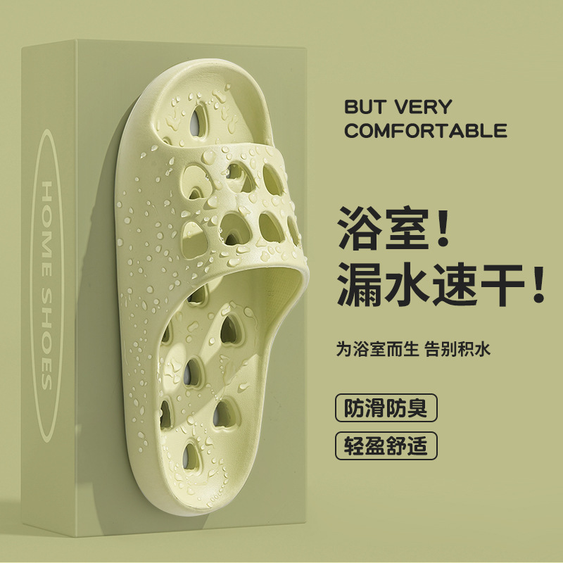 누설 샌들과 슬리퍼 남성용 욕실 속이 빈 빠른 건조 미끄럼 슬리퍼 홈 실내 욕실 부드러운 바닥 탈취제 여성 여름
