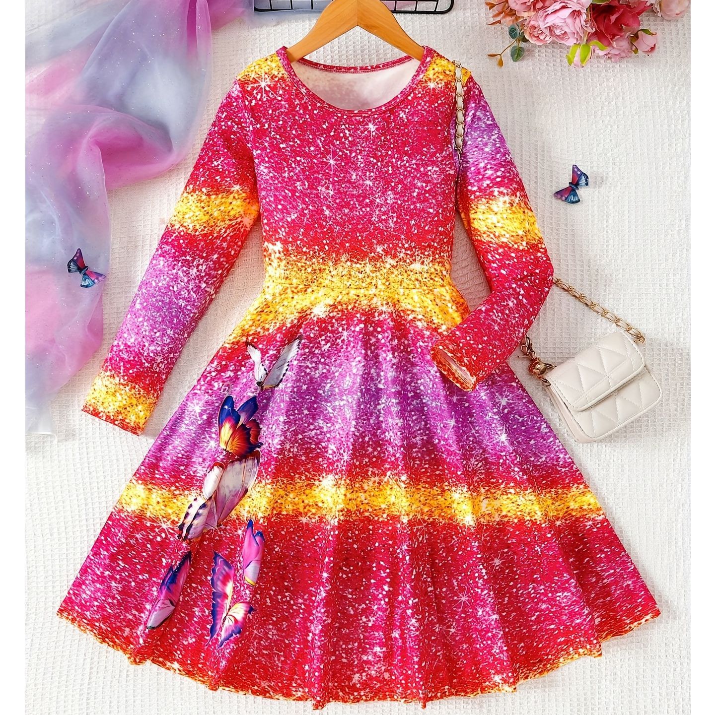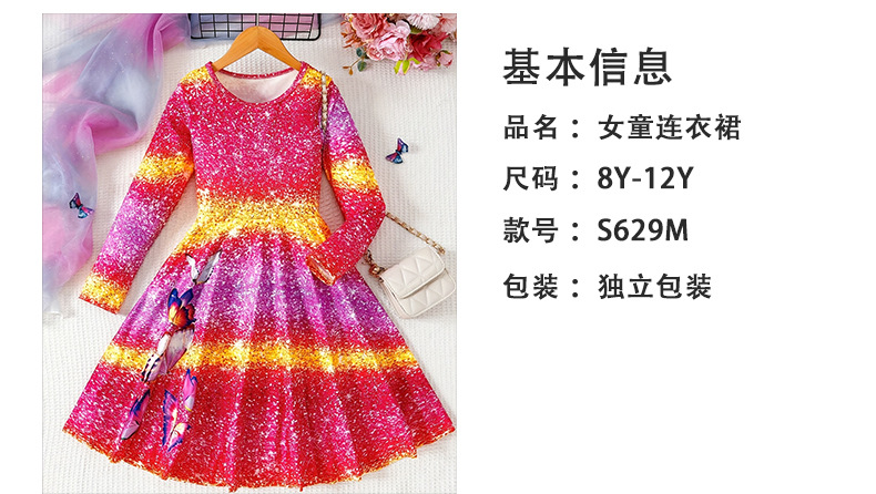 국경 간 대외 무역 소녀 원피스 봄과 가을 새로운 긴 소매 나비 인쇄 공주 원피스 큰 아이 캐주얼 패션 서양 스타일스토어 가기