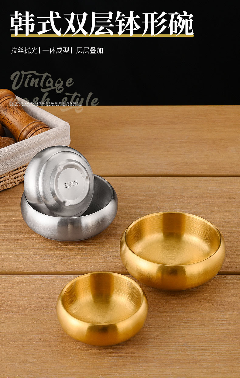 한국식 304 스테인레스 스틸 더블 레이어 밥 그릇 그릇 수프 그릇 김치 그릇 소스 접시 그릇 어린이 안티 스케일 작은 그릇