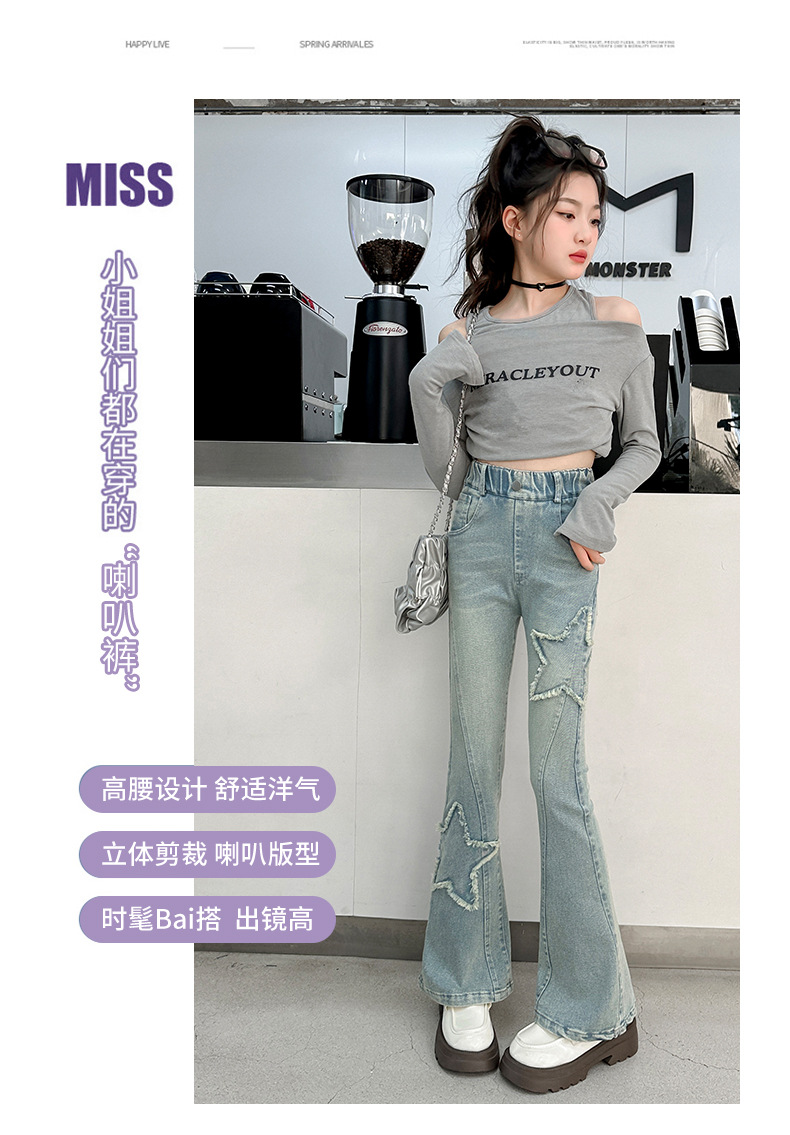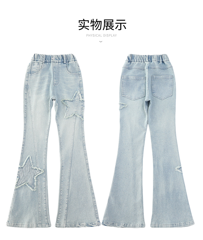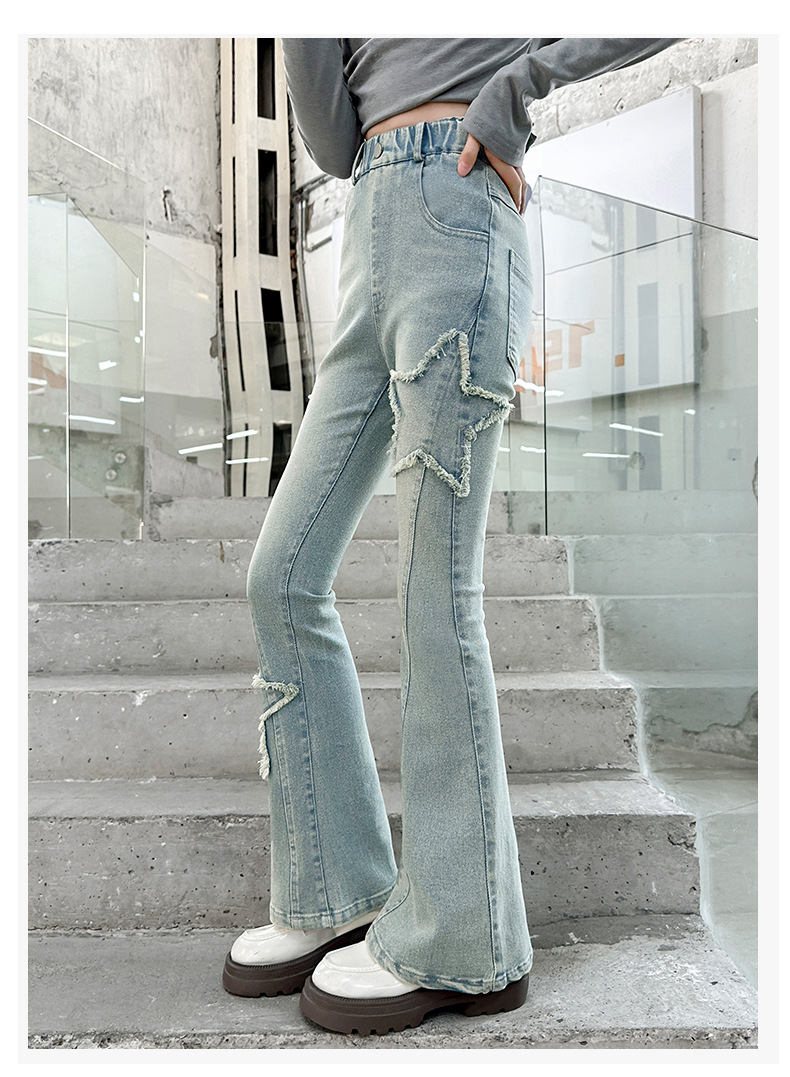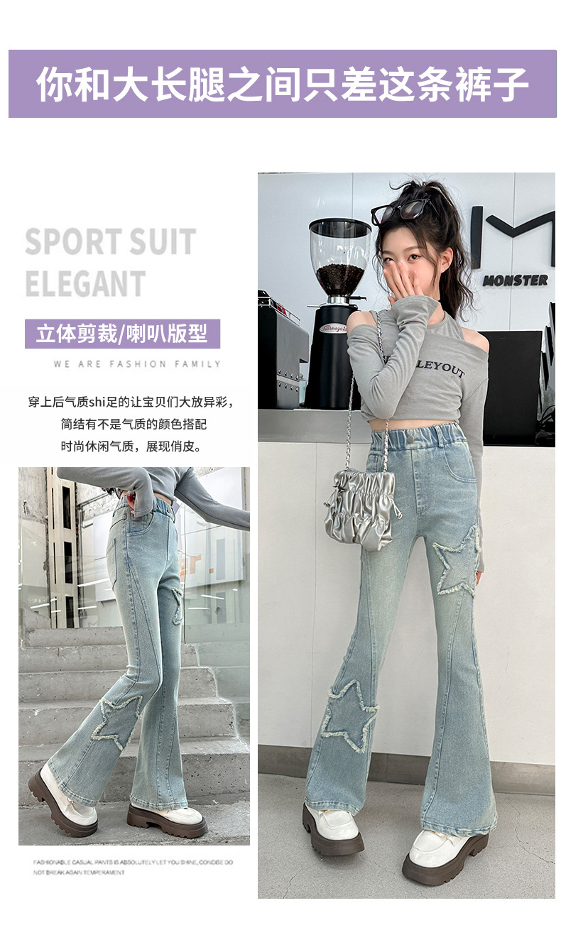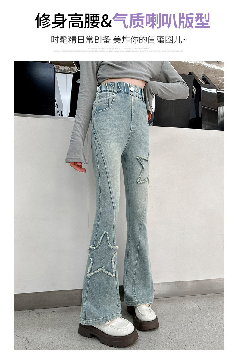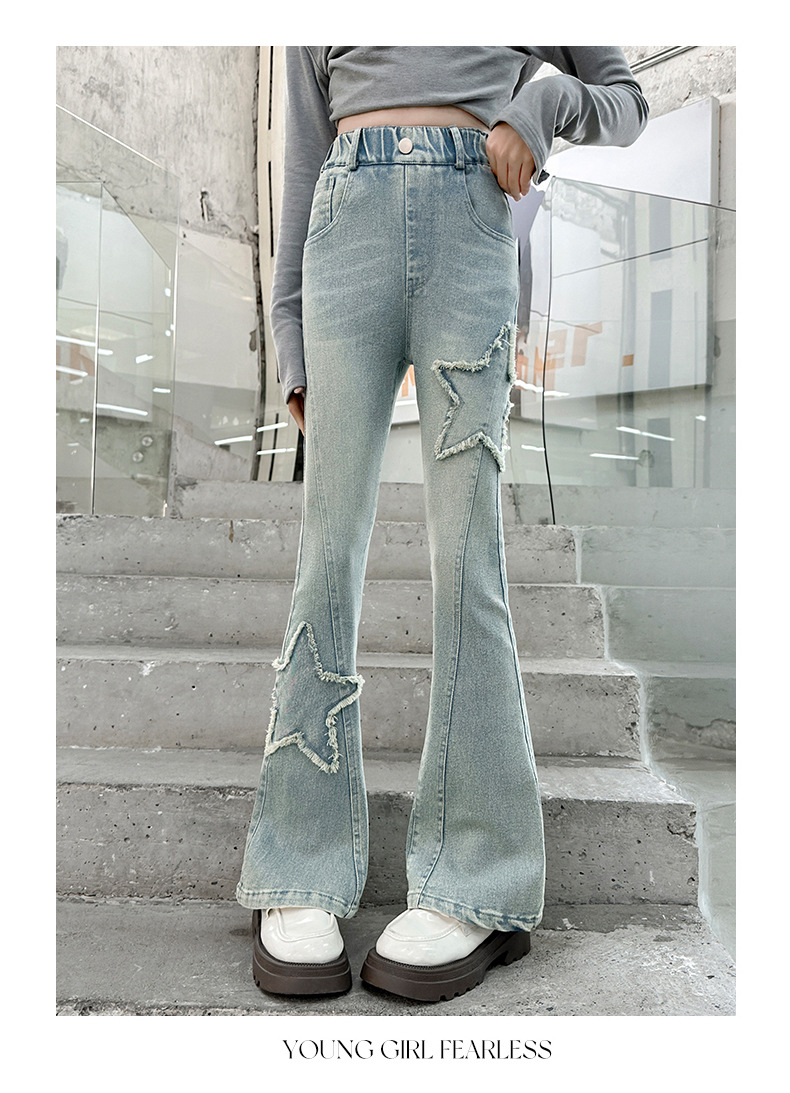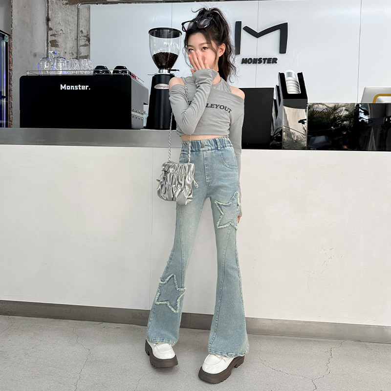 소녀 꽃 무늬 바지 봄과 가을 2025 새로운 어린이 청바지 인터넷 인기있는 외국식 슬림 핏 바지 큰 어린이스토어 가기