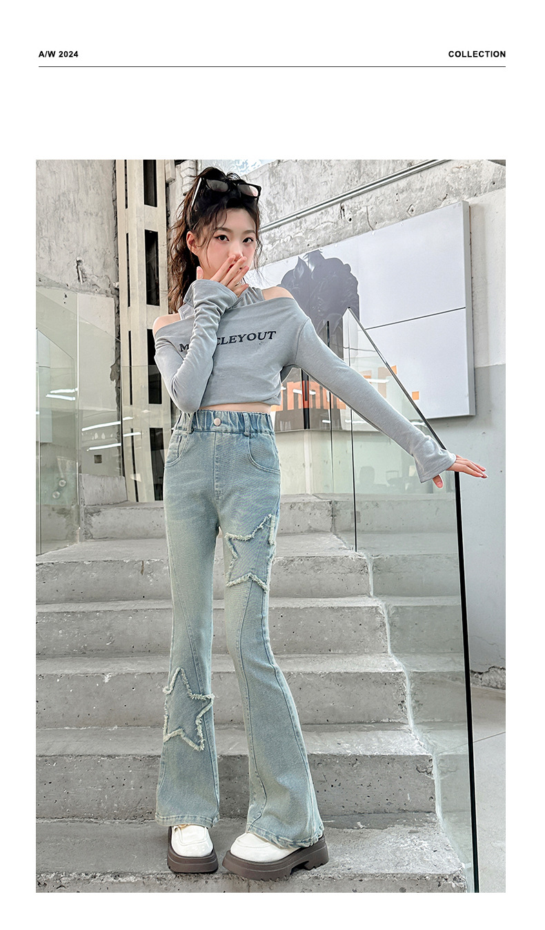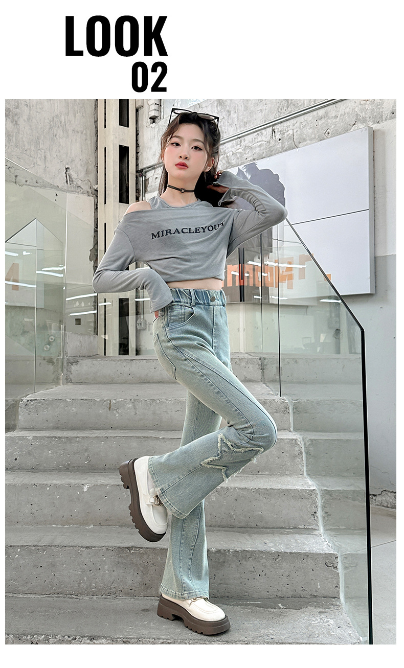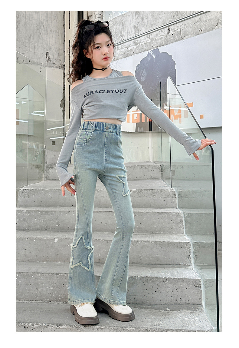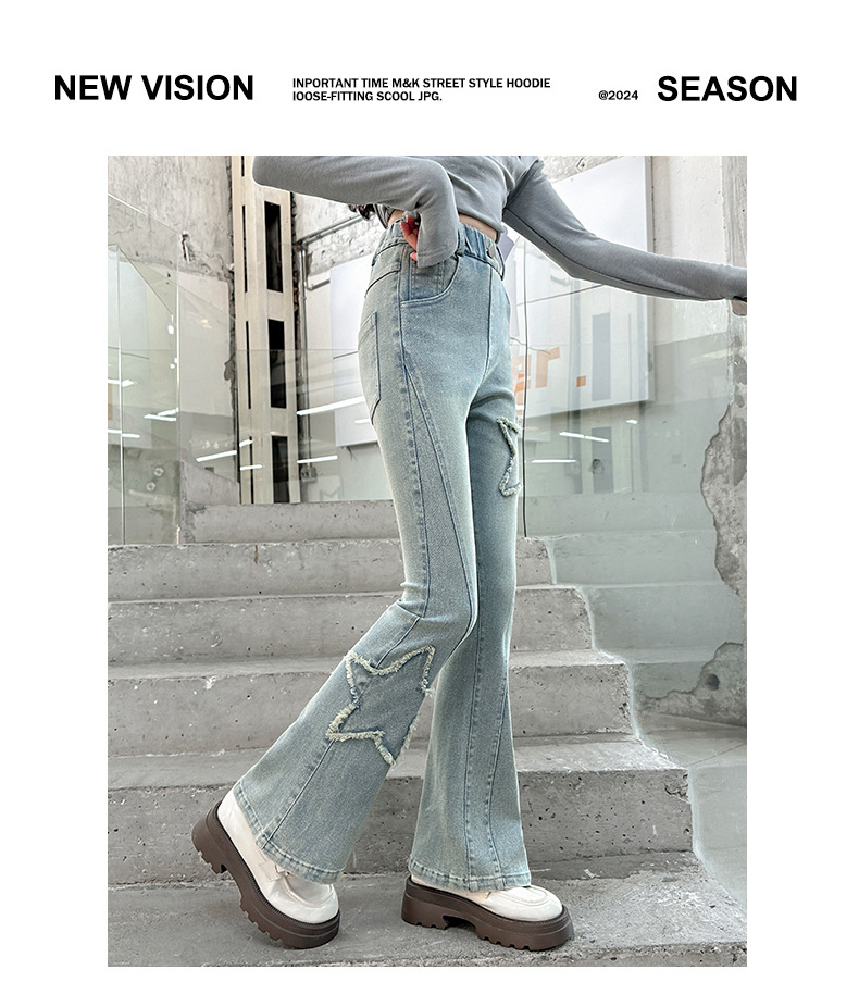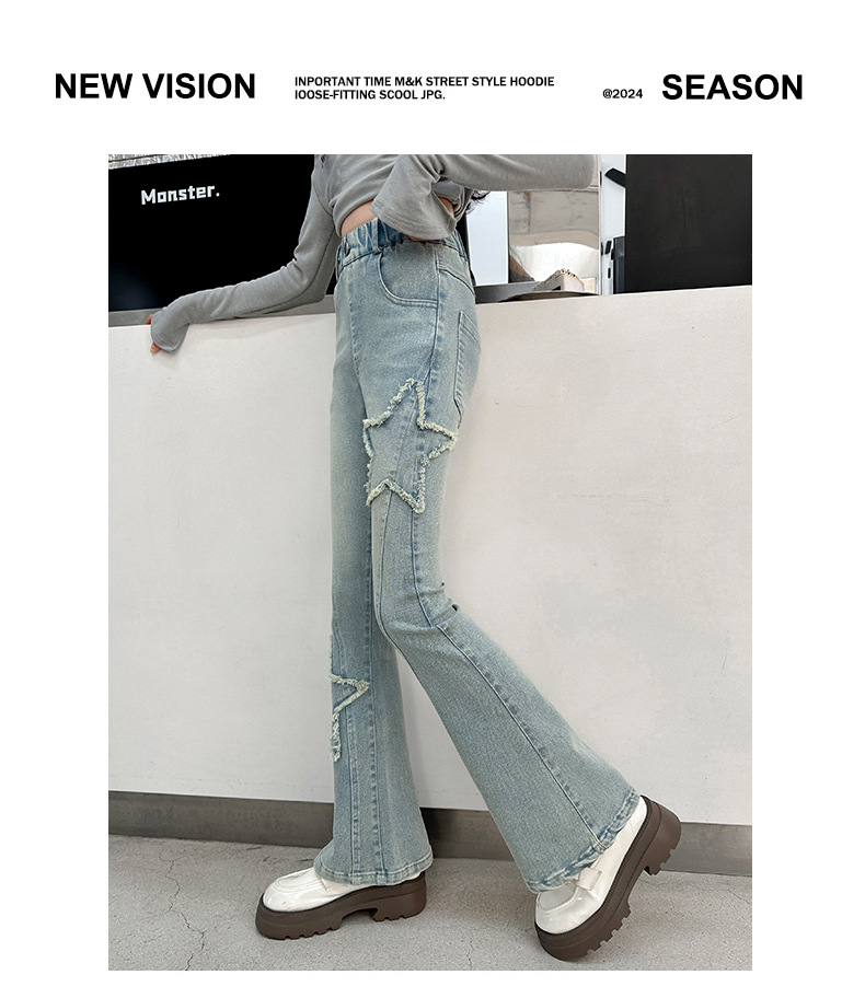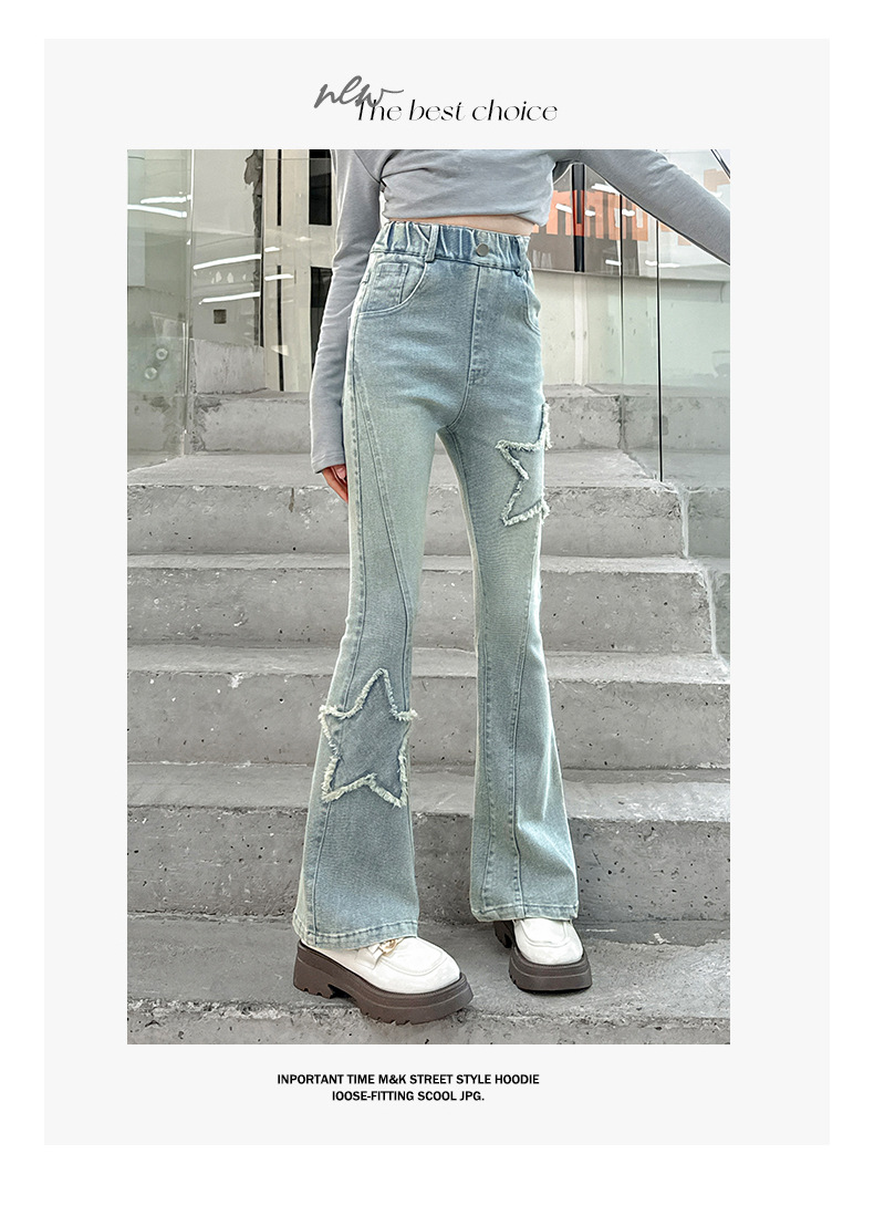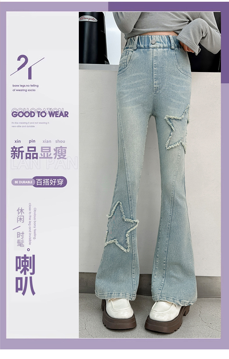 소녀 꽃 무늬 바지 봄과 가을 2025 새로운 어린이 청바지 인터넷 인기있는 외국식 슬림 핏 바지 큰 어린이스토어 가기