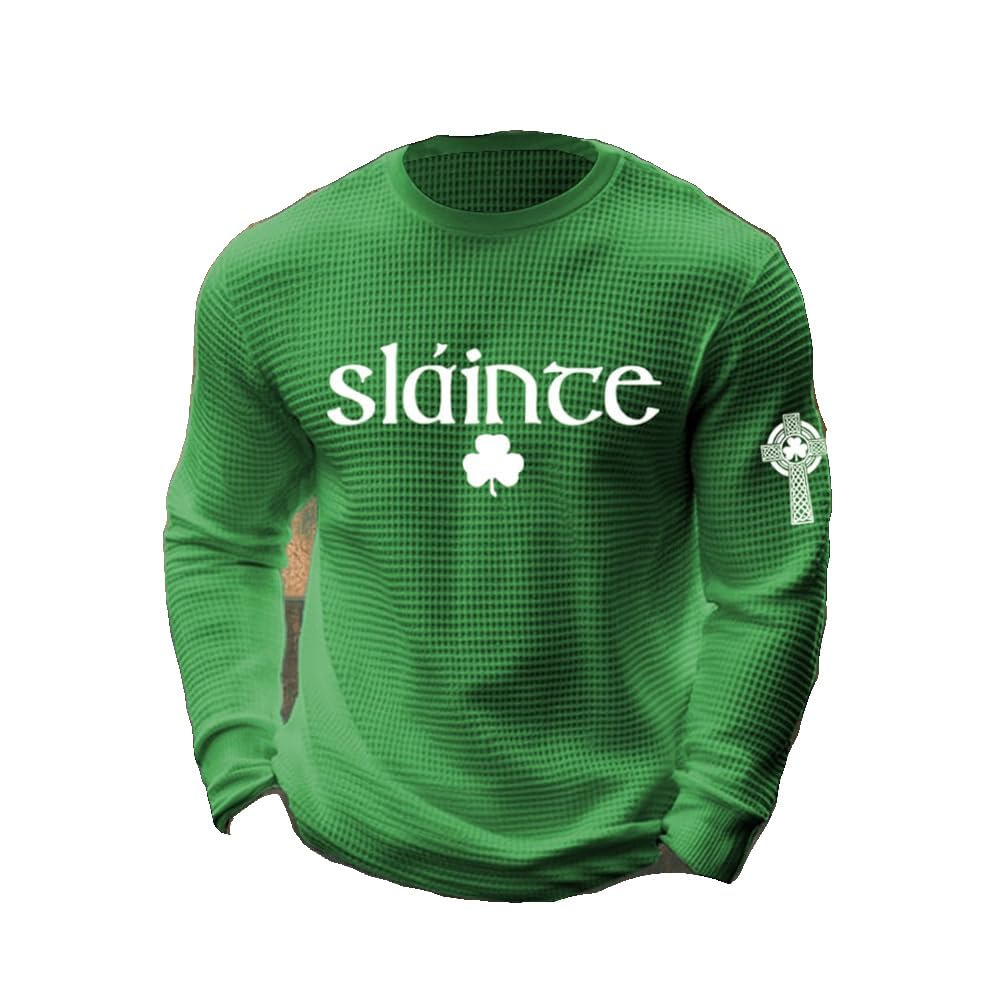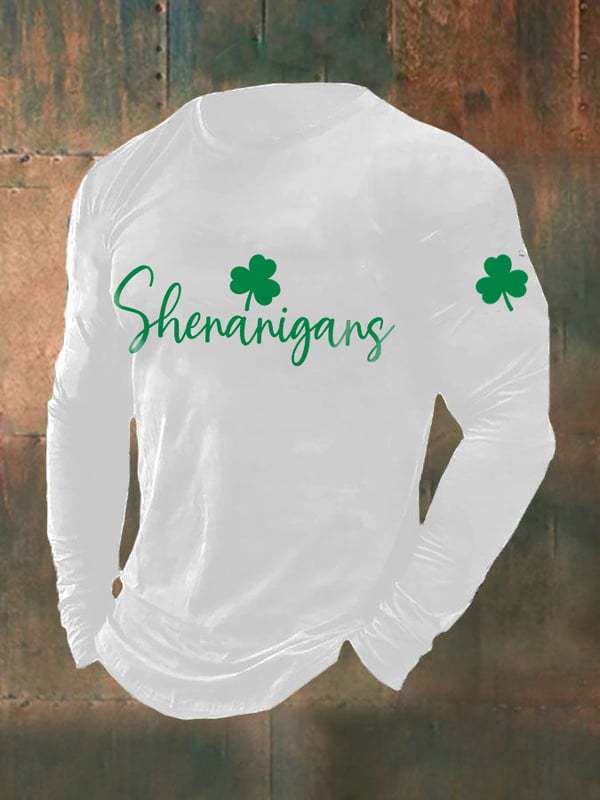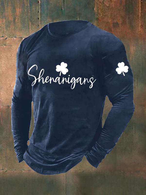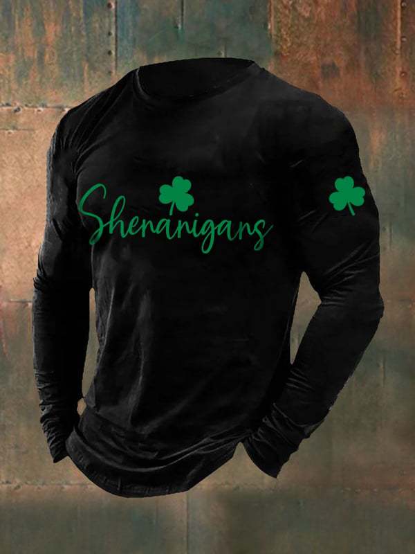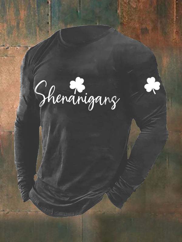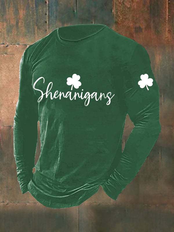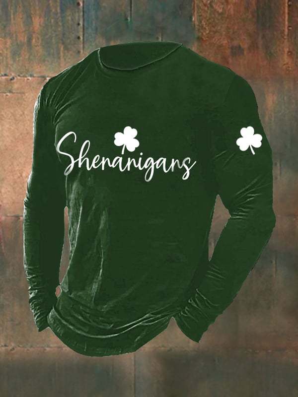 유럽과 미국의 국경 아마존 3D 디지털 인쇄 꽃 세인트 패트릭의 날 라운드 넥 남성 캐주얼 긴 소매 티셔츠 도매스토어 가기