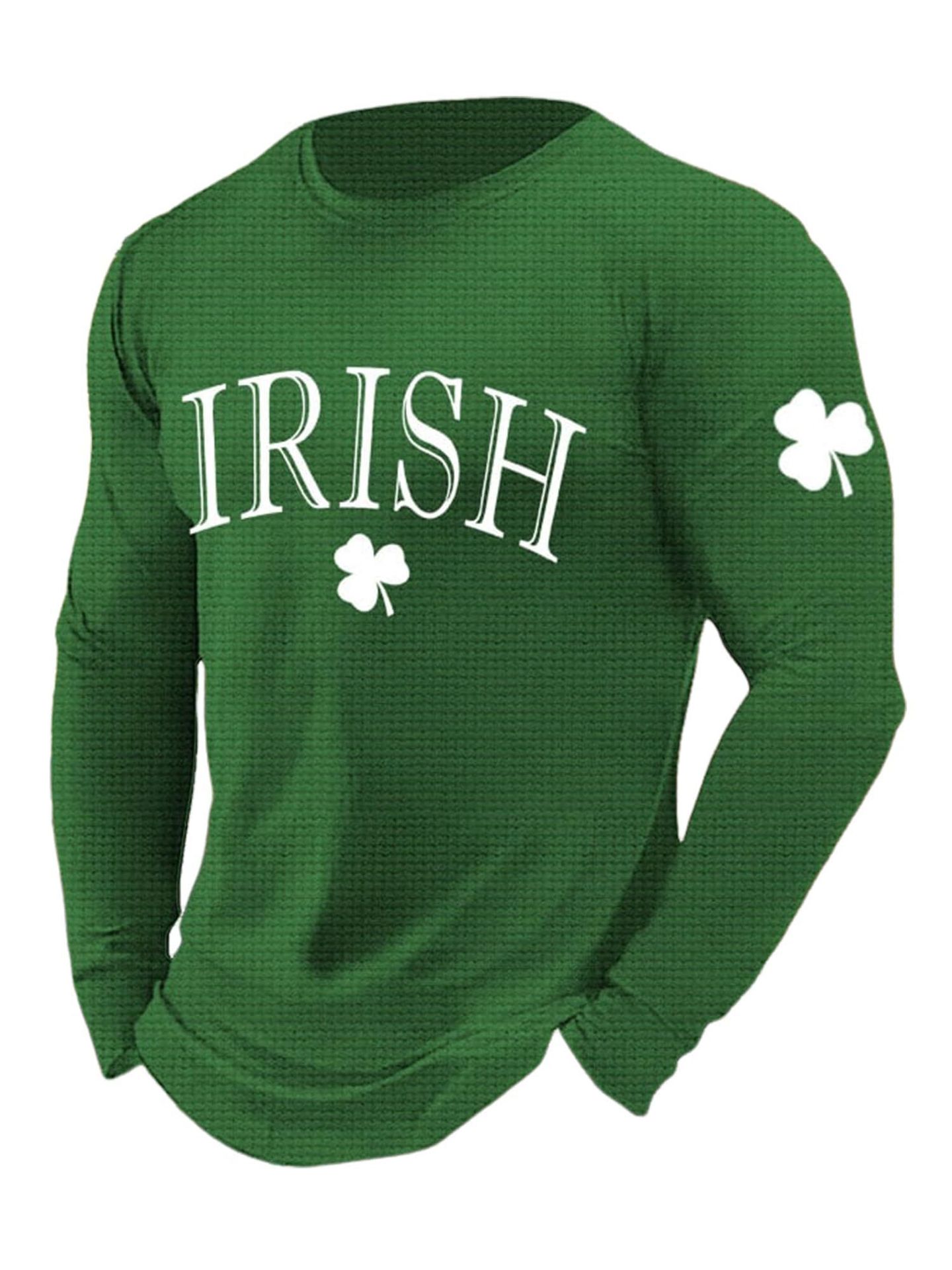 유럽과 미국의 국경 아마존 3D 디지털 인쇄 꽃 세인트 패트릭의 날 라운드 넥 남성 캐주얼 긴 소매 티셔츠 도매