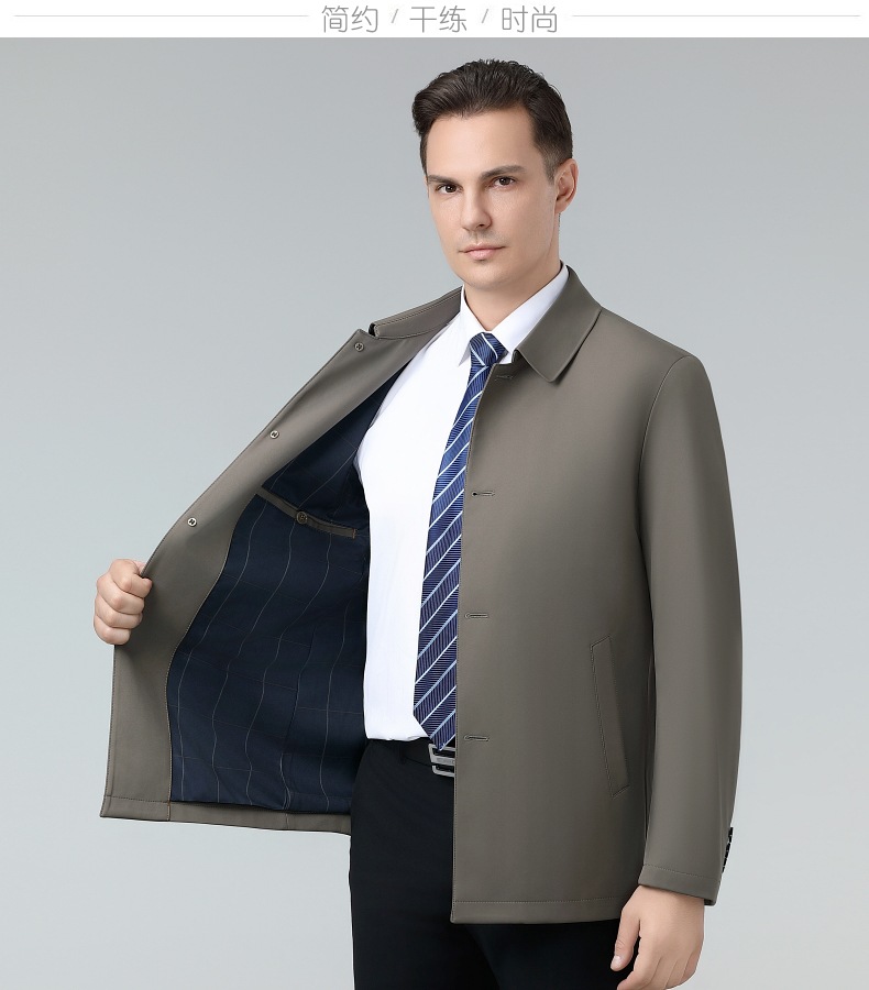 정품 하이 엔드 뽕나무 실크 오픈 버튼 재킷 남성 봄과 가을 얇은 비즈니스 재킷 중년 및 노인 임원 옷깃 코트