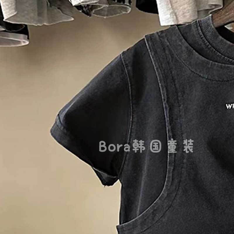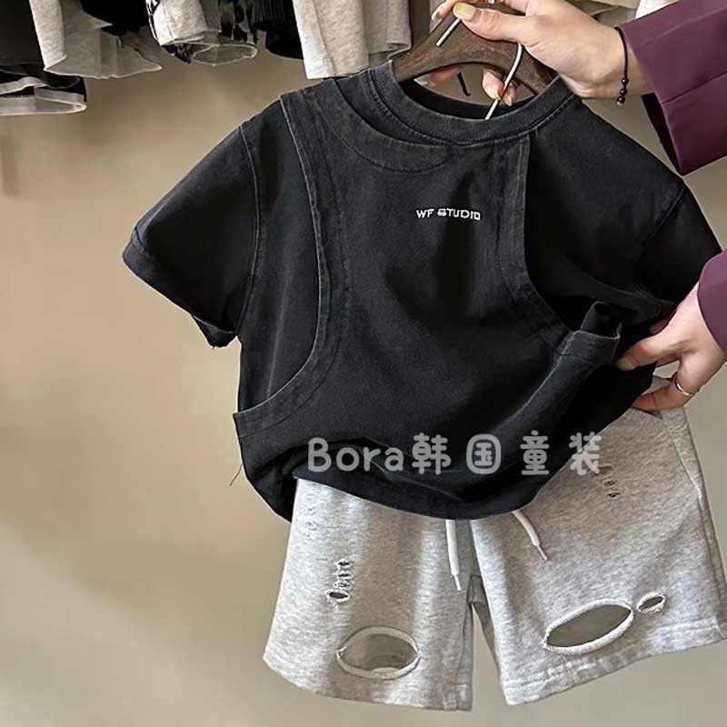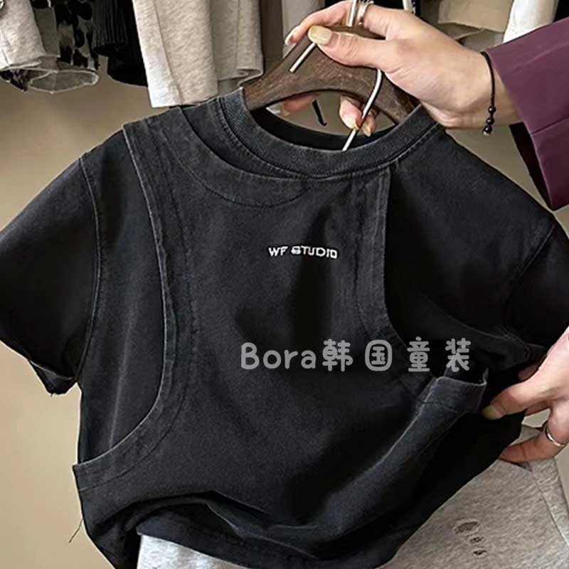 소년 반팔 티셔츠 어린이 여름 착용 2025 새로운 잘 생긴 거리 바닥 셔츠 아기 소녀 디자인 블랙 탑 3