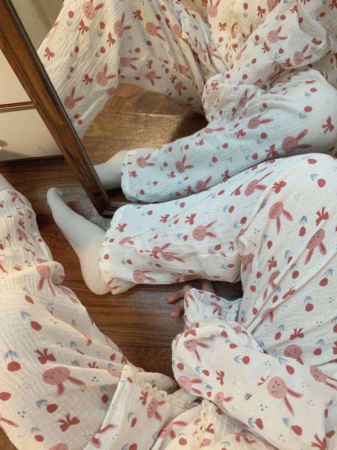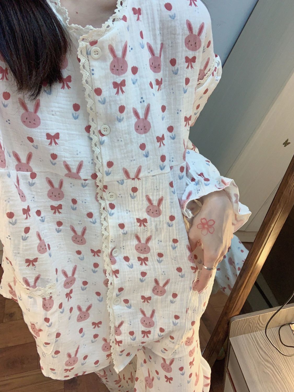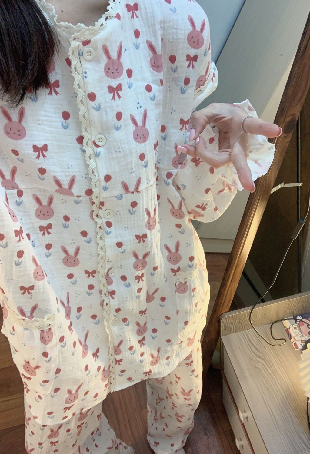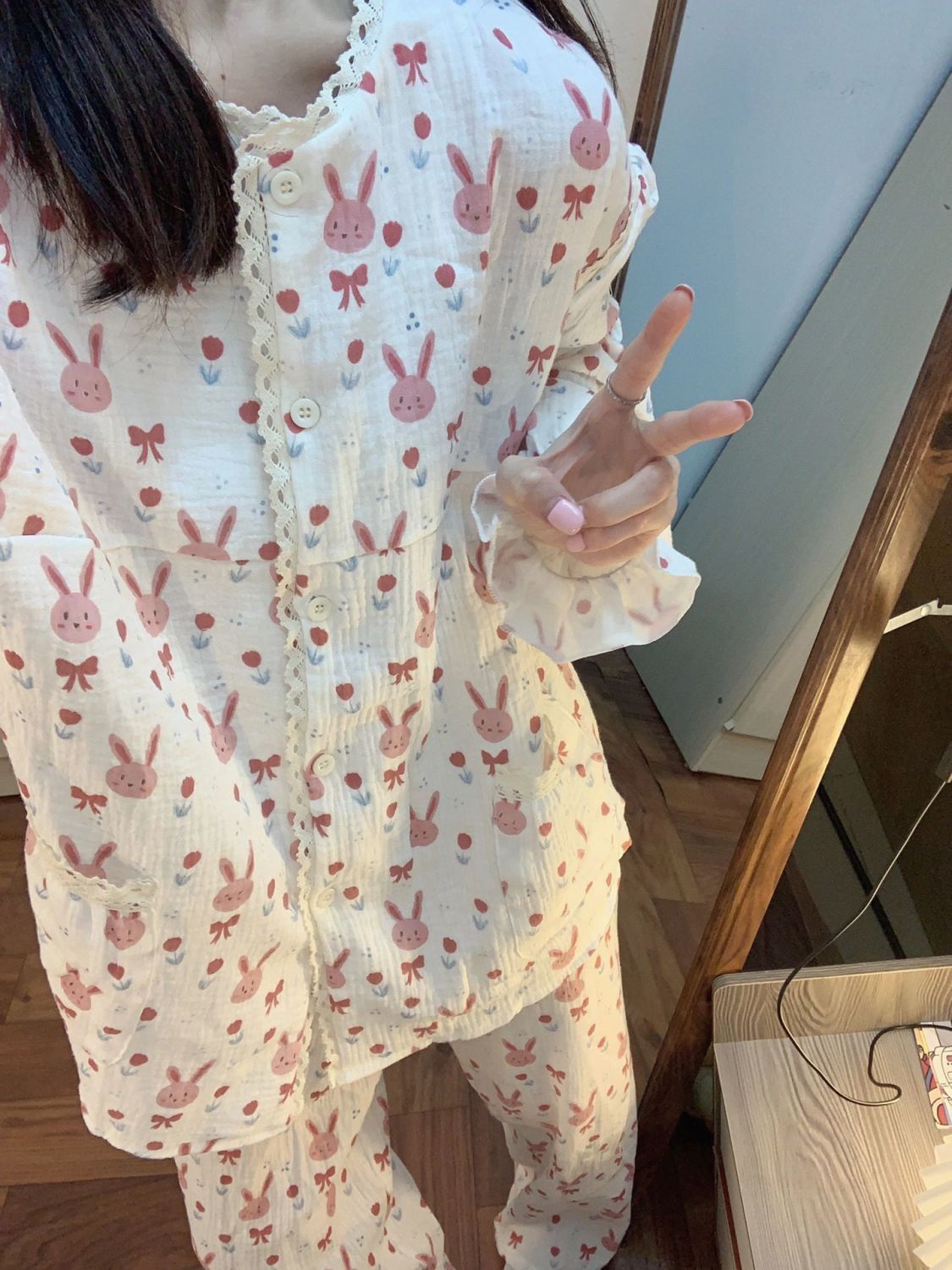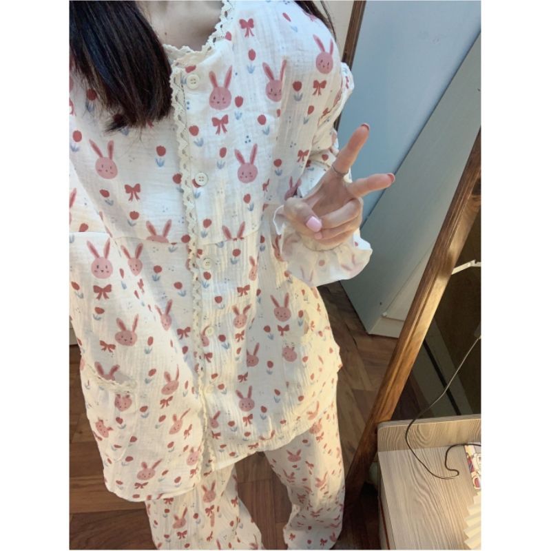 작은 토끼 잠옷 여성용 봄 가을 신상 긴팔 긴바지 레이스 장식 인스 스타일 일본 학생 부드러운 귀여운 스타일 통기성스토어 가기