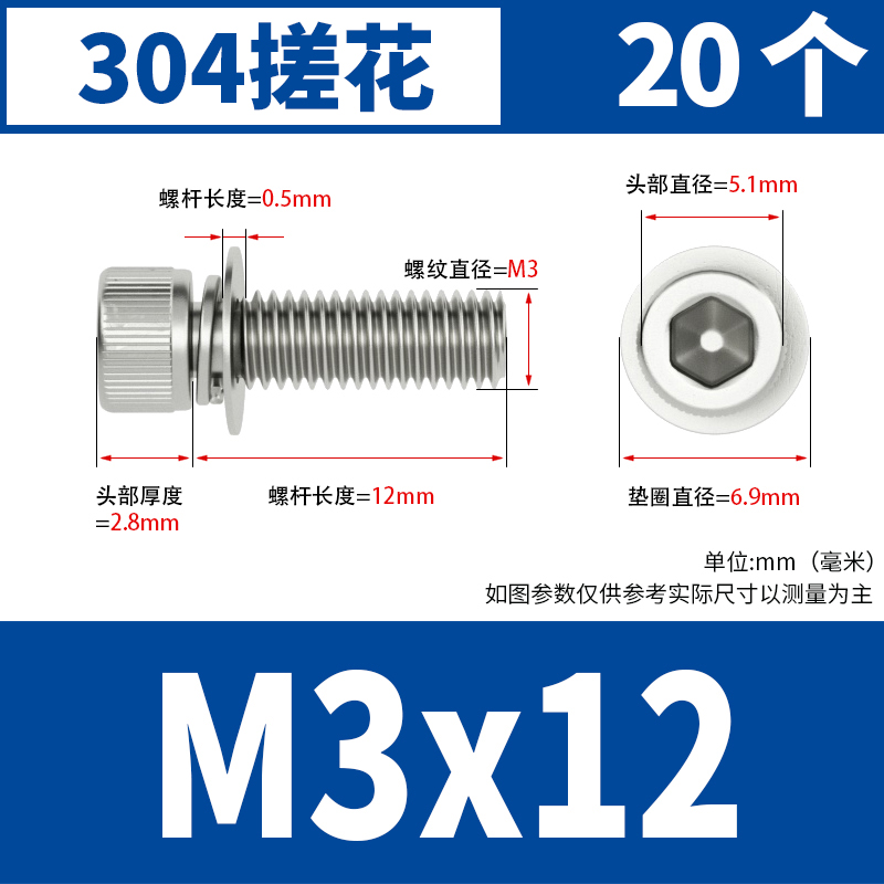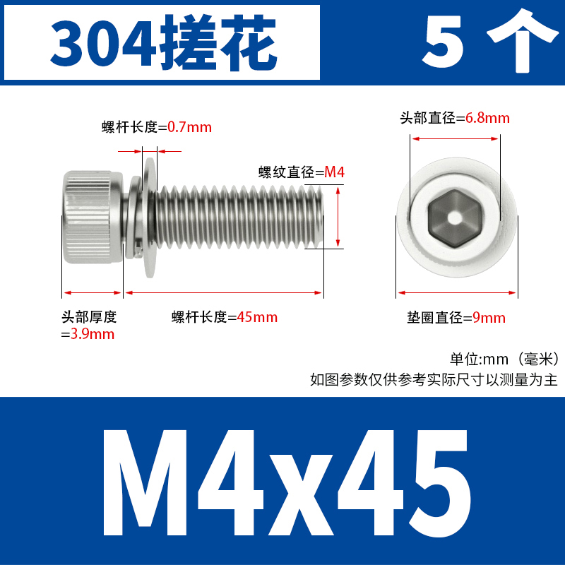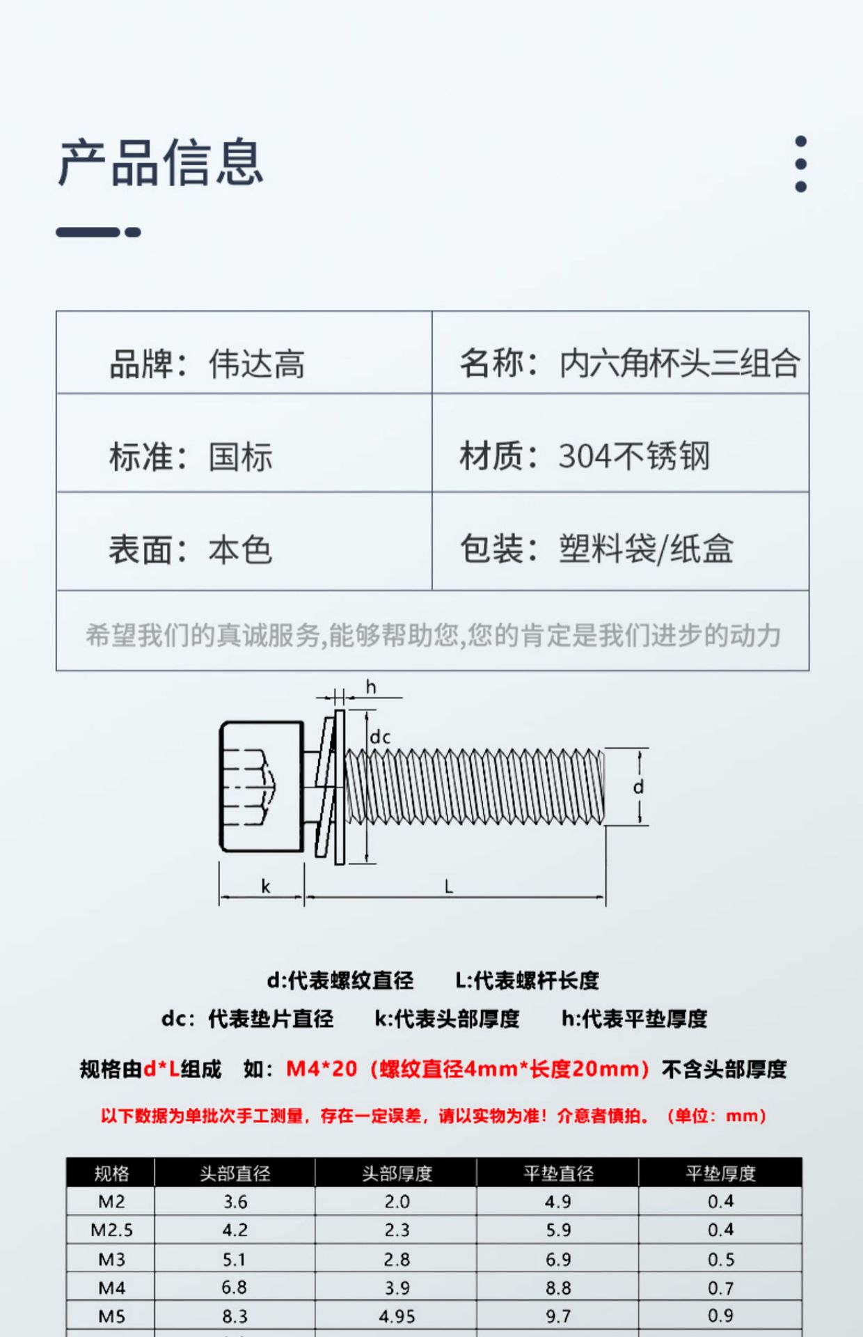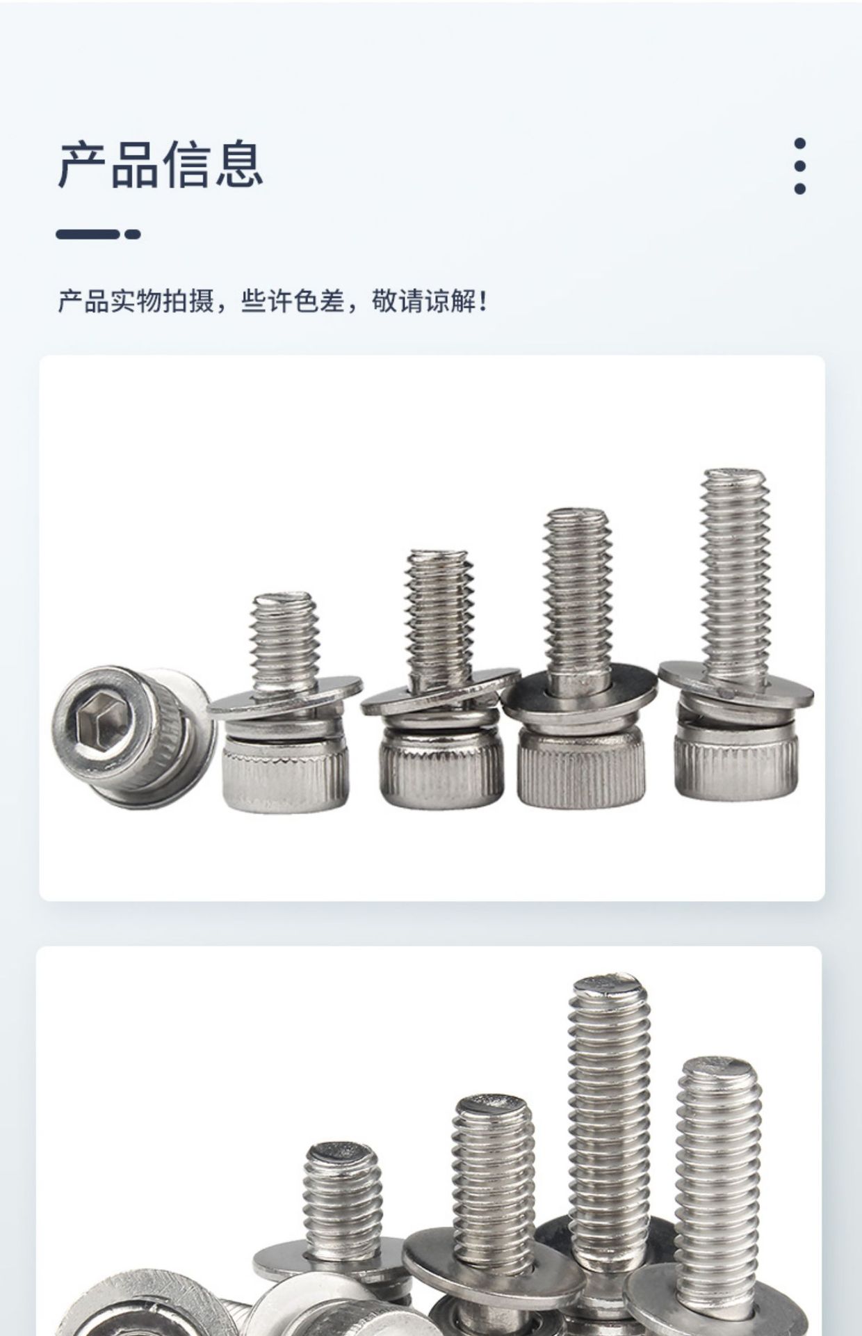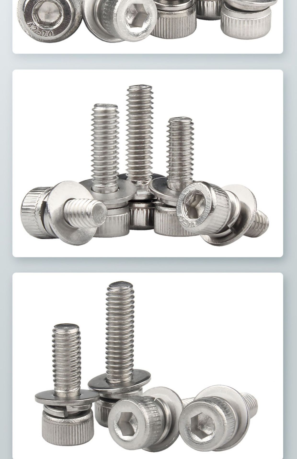 304 스테인레스 스틸 육각형 3 조합 나사 원통형 헤드 플랫 패드 볼트 세트 M2M3M4M5M6M12
