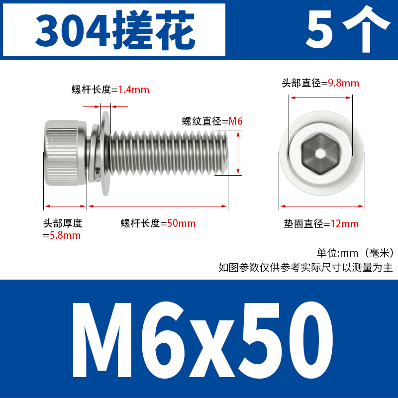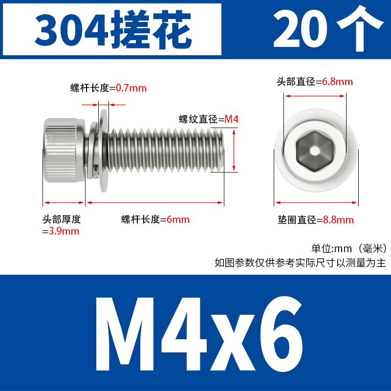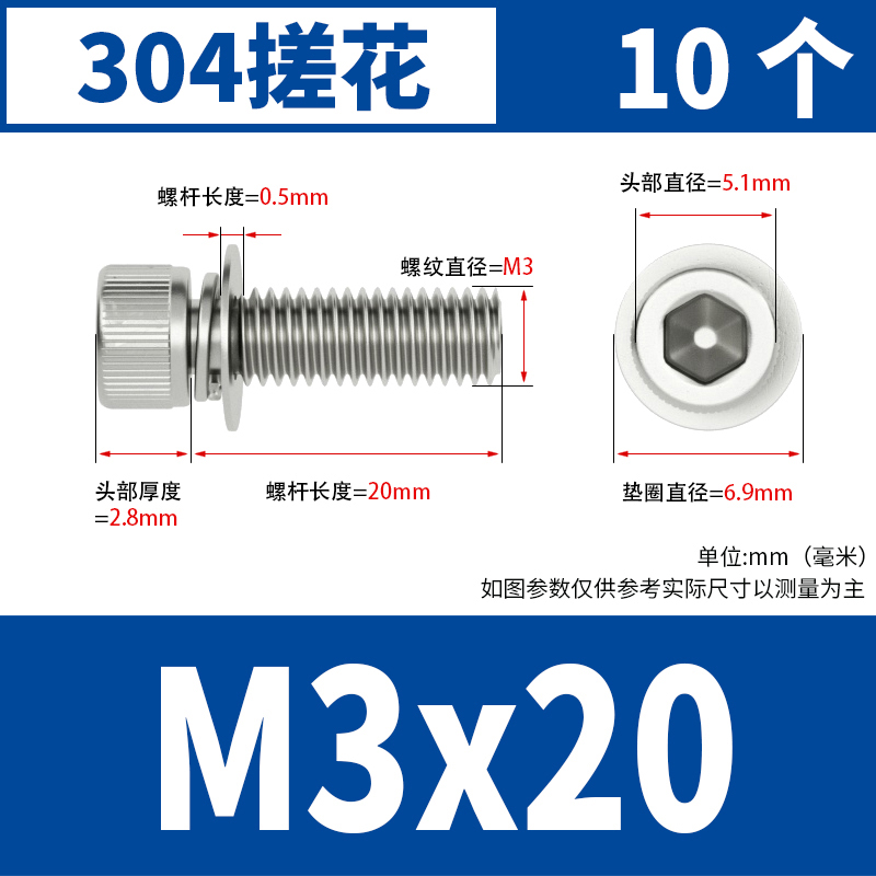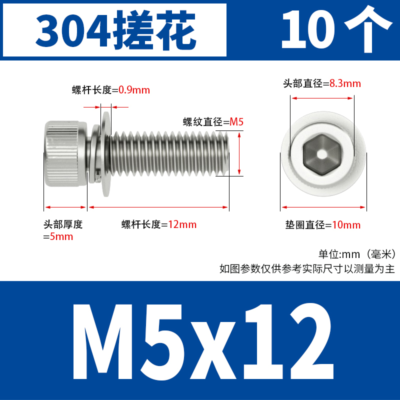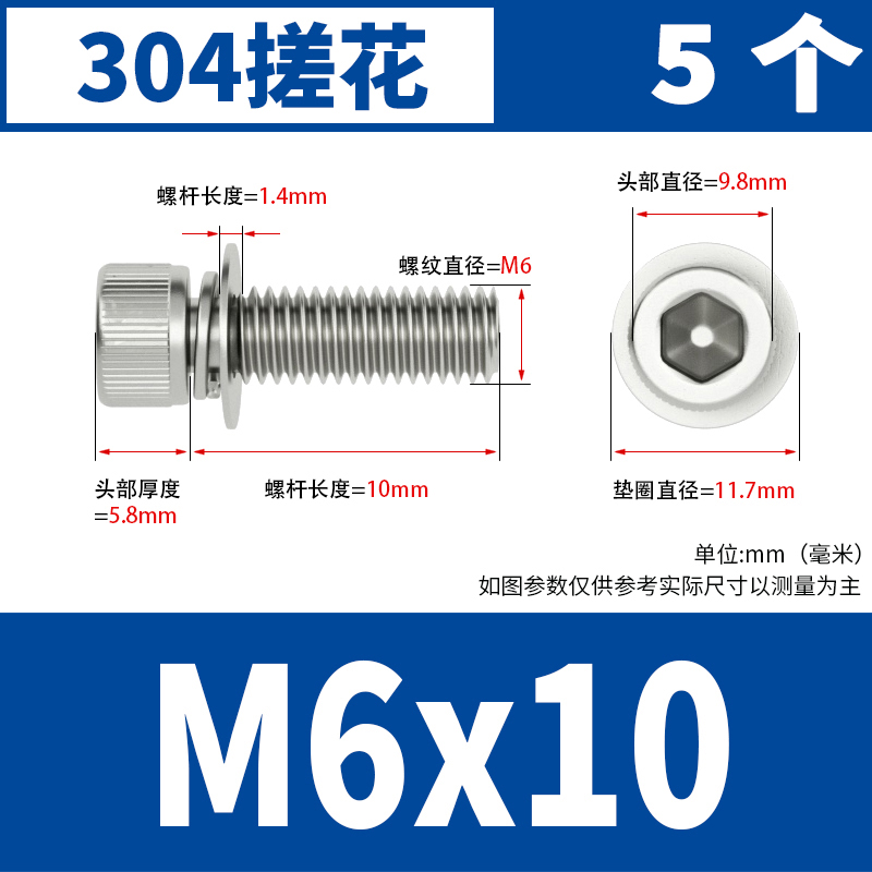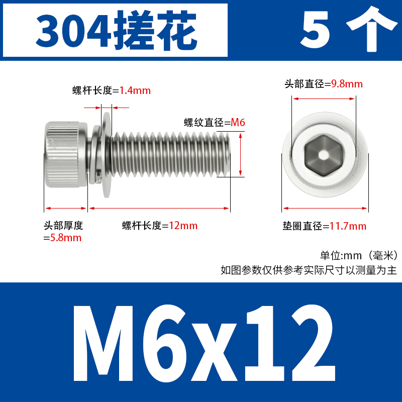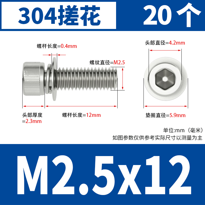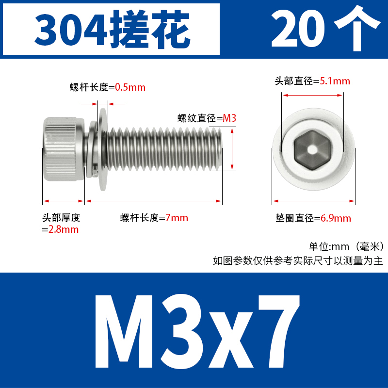 304 스테인레스 스틸 육각형 3 조합 나사 원통형 헤드 플랫 패드 볼트 세트 M2M3M4M5M6M12