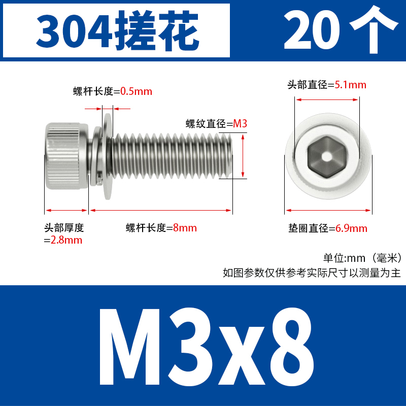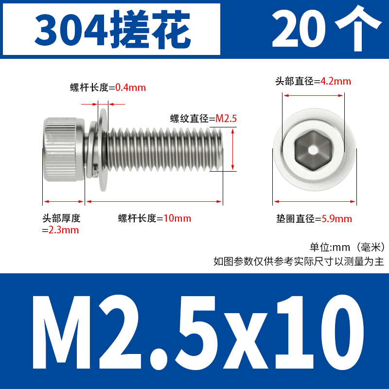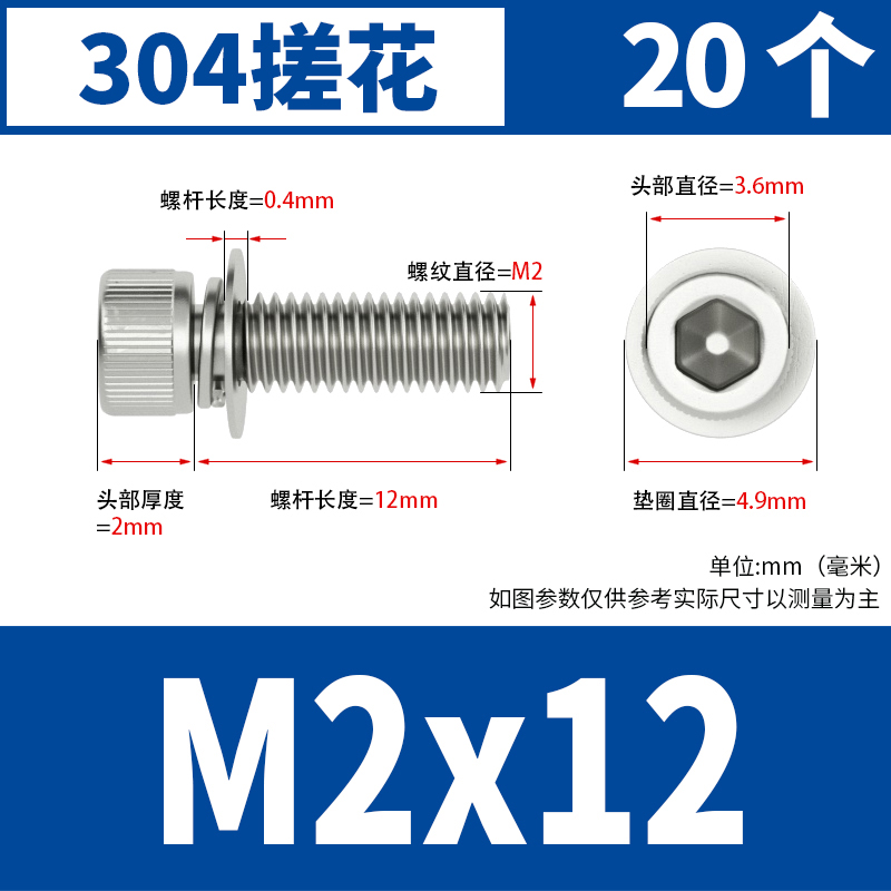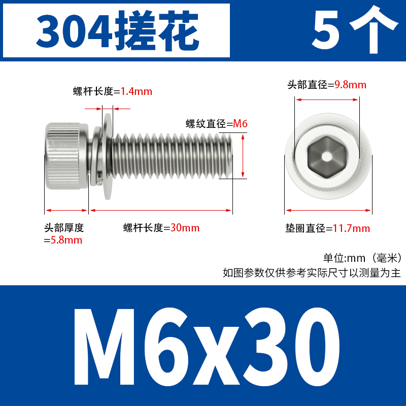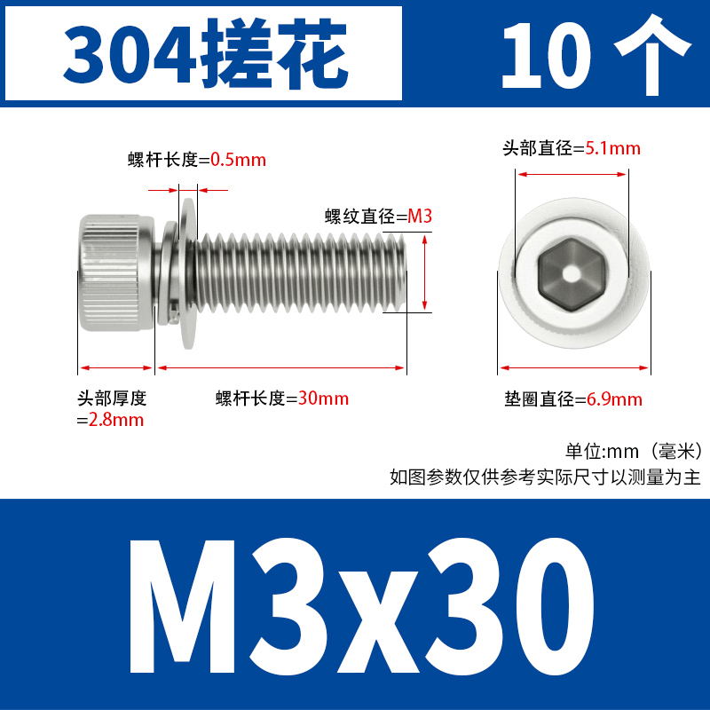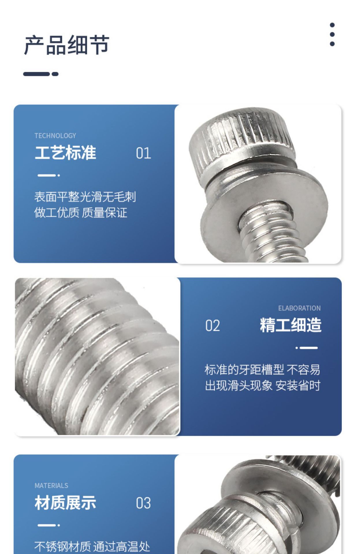 304 스테인레스 스틸 육각형 3 조합 나사 원통형 헤드 플랫 패드 볼트 세트 M2M3M4M5M6M12