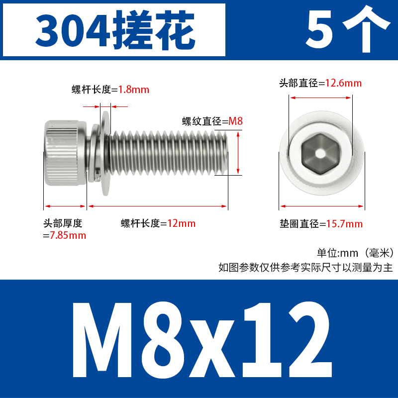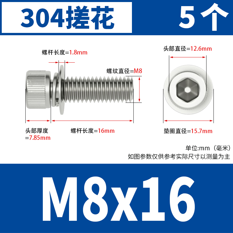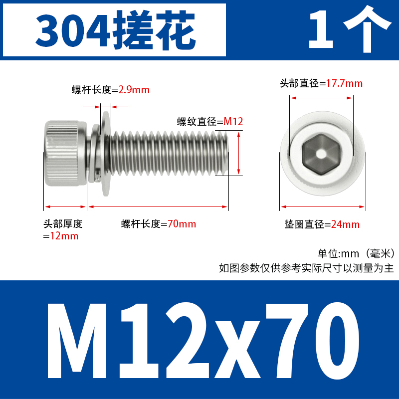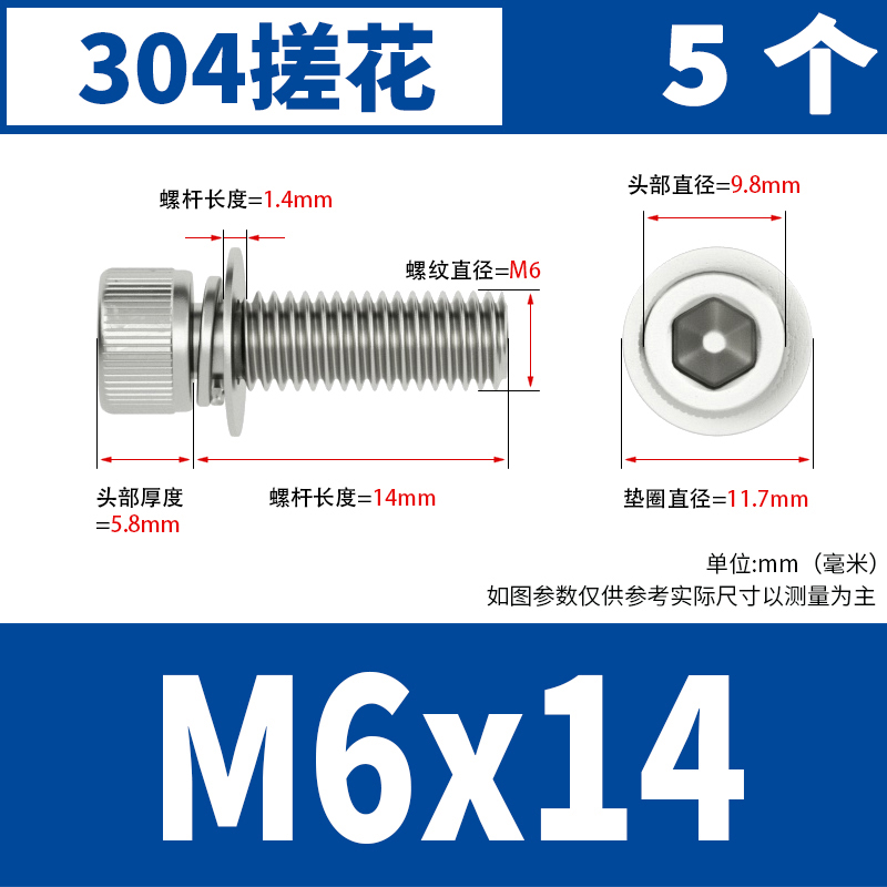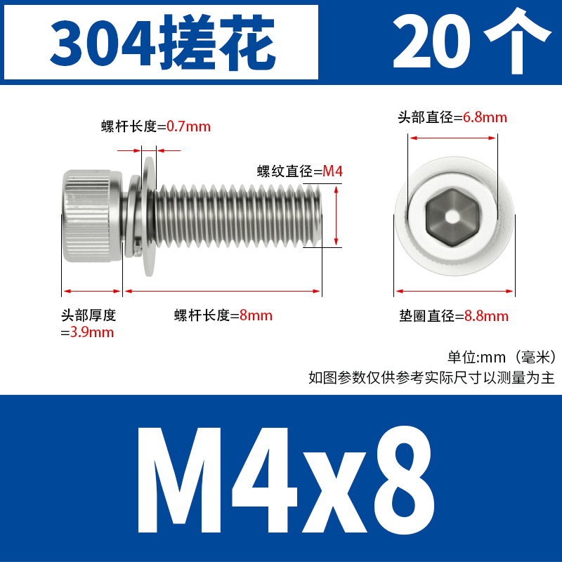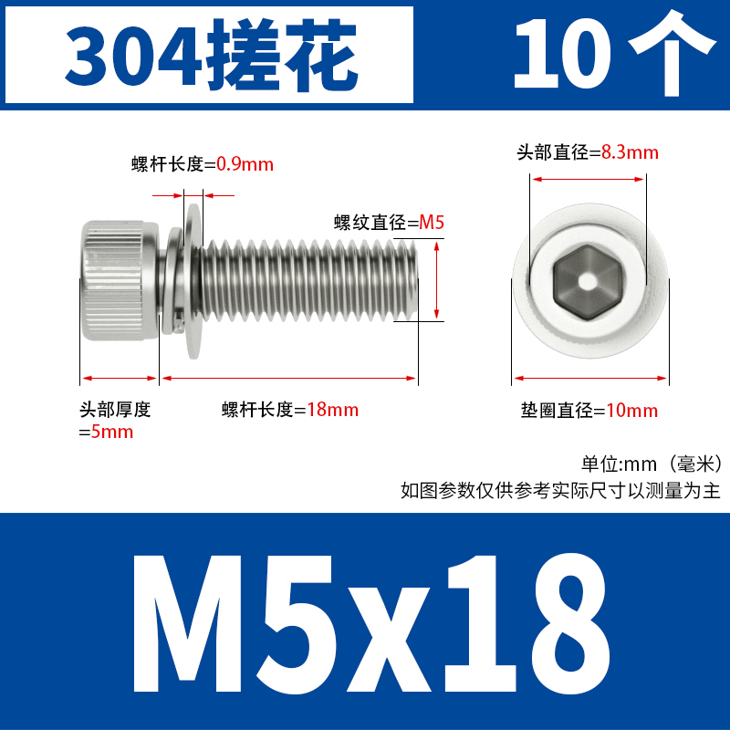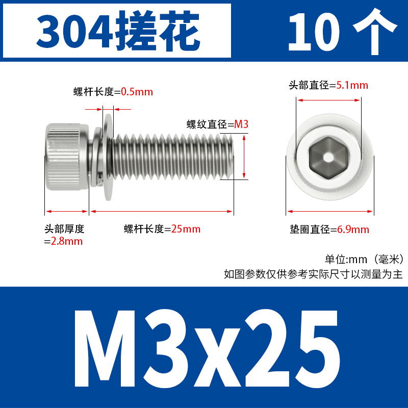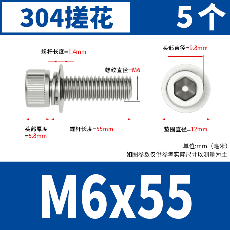 304 스테인레스 스틸 육각형 3 조합 나사 원통형 헤드 플랫 패드 볼트 세트 M2M3M4M5M6M12