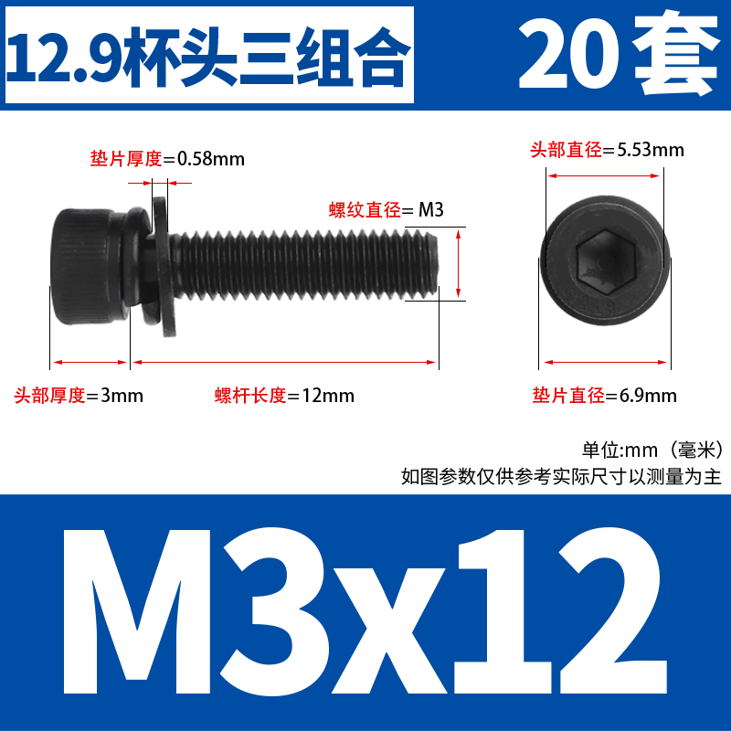 • M3x12[20개입] 12.9레벨 아이언 블랙