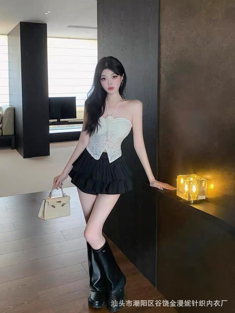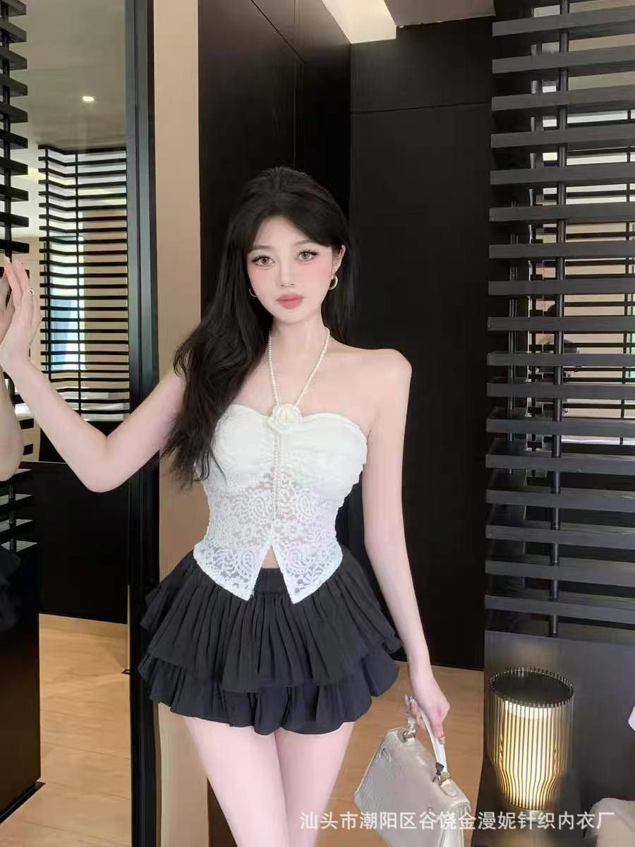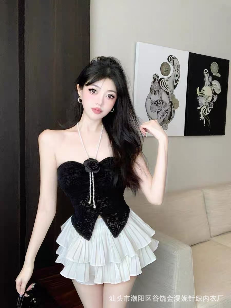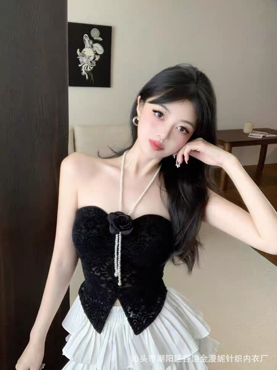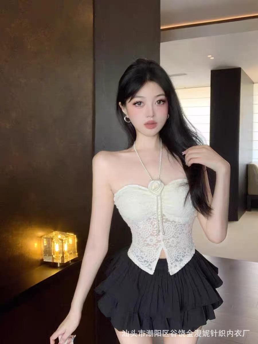 Hot Girl Pure Desire 홀터넥 레이스 꽃 캐미솔 여성 봄, 여름 양복 탑 튜브 탑 뷰티 서스펜더 가슴 패드 탑스토어 가기