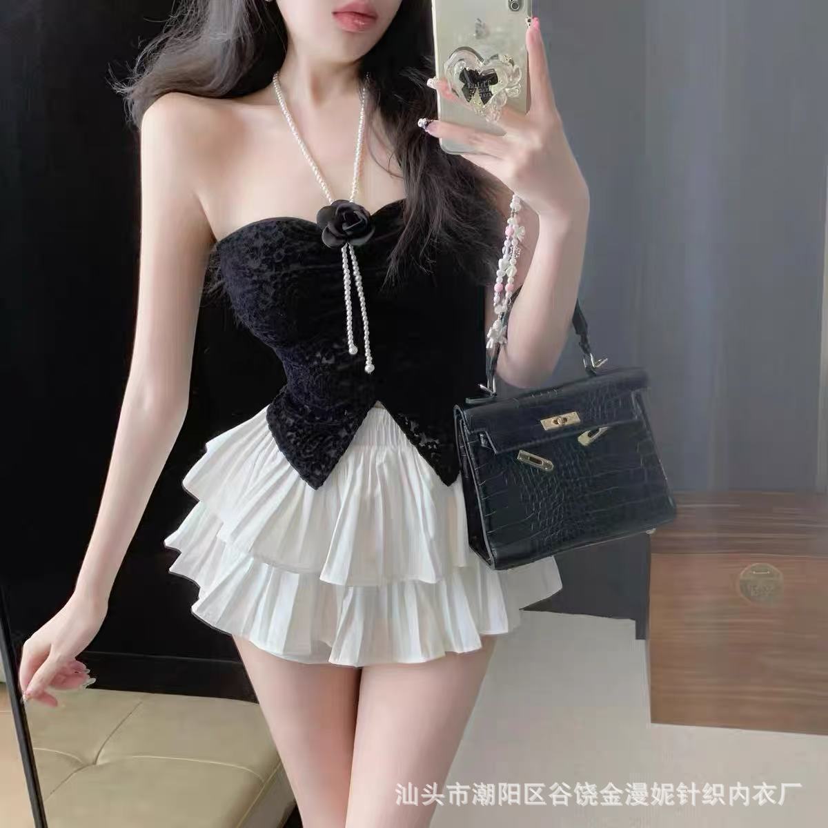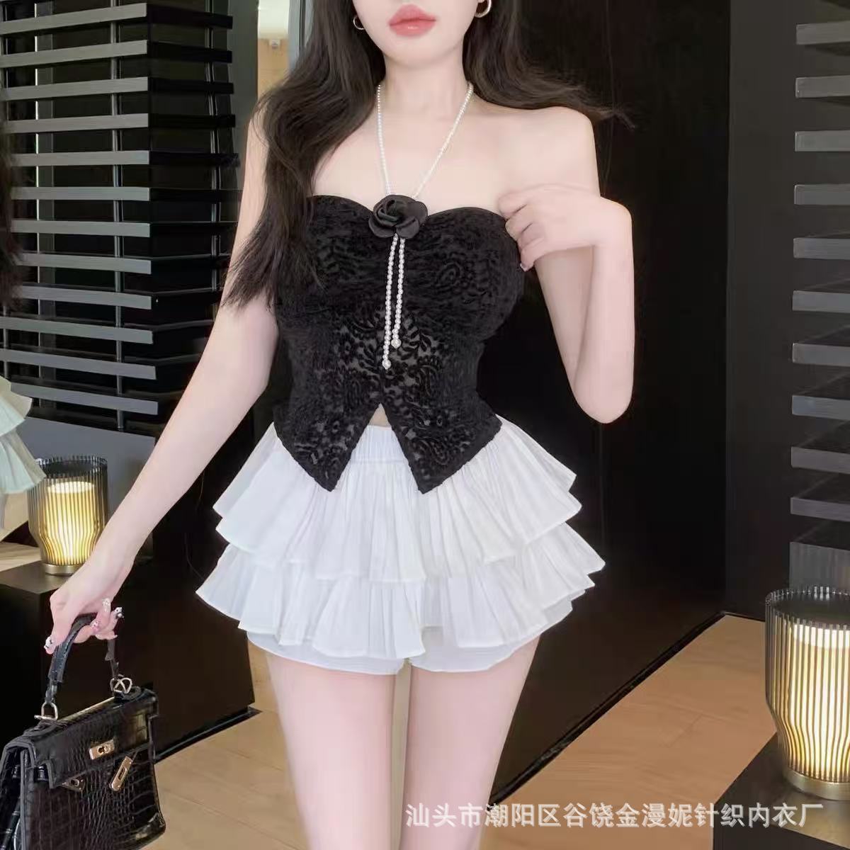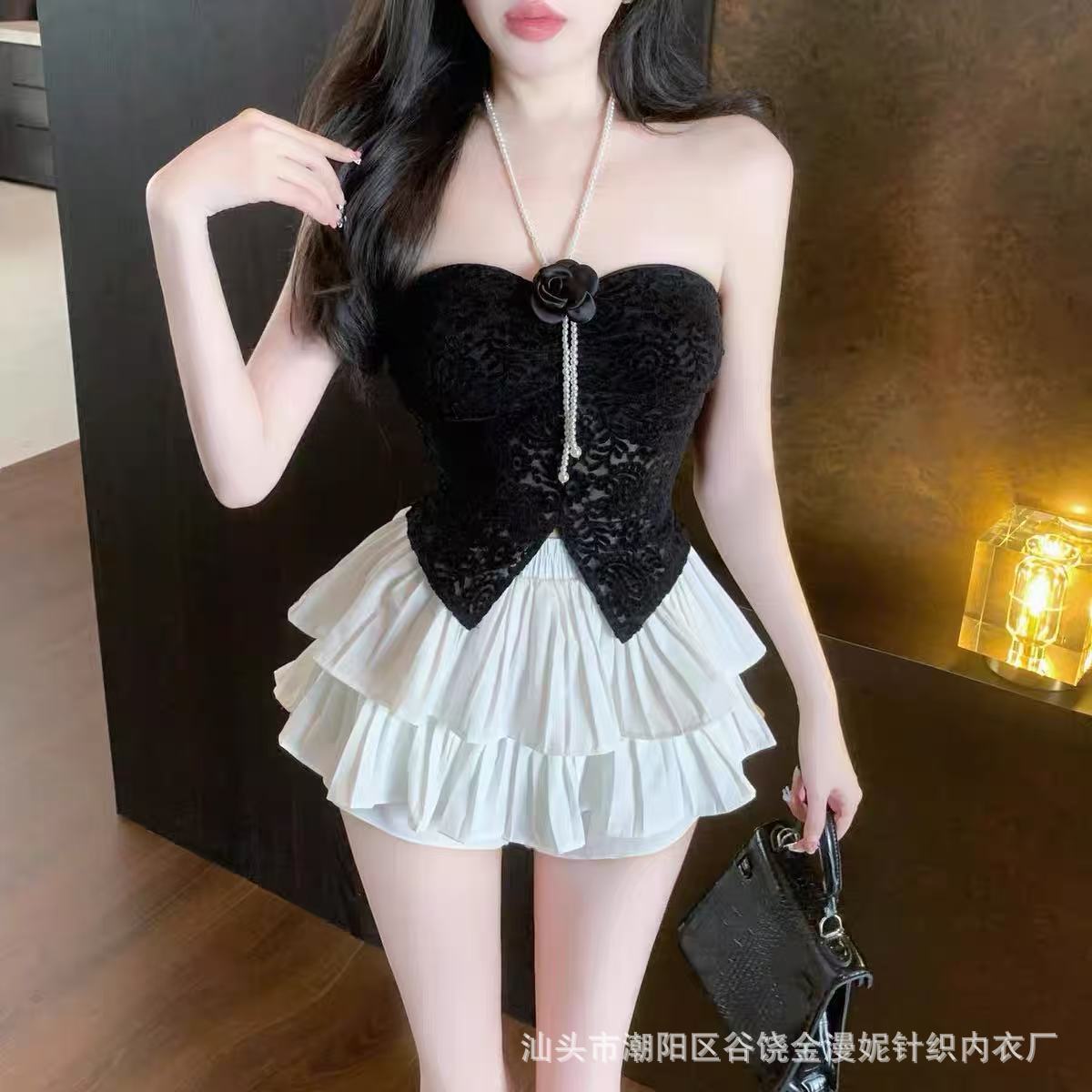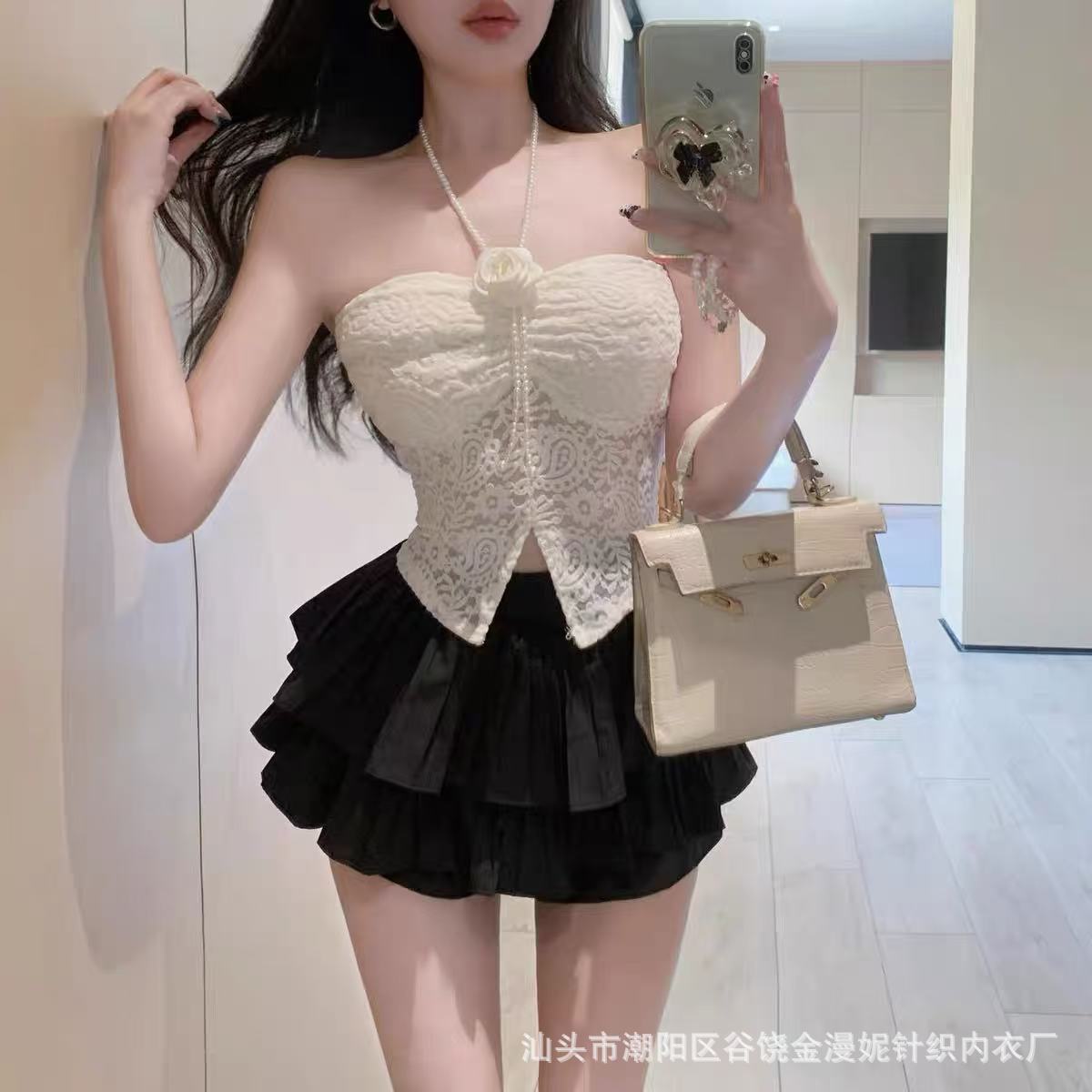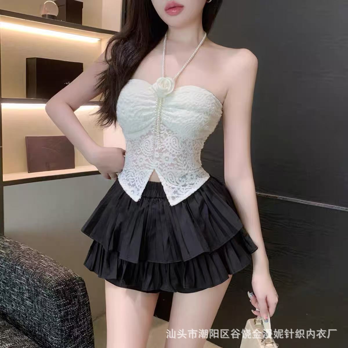 Hot Girl Pure Desire 홀터넥 레이스 꽃 캐미솔 여성 봄, 여름 양복 탑 튜브 탑 뷰티 서스펜더 가슴 패드 탑스토어 가기