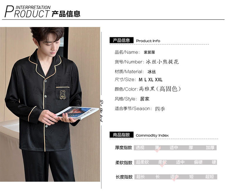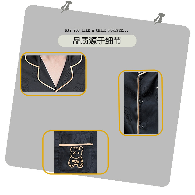 곰 만화 자카드 검은 얼음 실크 잠옷 남자의 봄과 가을 긴 소매 얇은 여름 잠옷 세트 퇴색하지 않습니다스토어 가기
