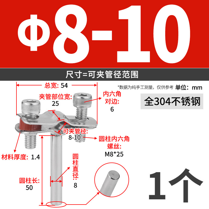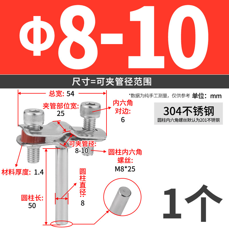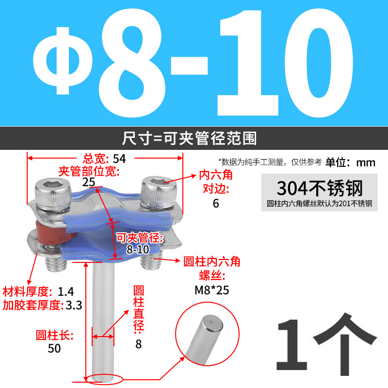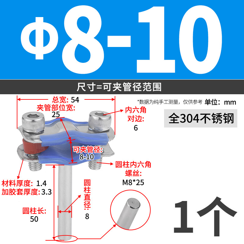 • 고무 패드 8-10mm가 포함된 전체 304(튜브 길이 50mm)