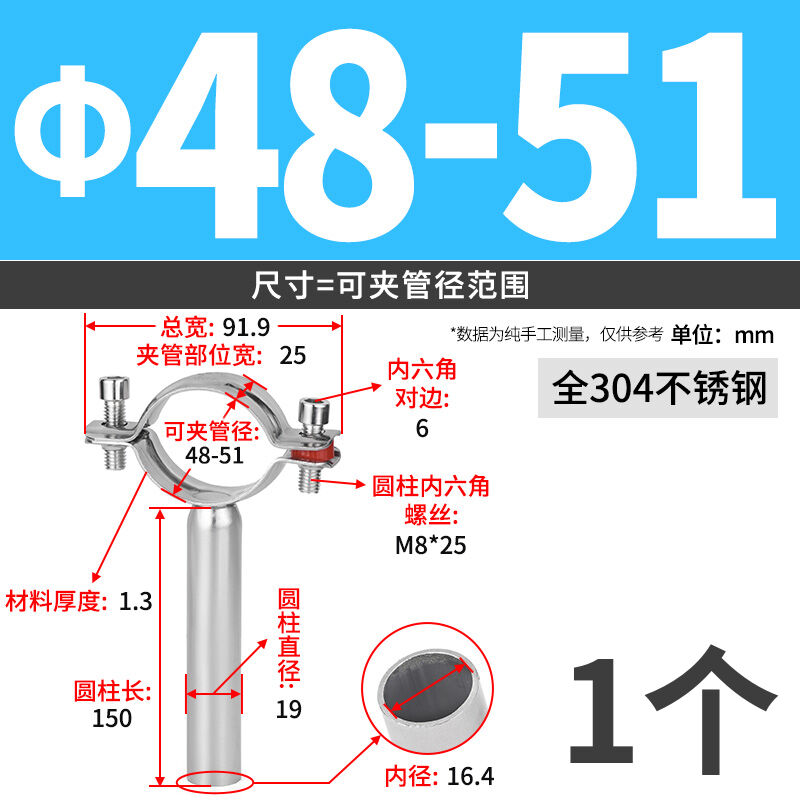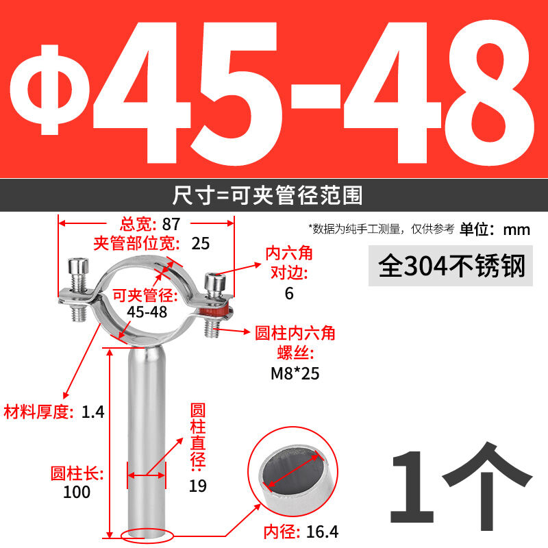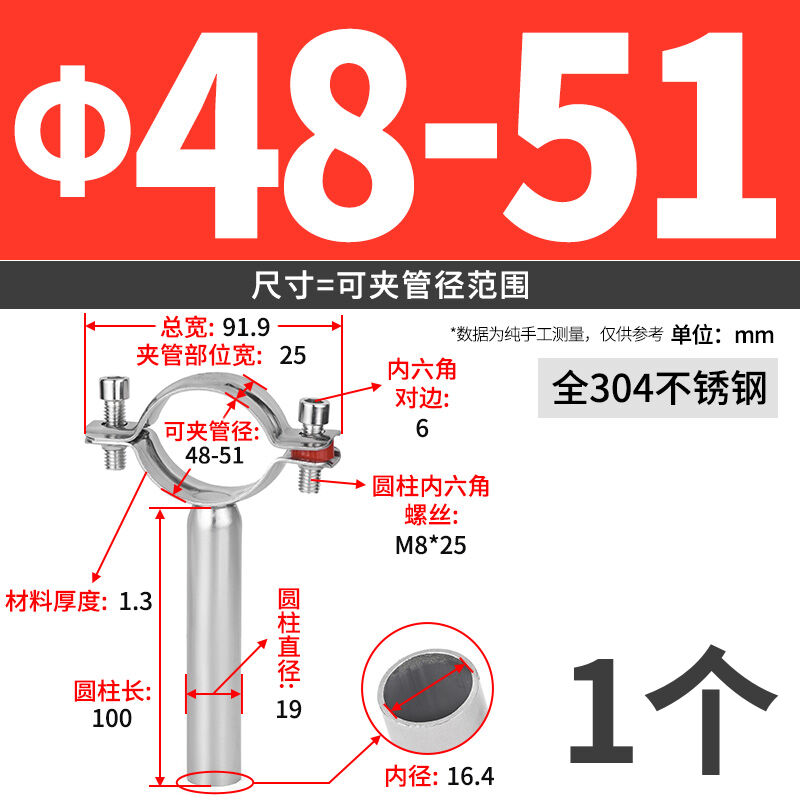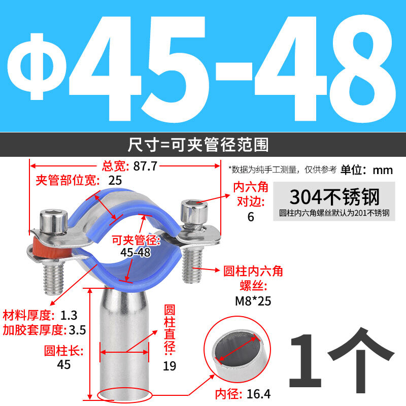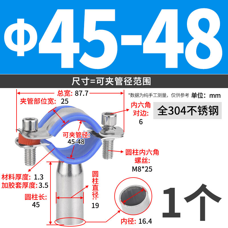 • 고무 패드가 있는 전체 304 45-48mm(튜브 길이 45mm)