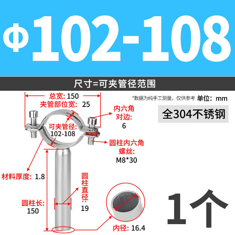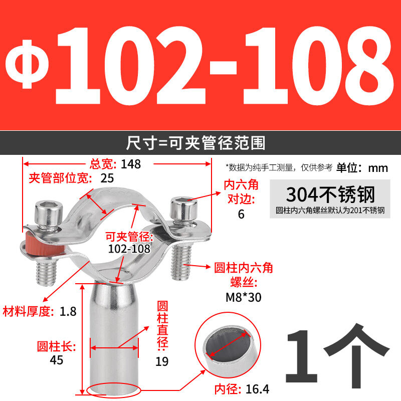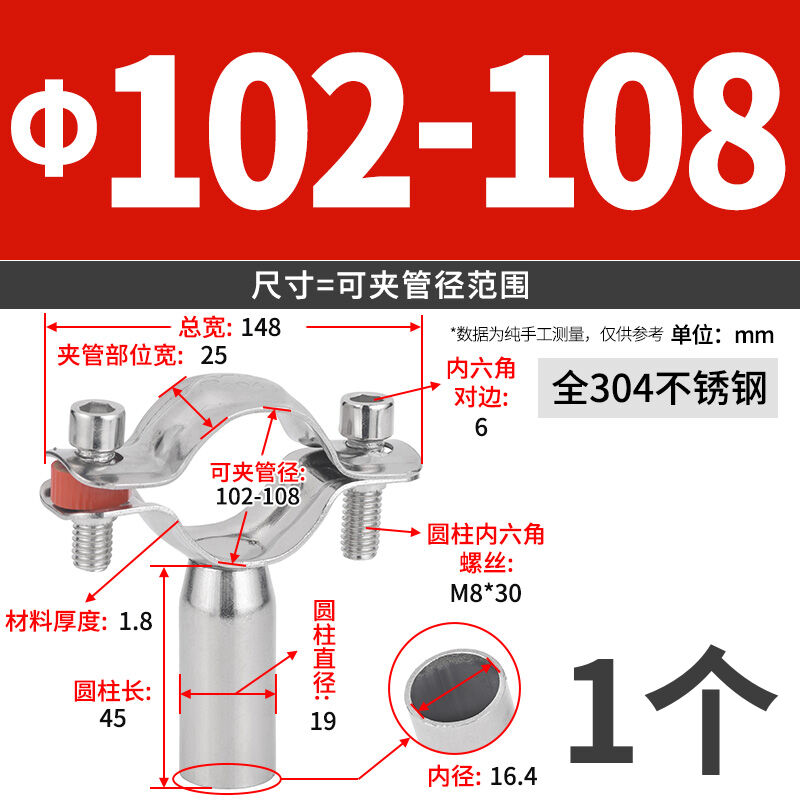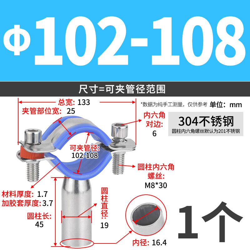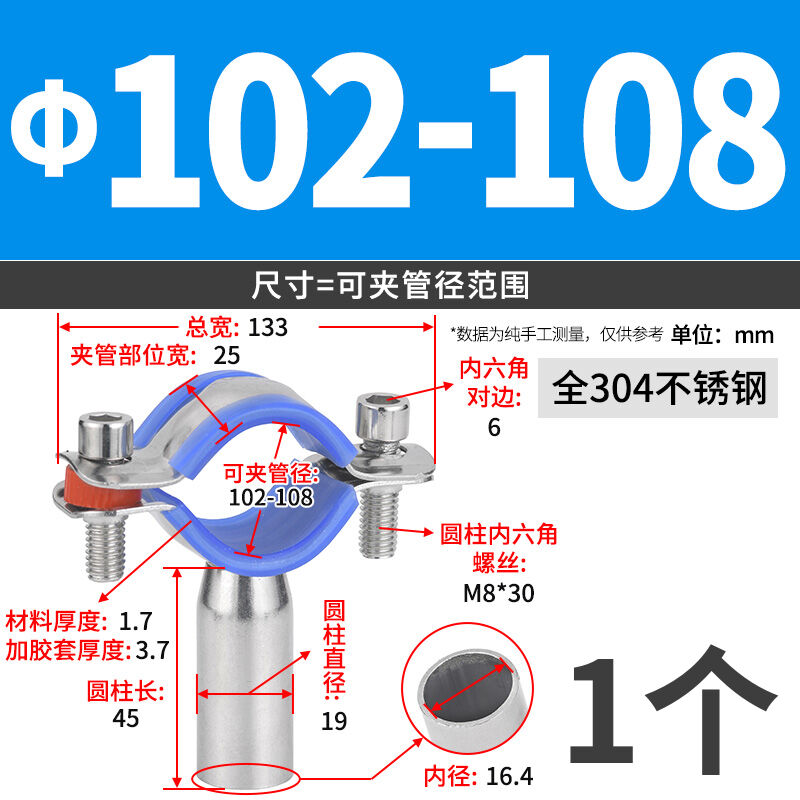 • 고무 패드 102-108mm 포함 전체 304(튜브 길이 45mm)