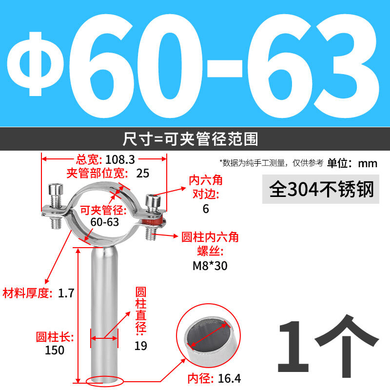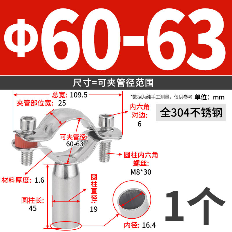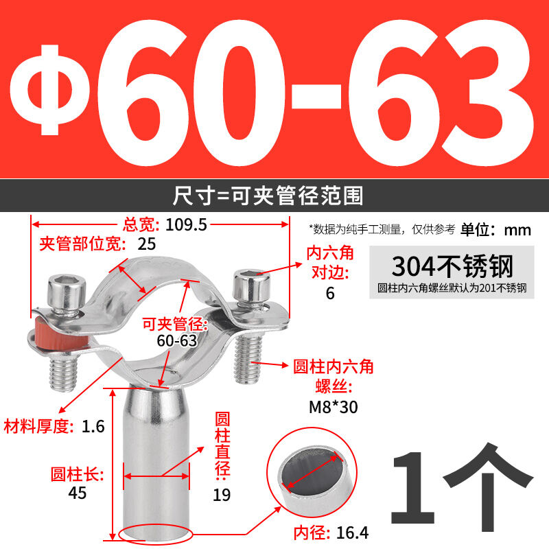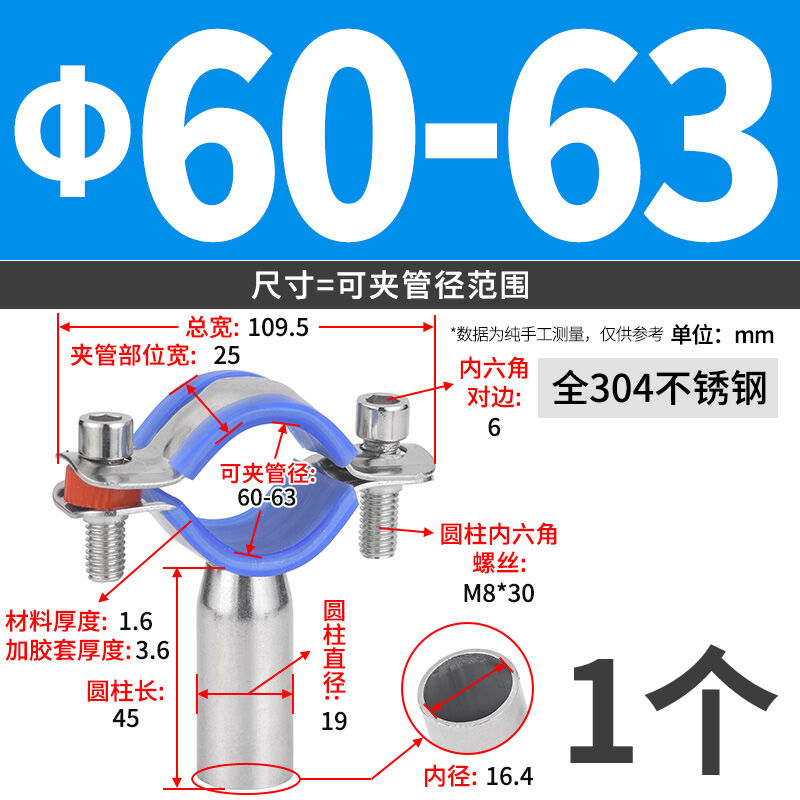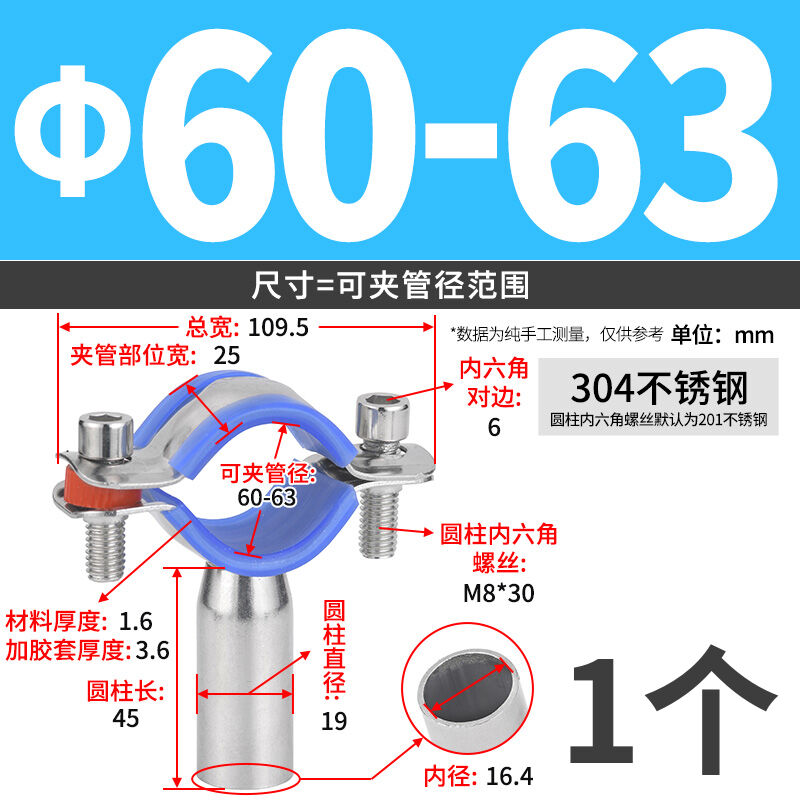 • 고무 패드가 있는 전체 304 60-63mm(튜브 길이 45mm)