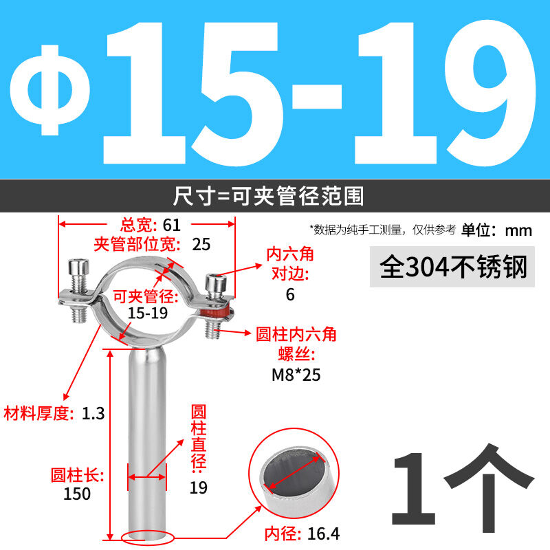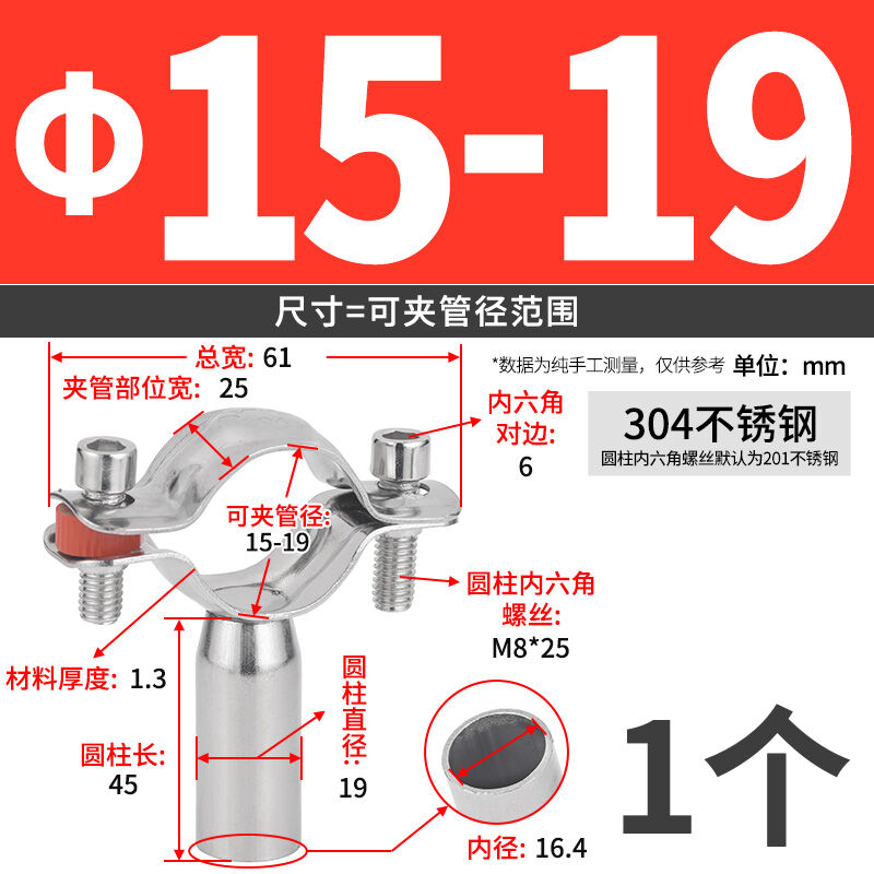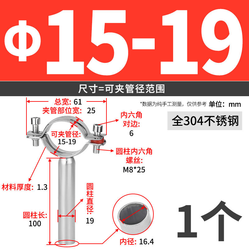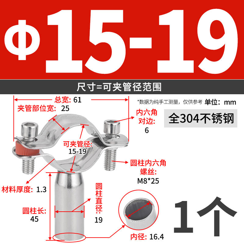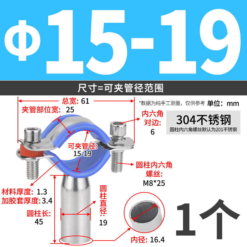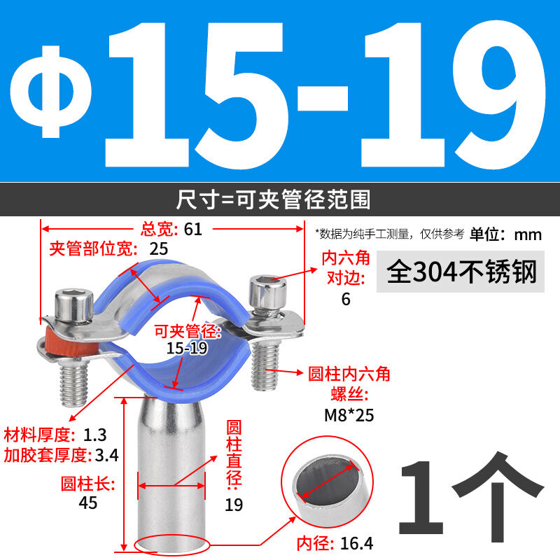 • 고무 패드가 있는 전체 304 15-19mm(튜브 길이 45mm)