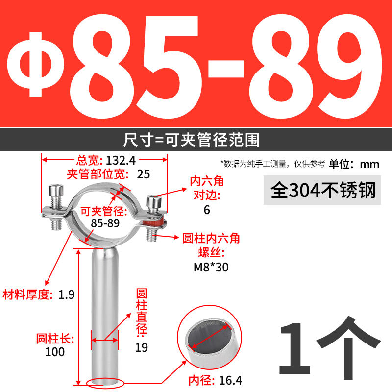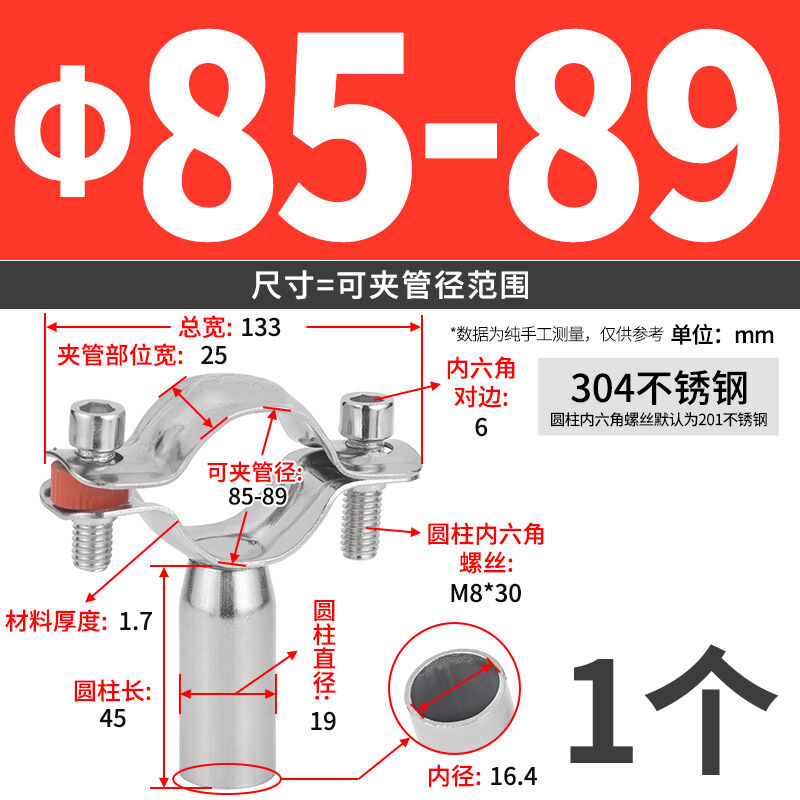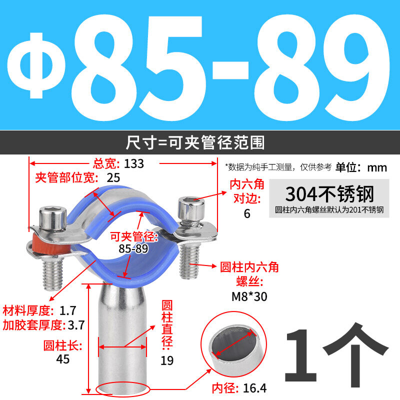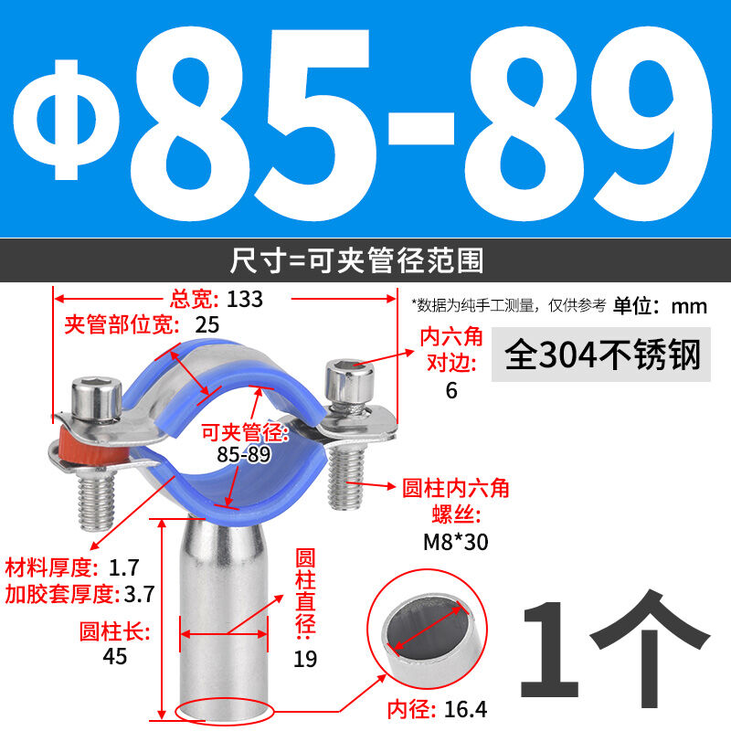 • 고무 패드가 있는 전체 304 85-89mm(튜브 길이 45mm)