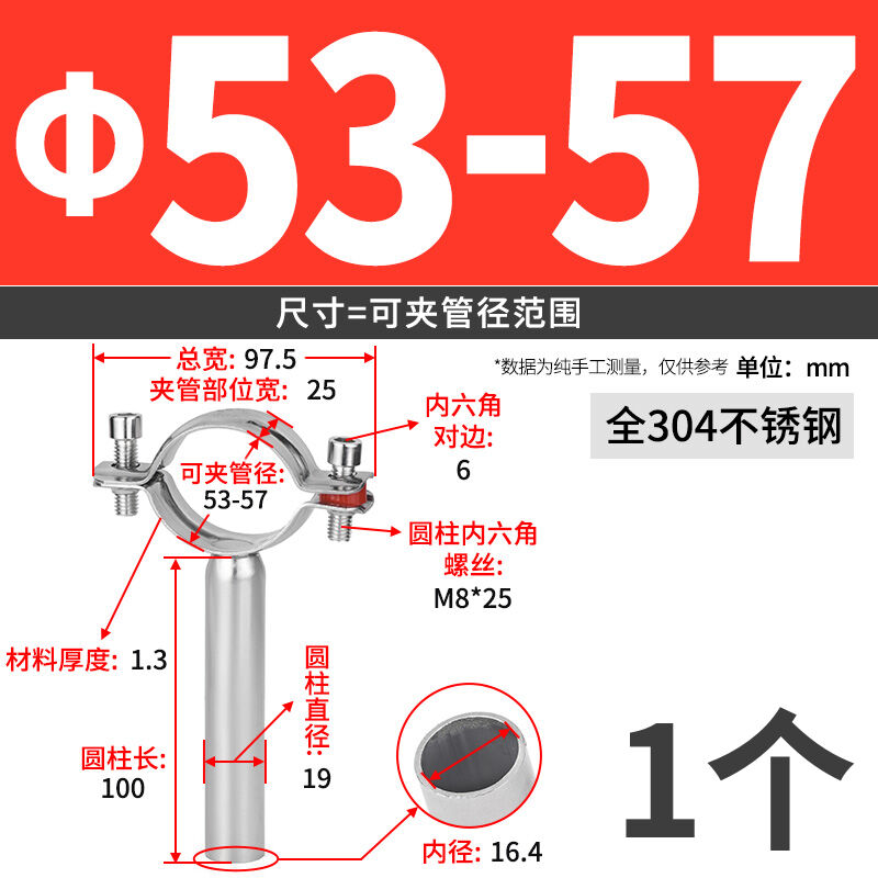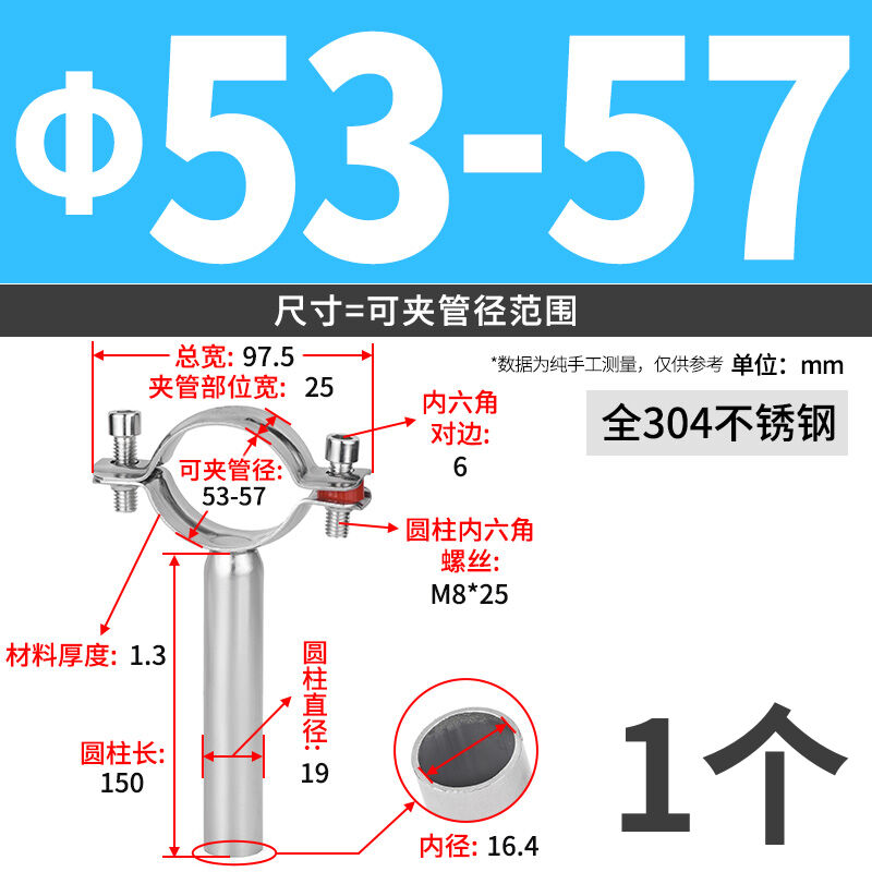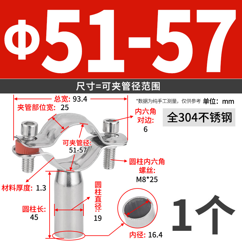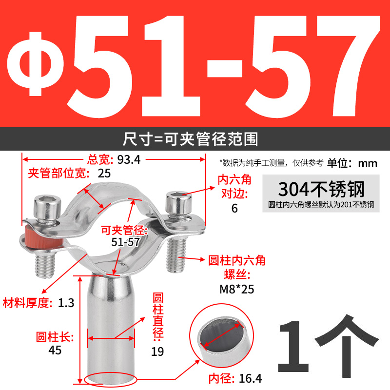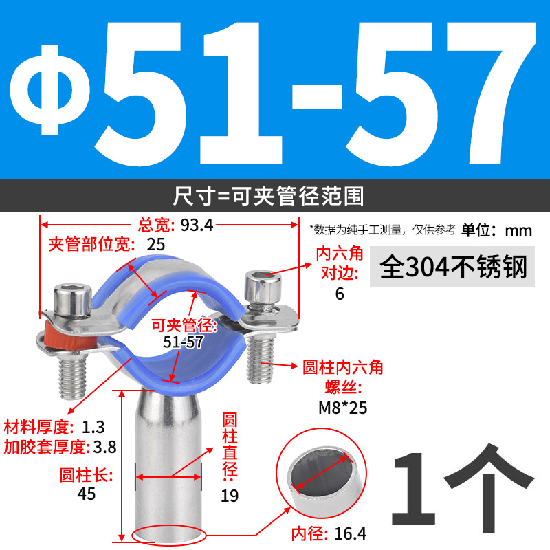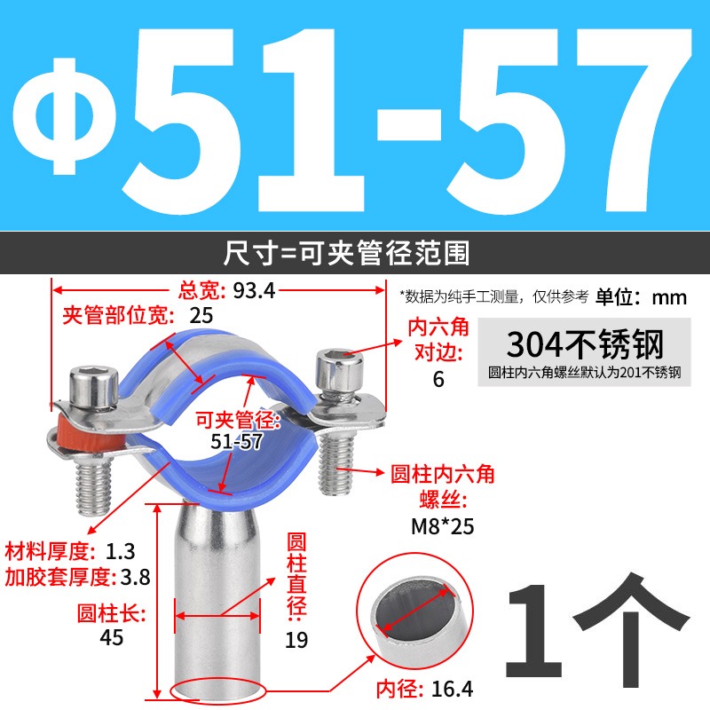 • 고무 패드가 있는 전체 304 51-57mm(튜브 길이 45mm)