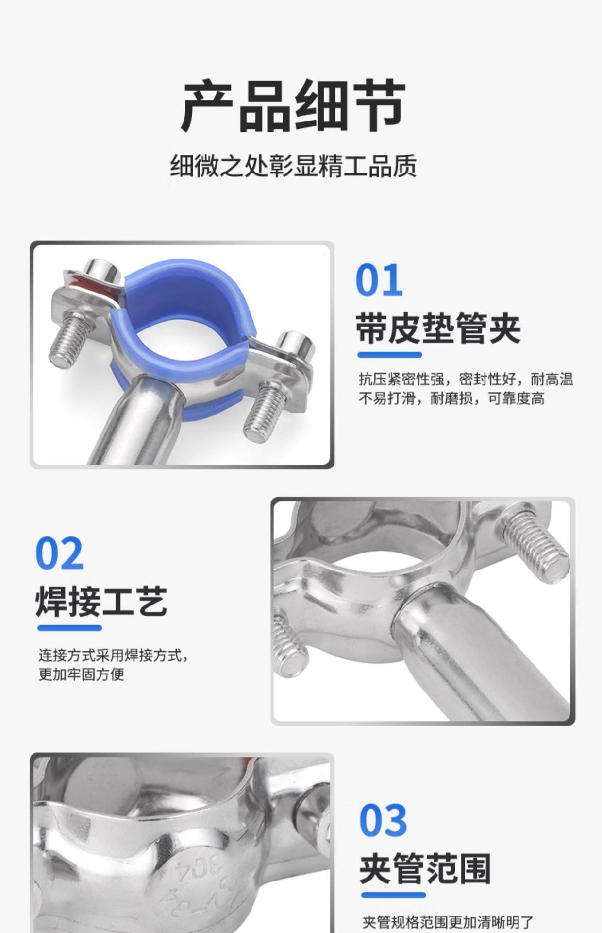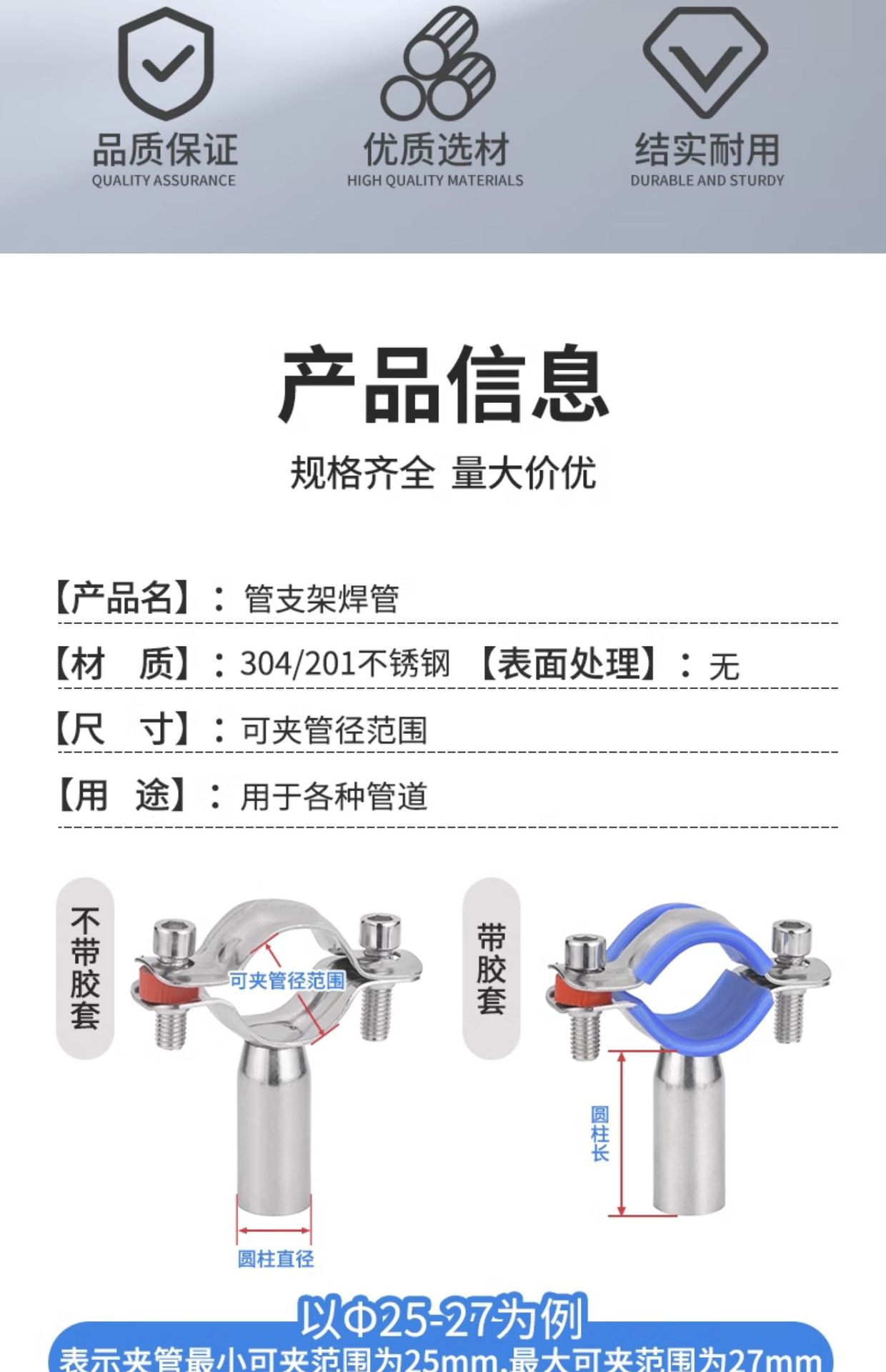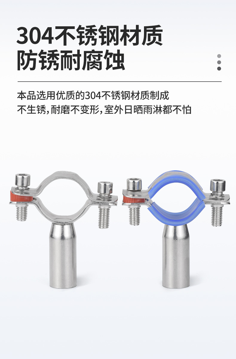 304 스테인레스 스틸 파이프 클램프 워터 파이프 고정 연장 파이프 브래킷 라운드 파이프 용접 후프 버클 PVC 잠금 후프