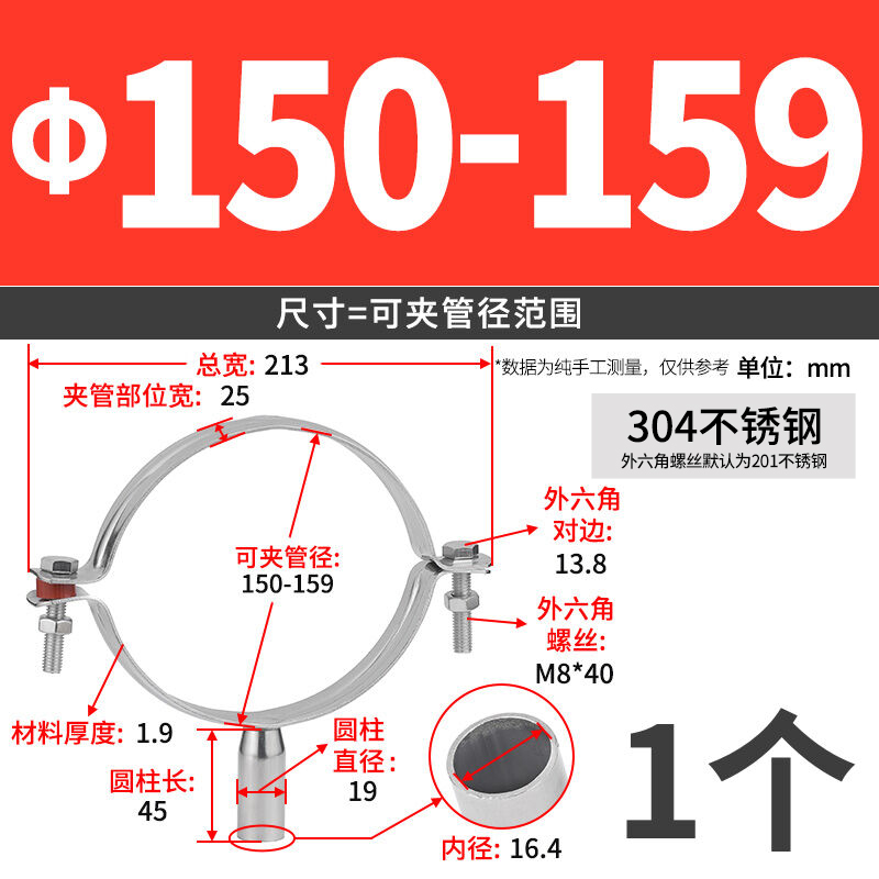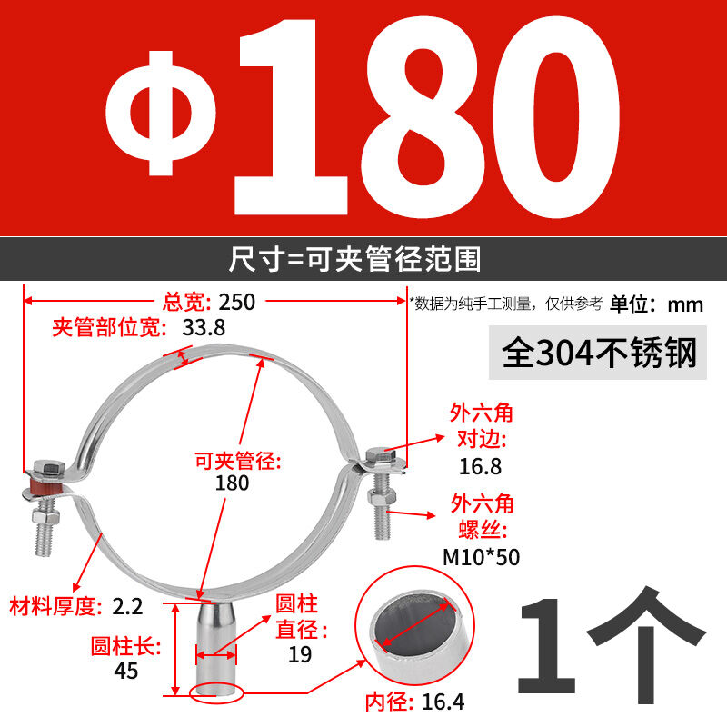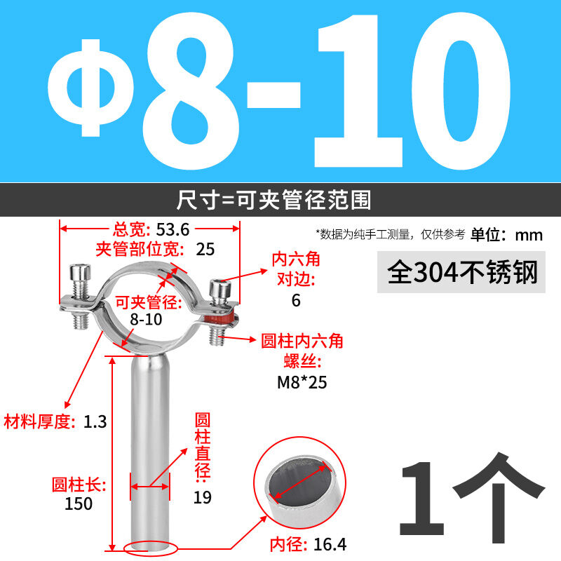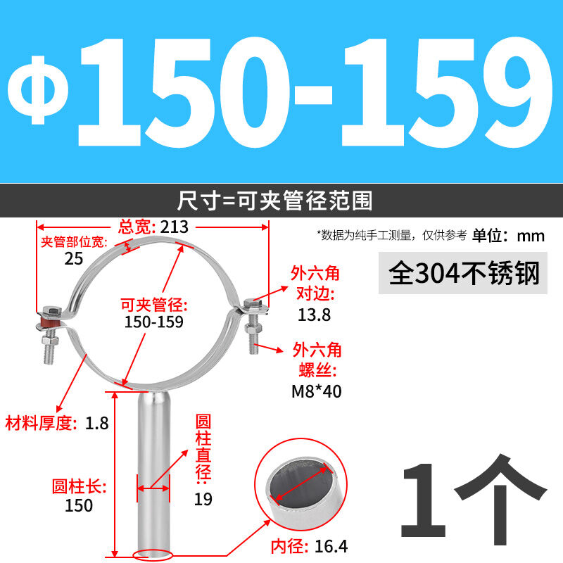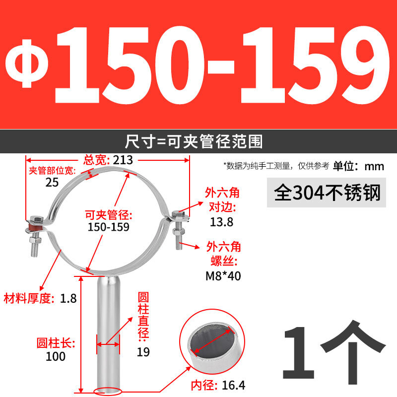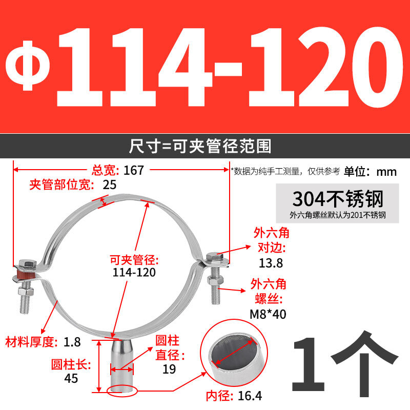 304 스테인레스 스틸 파이프 클램프 워터 파이프 고정 연장 파이프 브래킷 라운드 파이프 용접 후프 버클 PVC 잠금 후프