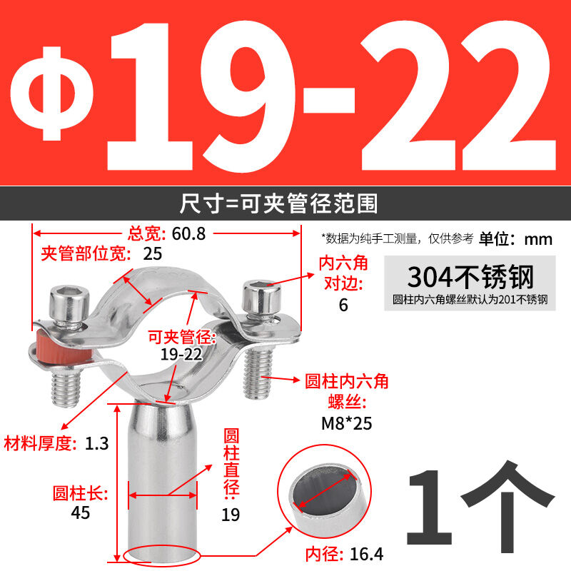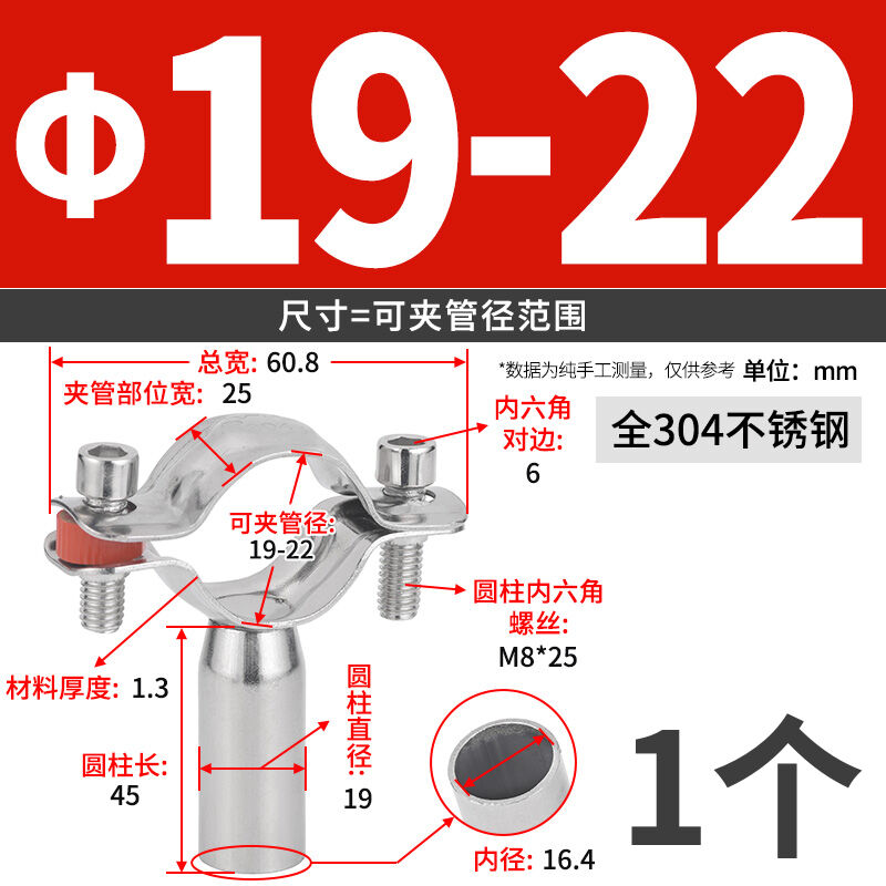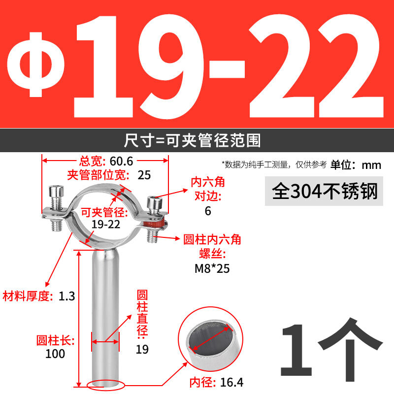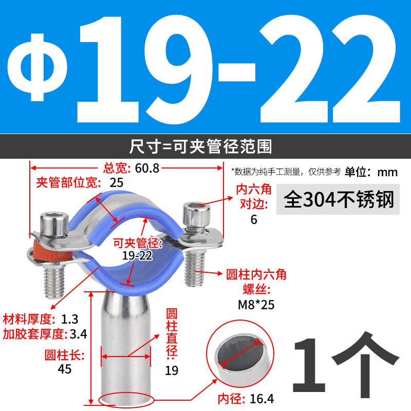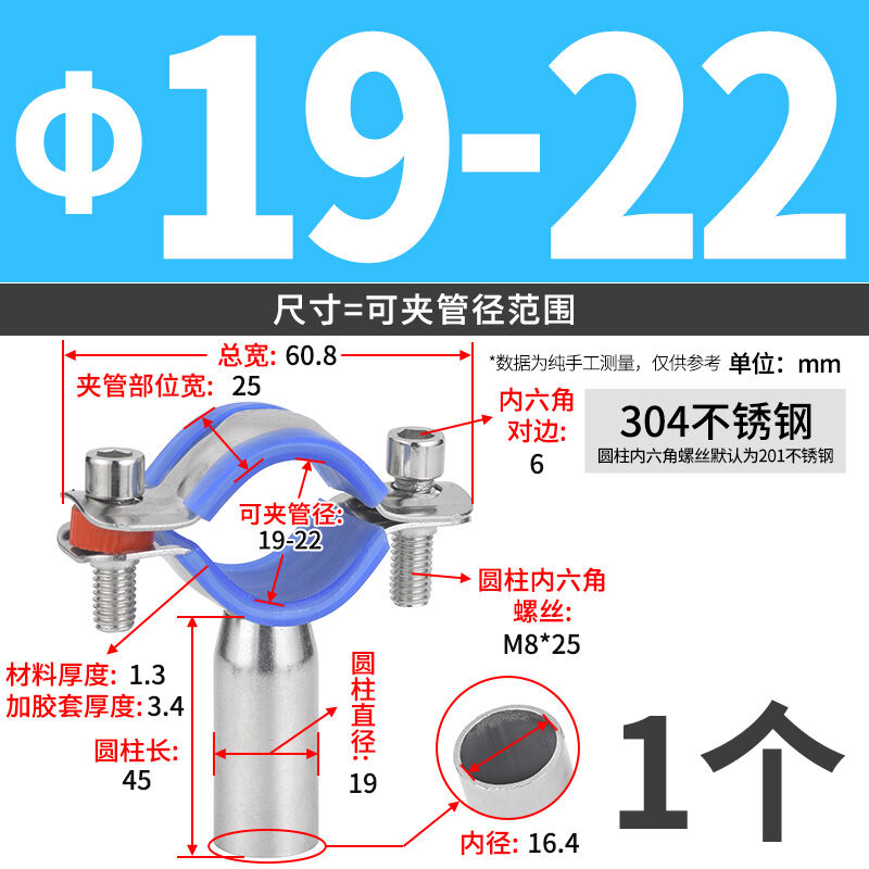 • 고무 패드가 있는 전체 304 19-22mm(튜브 길이 45mm)
