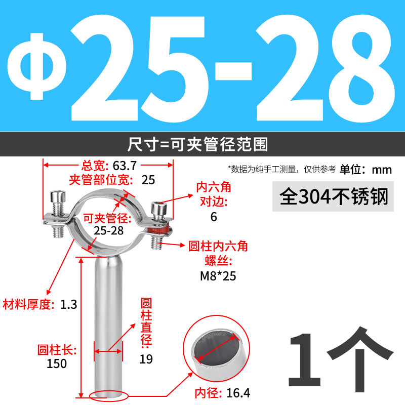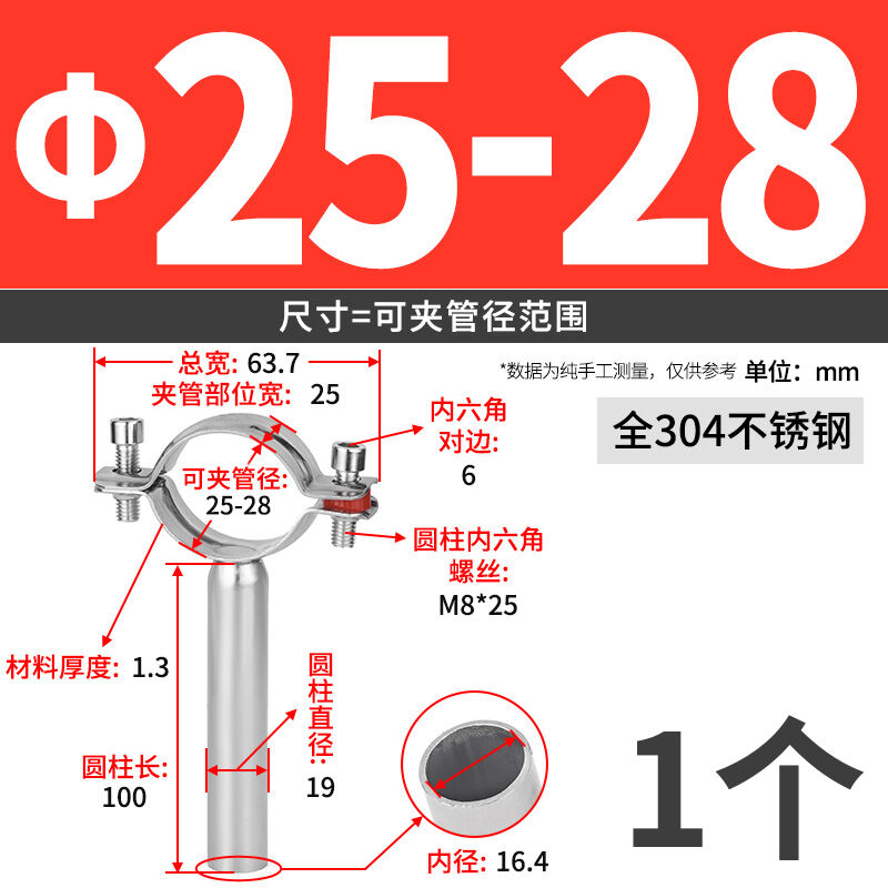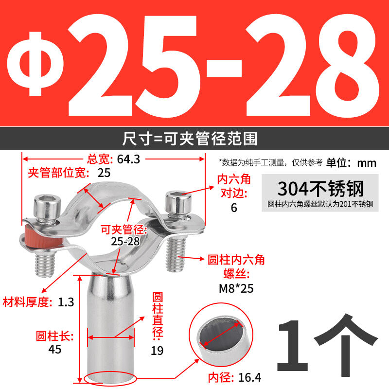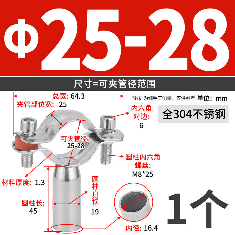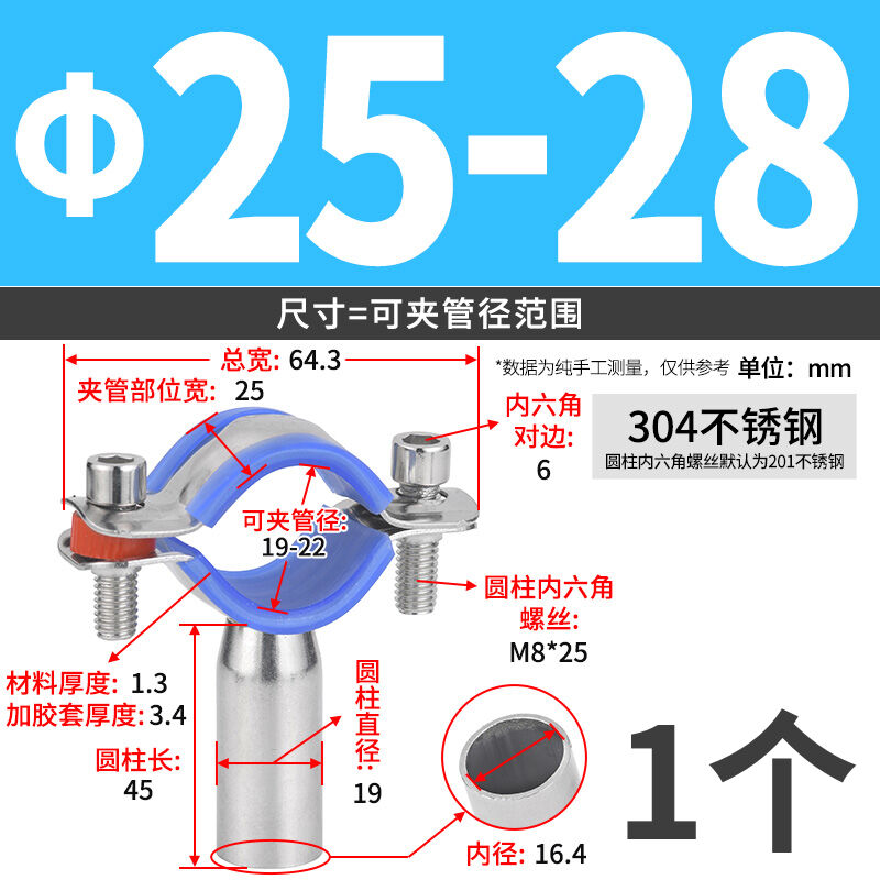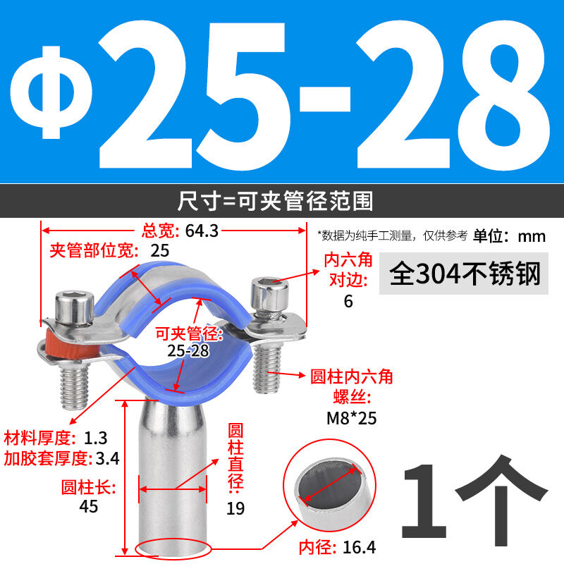 • 고무 패드가 있는 전체 304 25-28mm(튜브 길이 45mm)