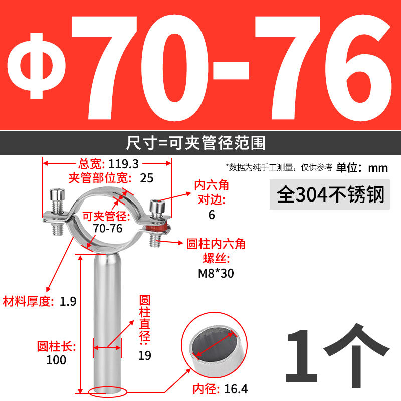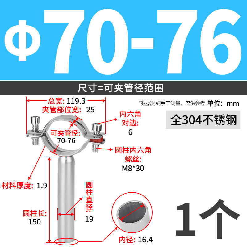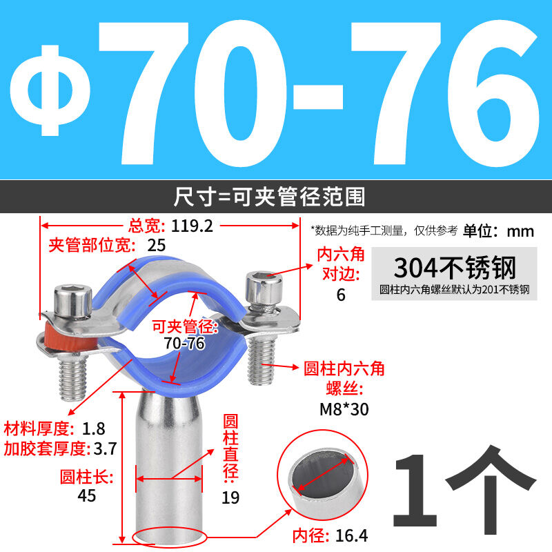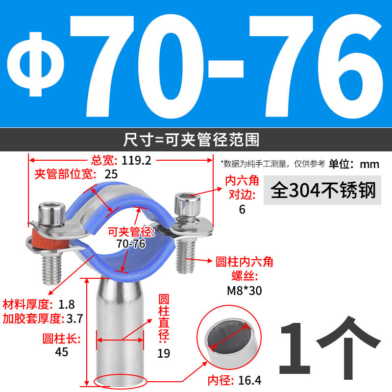 • 고무 패드 70-76mm가 포함된 전체 304(튜브 길이 45mm)