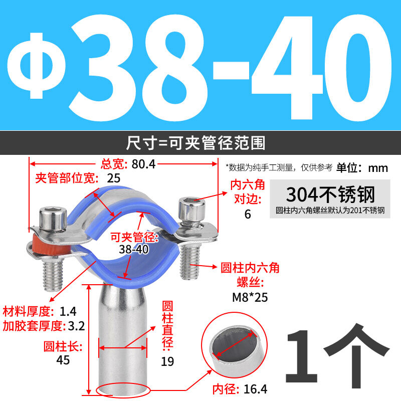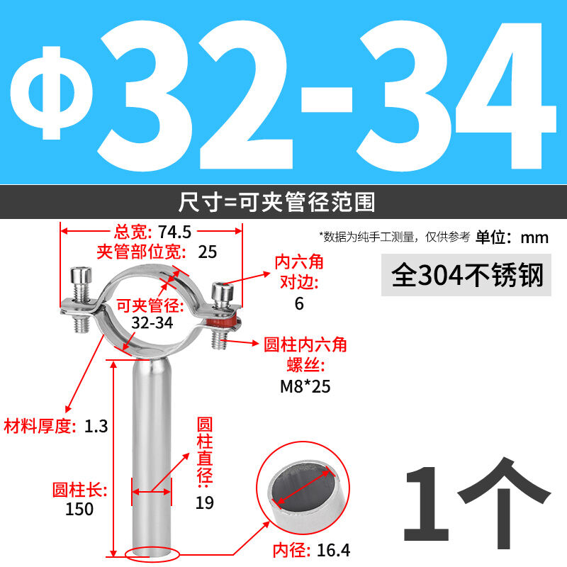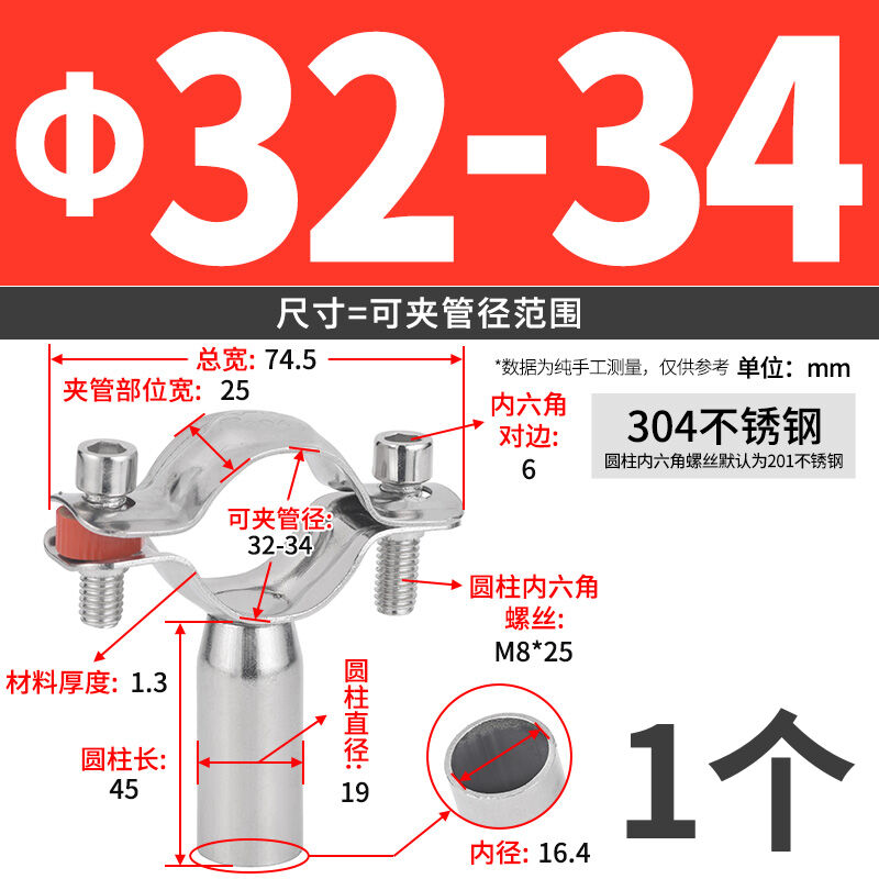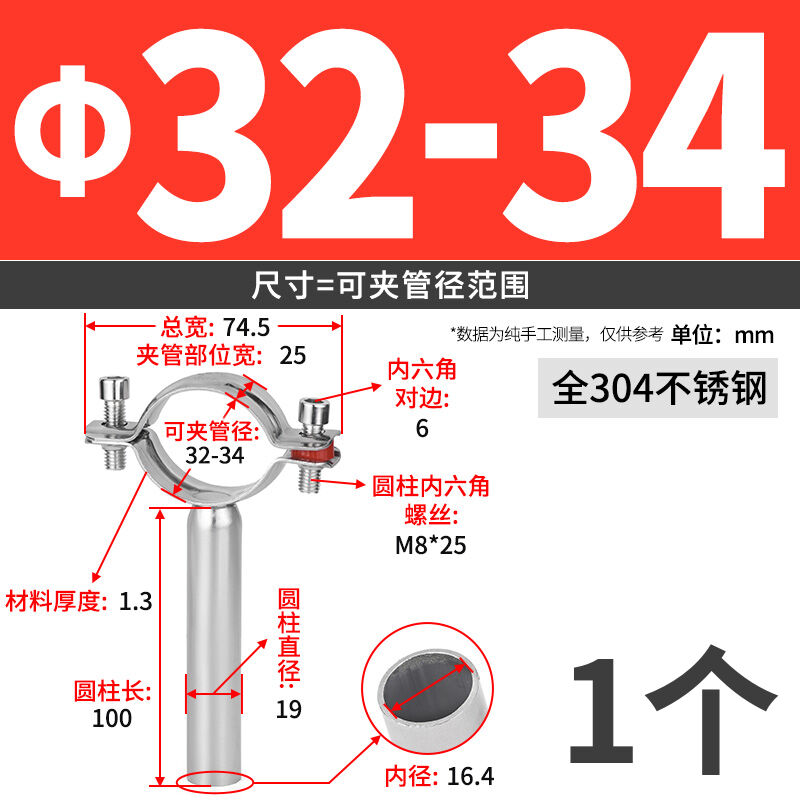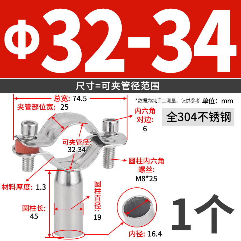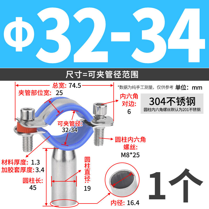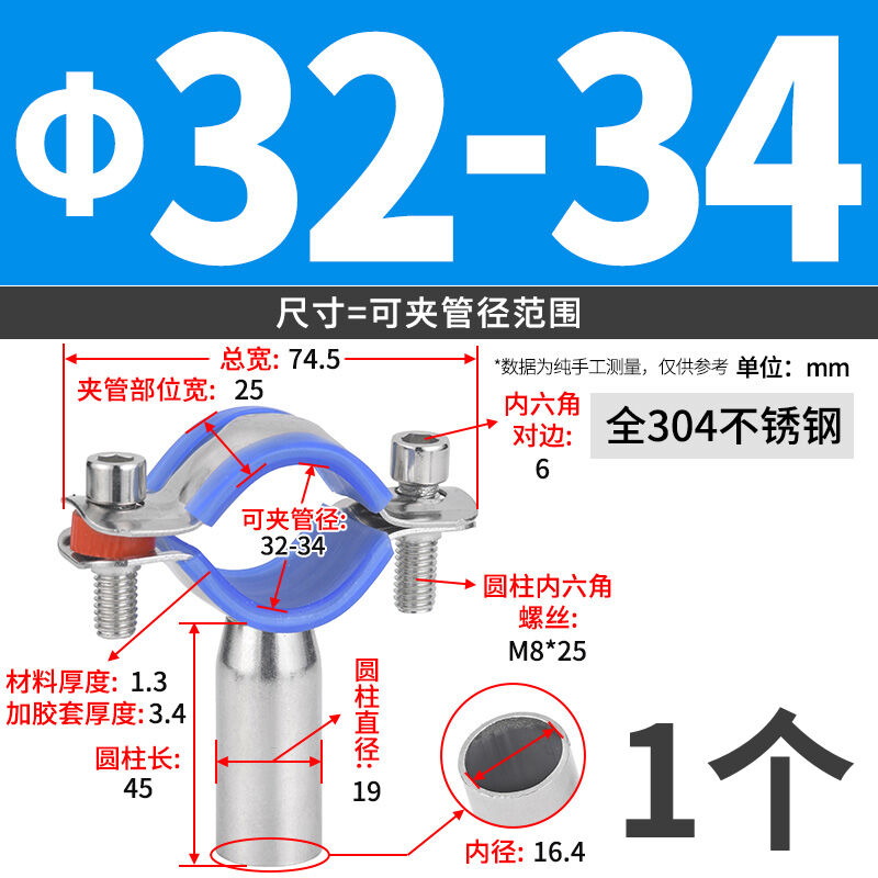 • 고무 패드가 있는 전체 304 32-34mm(튜브 길이 45mm)