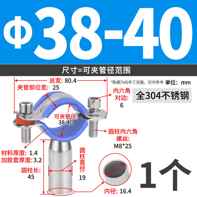 • 고무 패드 38-40mm가 포함된 전체 304(튜브 길이 45mm)