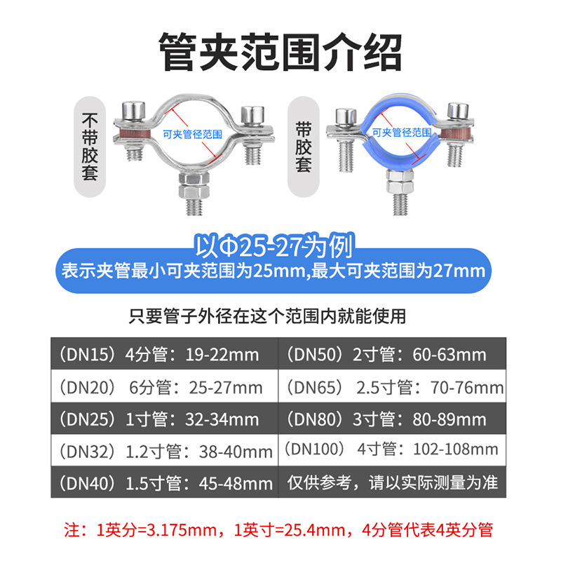 304 스테인레스 스틸 파이프 클램프 워터 파이프 고정 연장 파이프 브래킷 라운드 파이프 용접 후프 버클 PVC 잠금 후프스토어 가기