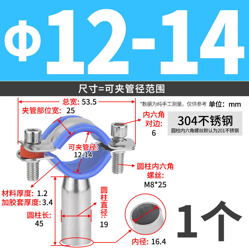 • 고무 패드가 있는 전체 304 12-14mm(튜브 길이 45mm)