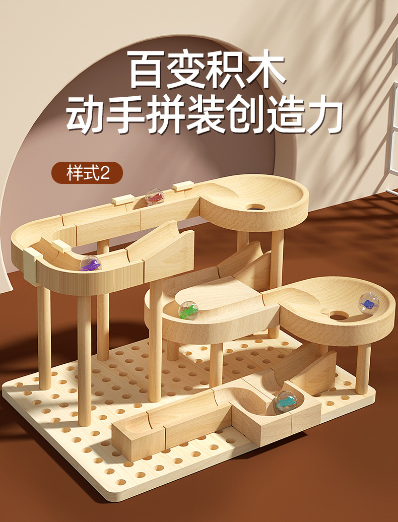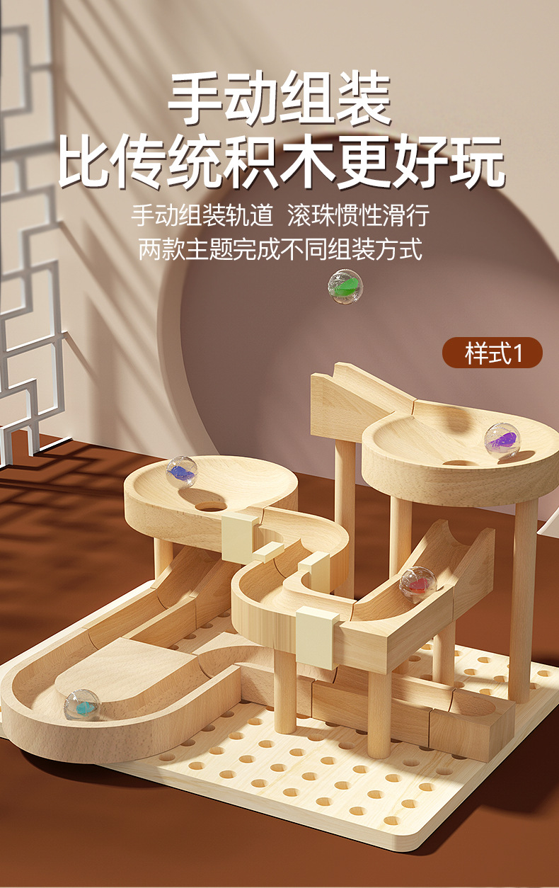 아기 나무 공 트랙 조립 핀볼 트랙 슬라이드 인텔리전스 롤링 볼 빌딩 블록 부모-어린이 교육 장난감스토어 가기