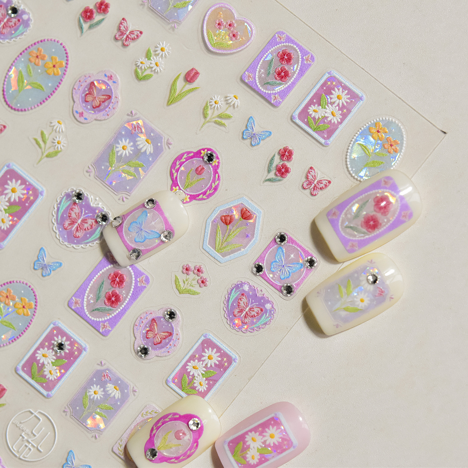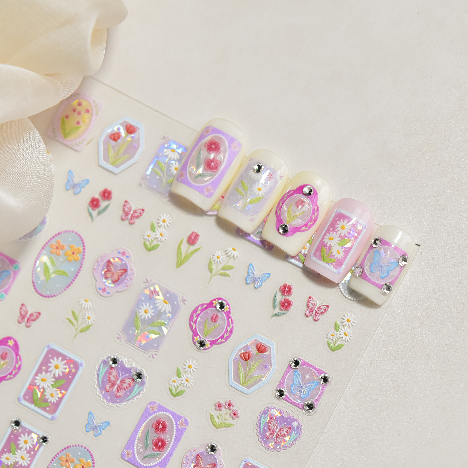 Tomoni 크리스탈 다이아몬드 네일 아트 스티커 Diy 폭발성 휴대 전화 어린이 네일 스티커 데이지 꽃 프레임 보석 스티커 네일 아트