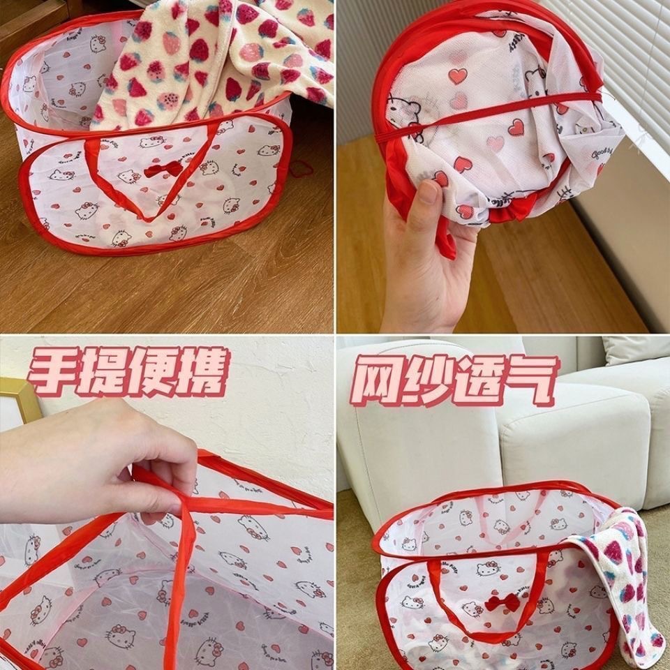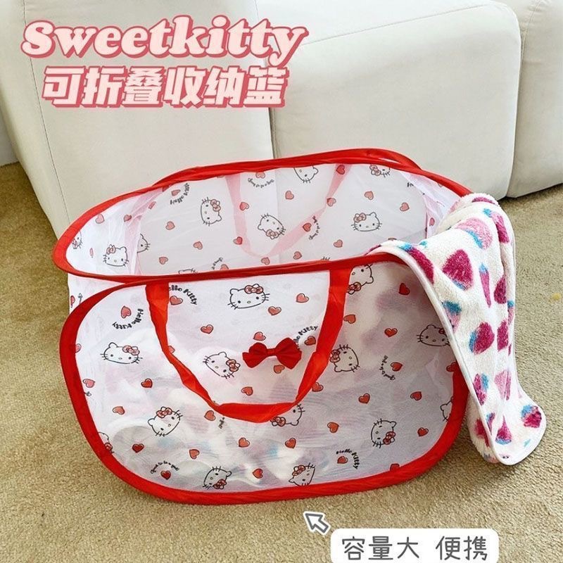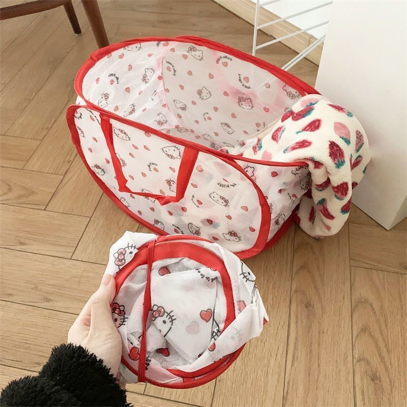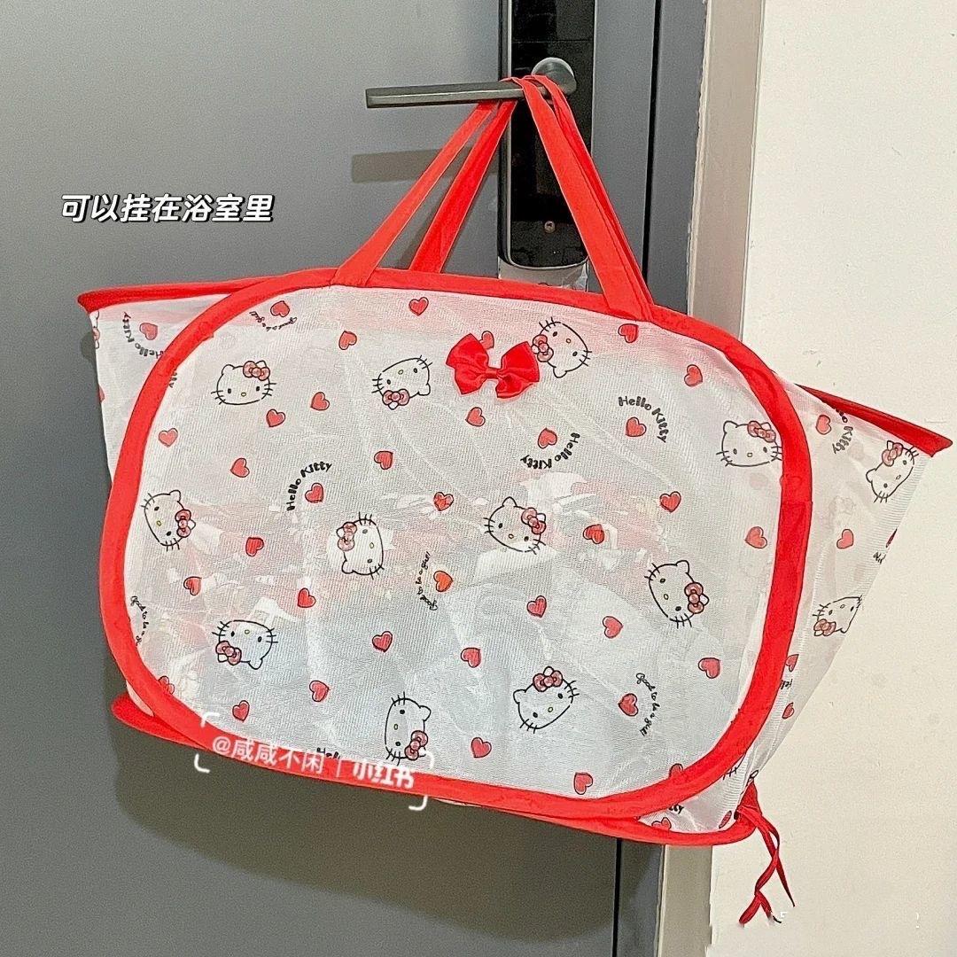 Ins Girl Heart Cartoon KT 고양이 접이식 보관 가방 더러운 옷 보관 바구니 세탁 바구니 더러운 옷 바구니 걸이 가방스토어 가기