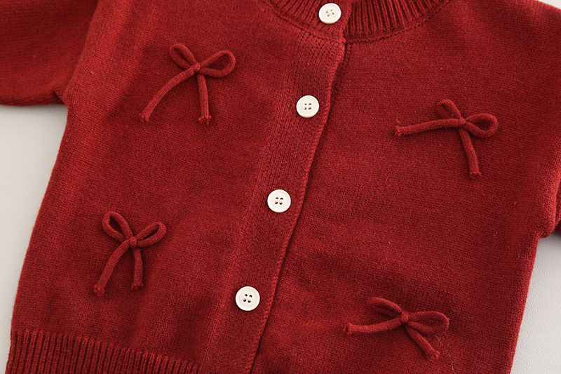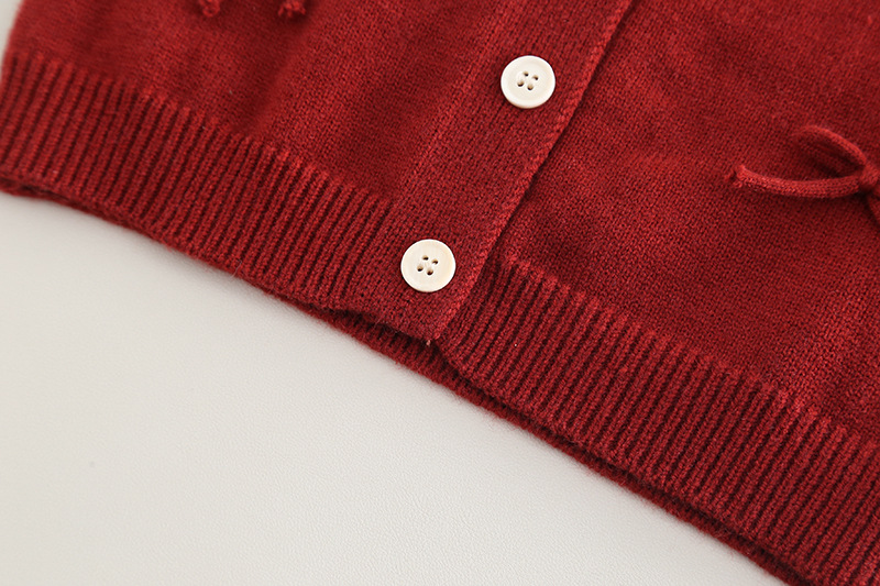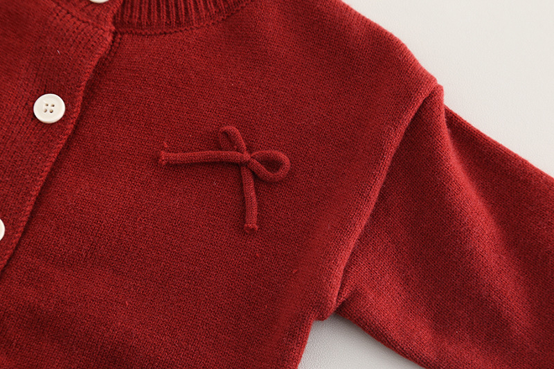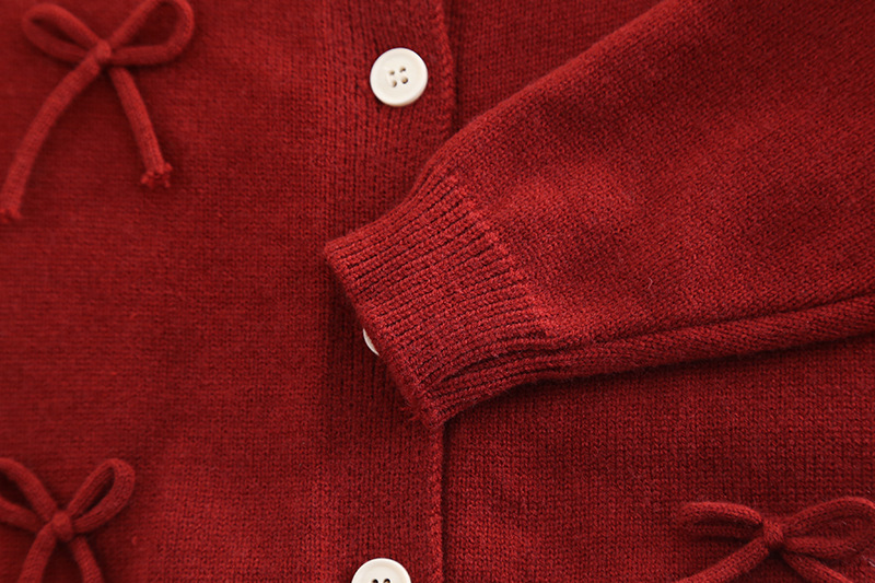• 꽃무늬 4 리본 스웨터 3피스 세트 레드
