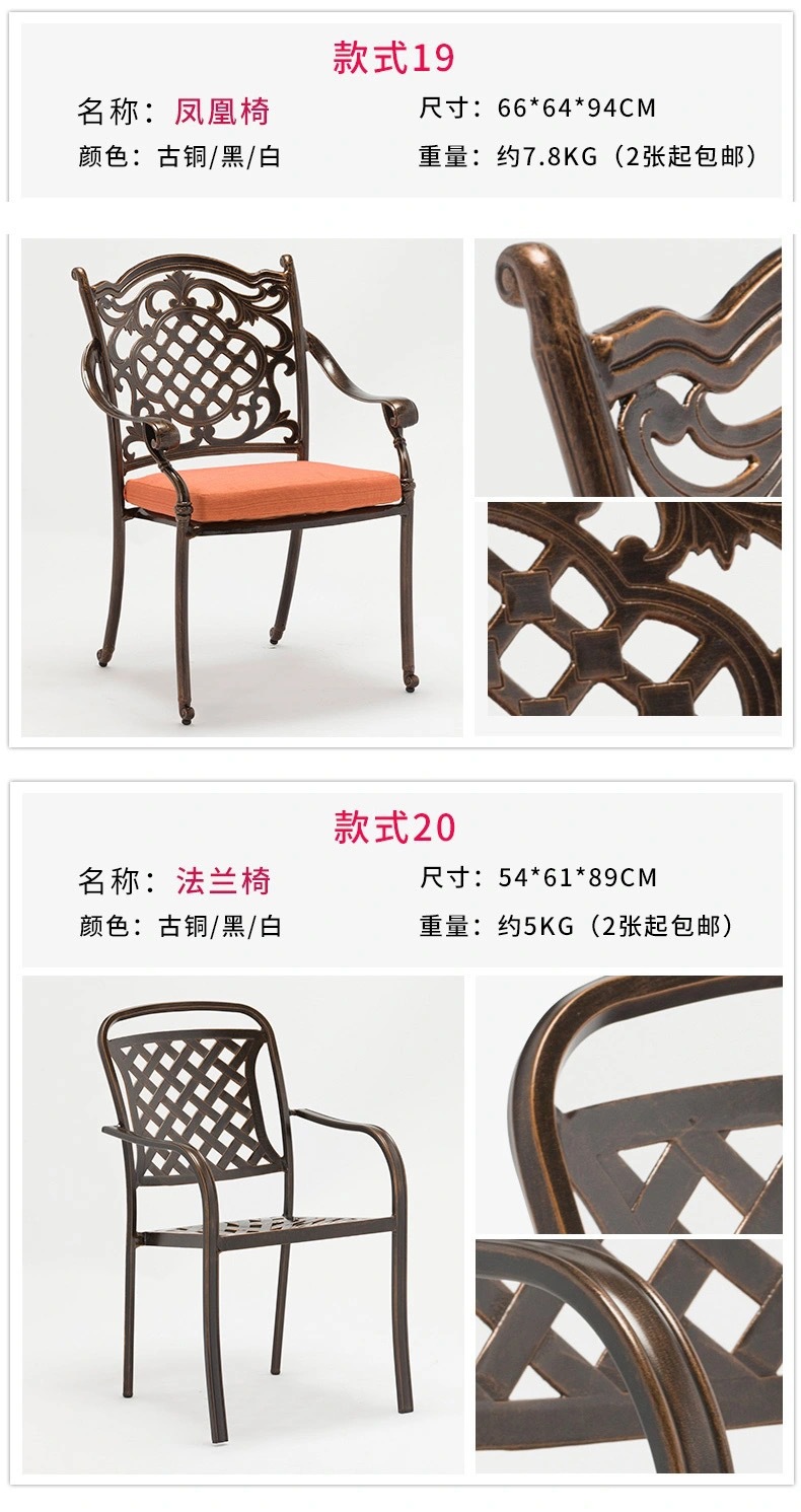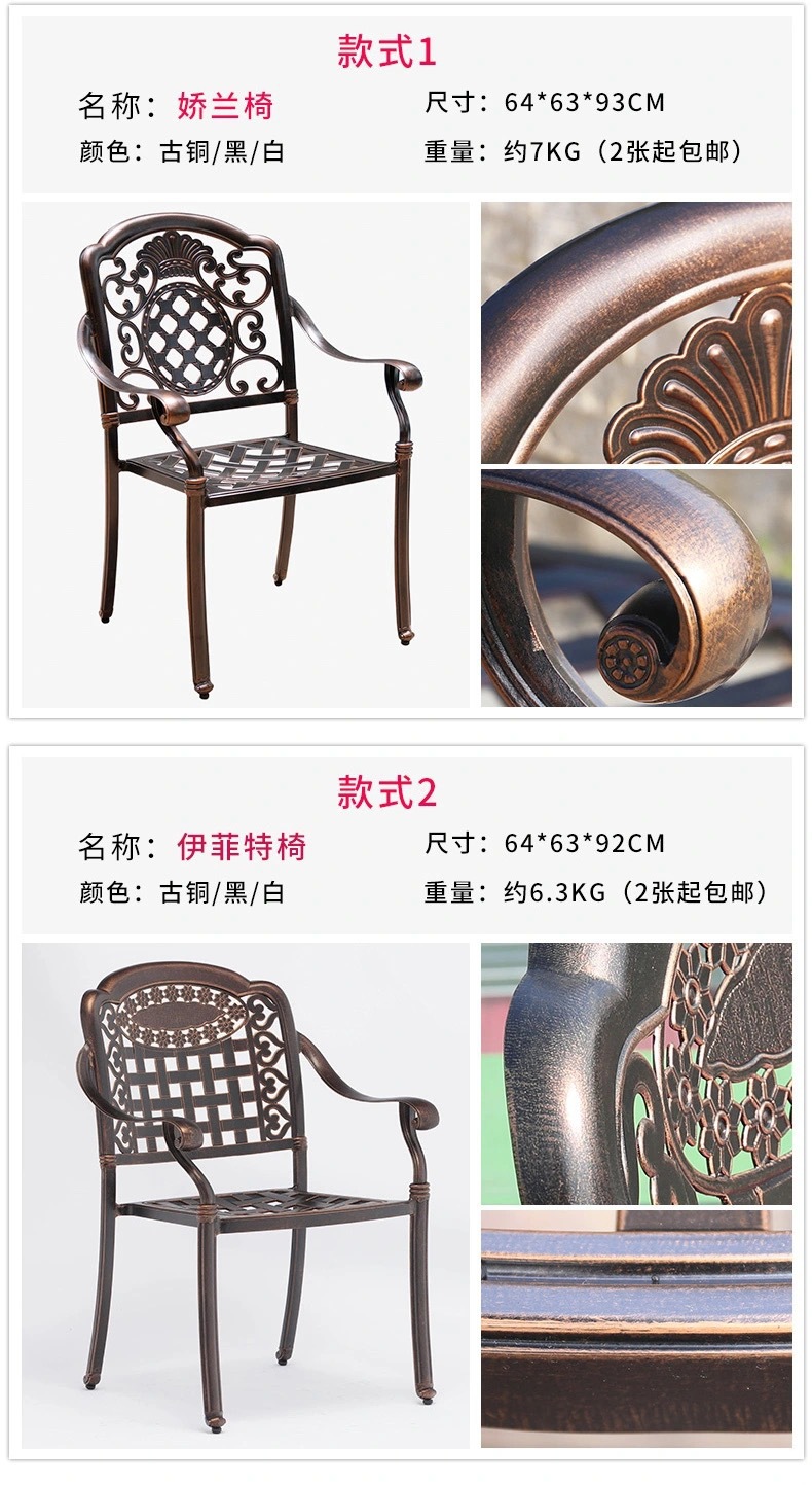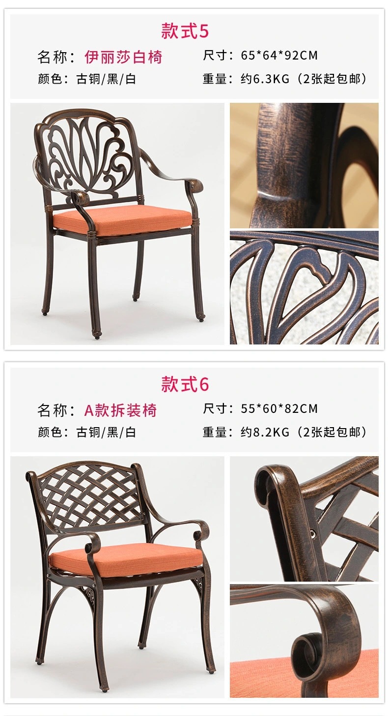야외 캐스트 알루미늄 의자 안뜰 발코니 의자 조합 야외 정원 빌라 레저 등받이 의자 홈 방수 단순