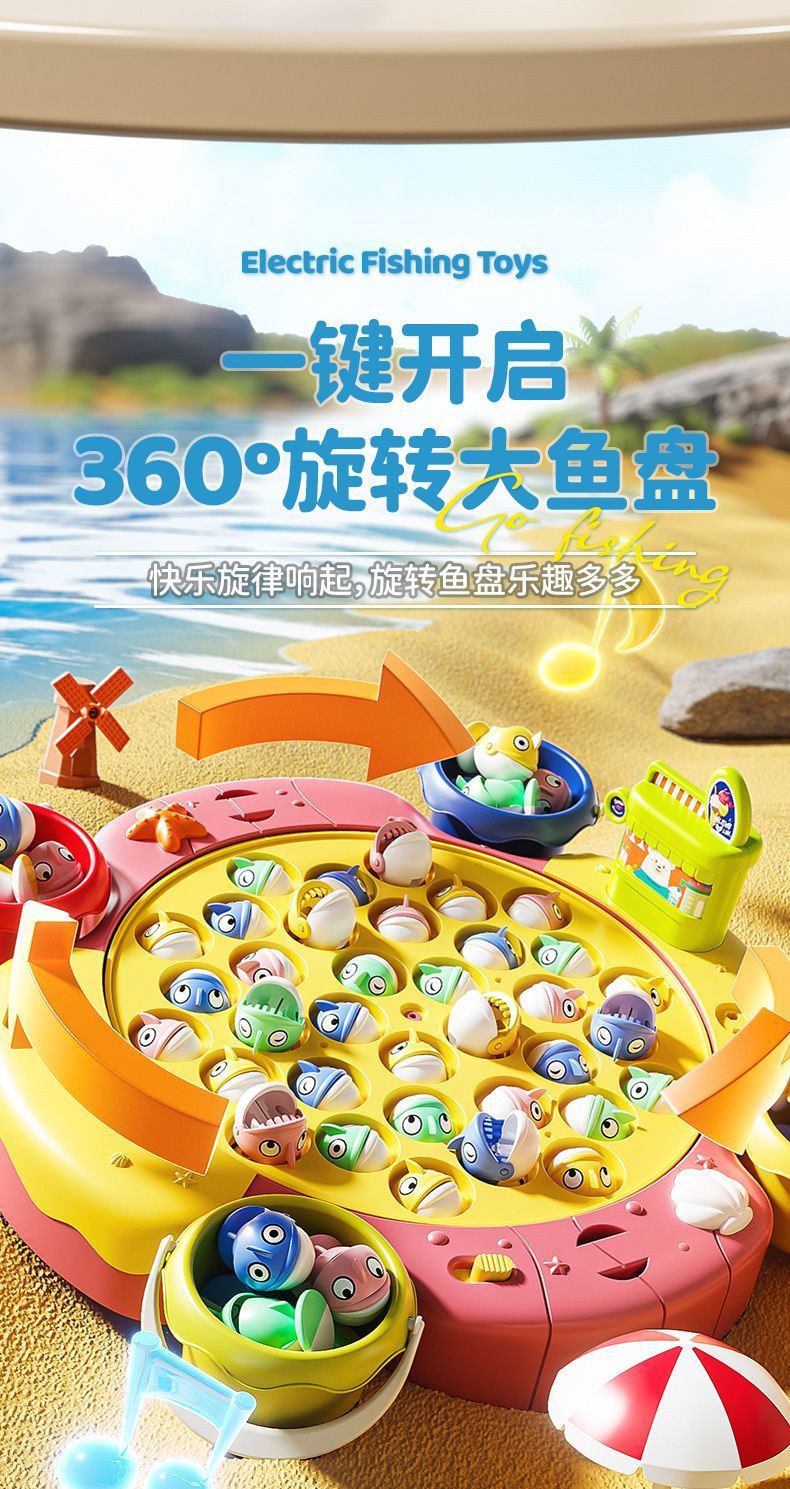 대형 어린이 낚시 장난감 전기 회전 음향 효과 자기 낚싯대 아기 장난감 3 ~ 6 세