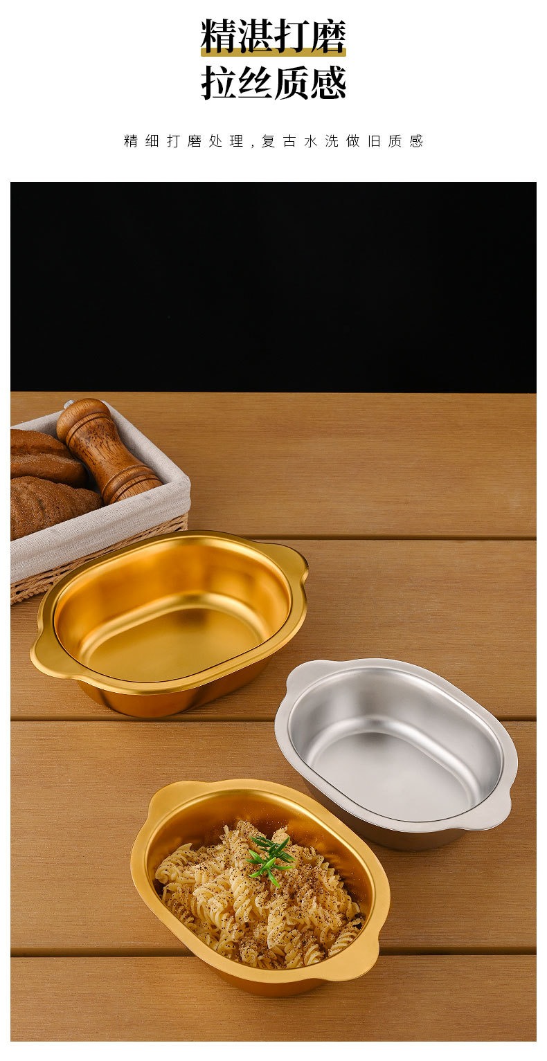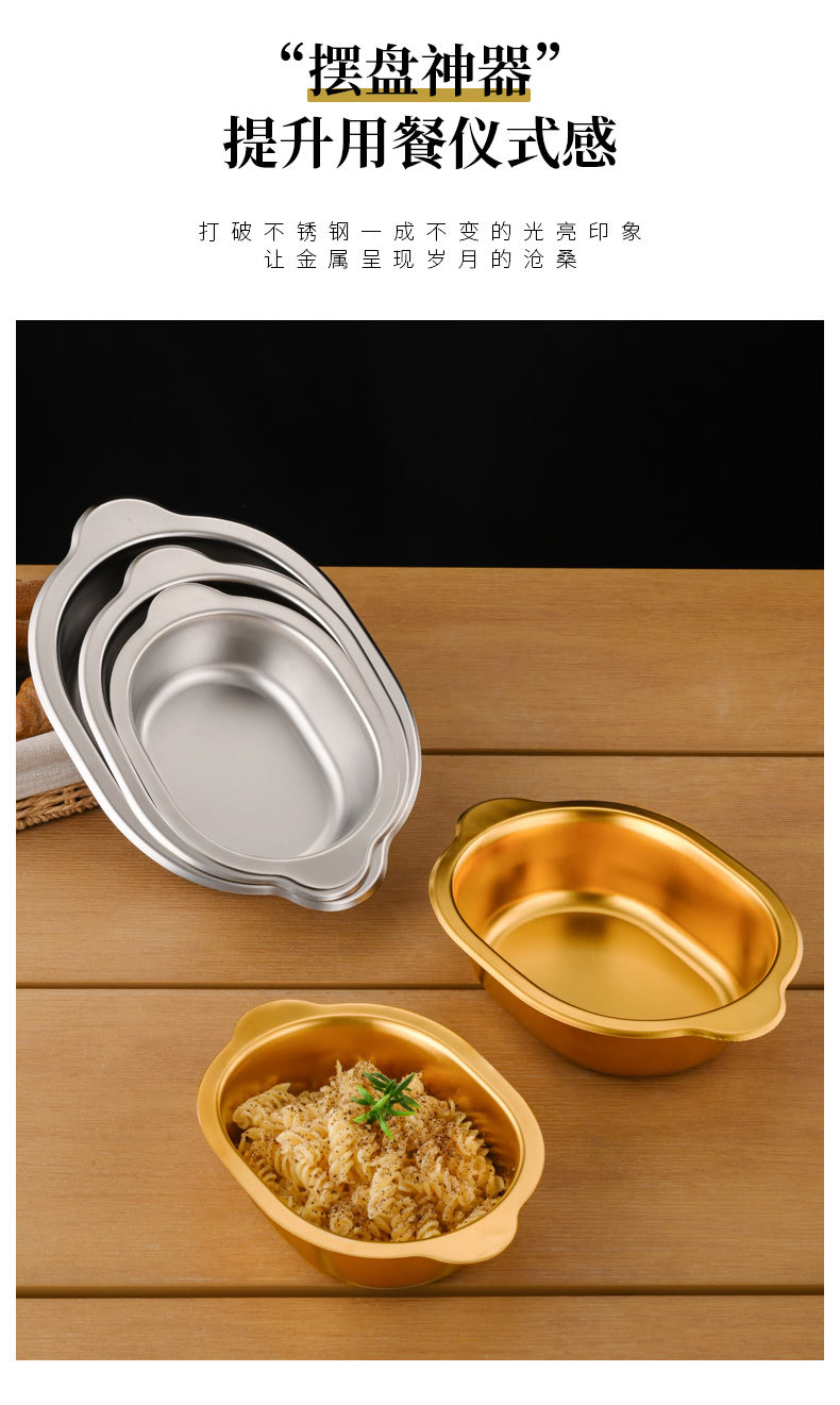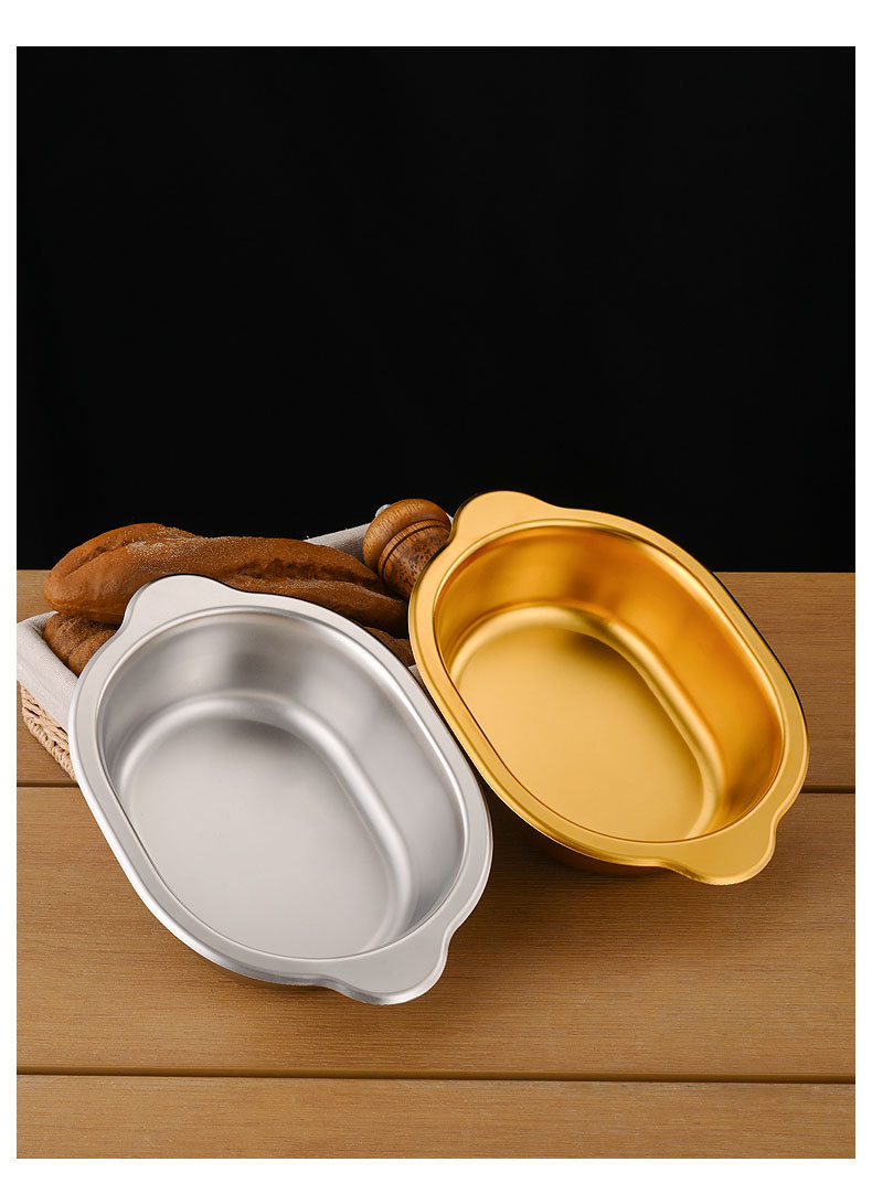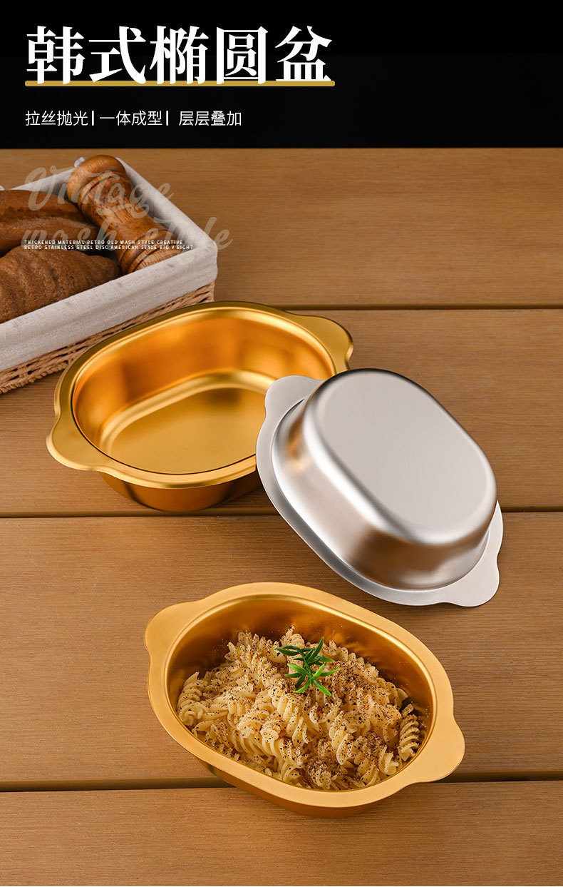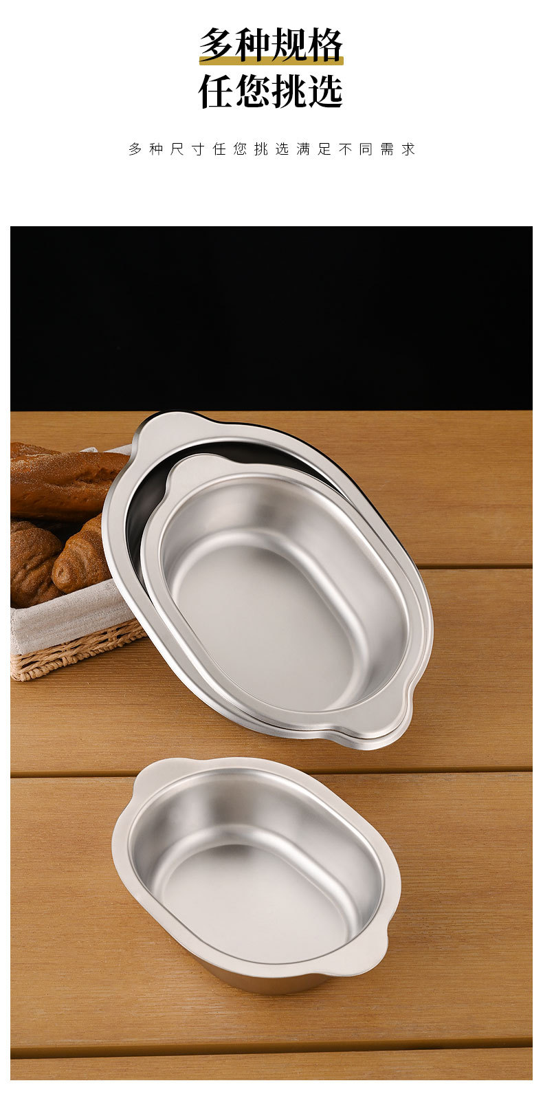 한국식 스테인레스 스틸 타원형 분지 풀 분지 건조 포트 상업용 이중 이어 그릇 프라이드 치킨 플레이트 평평한 바닥 샐러드 그릇 스낵 분지