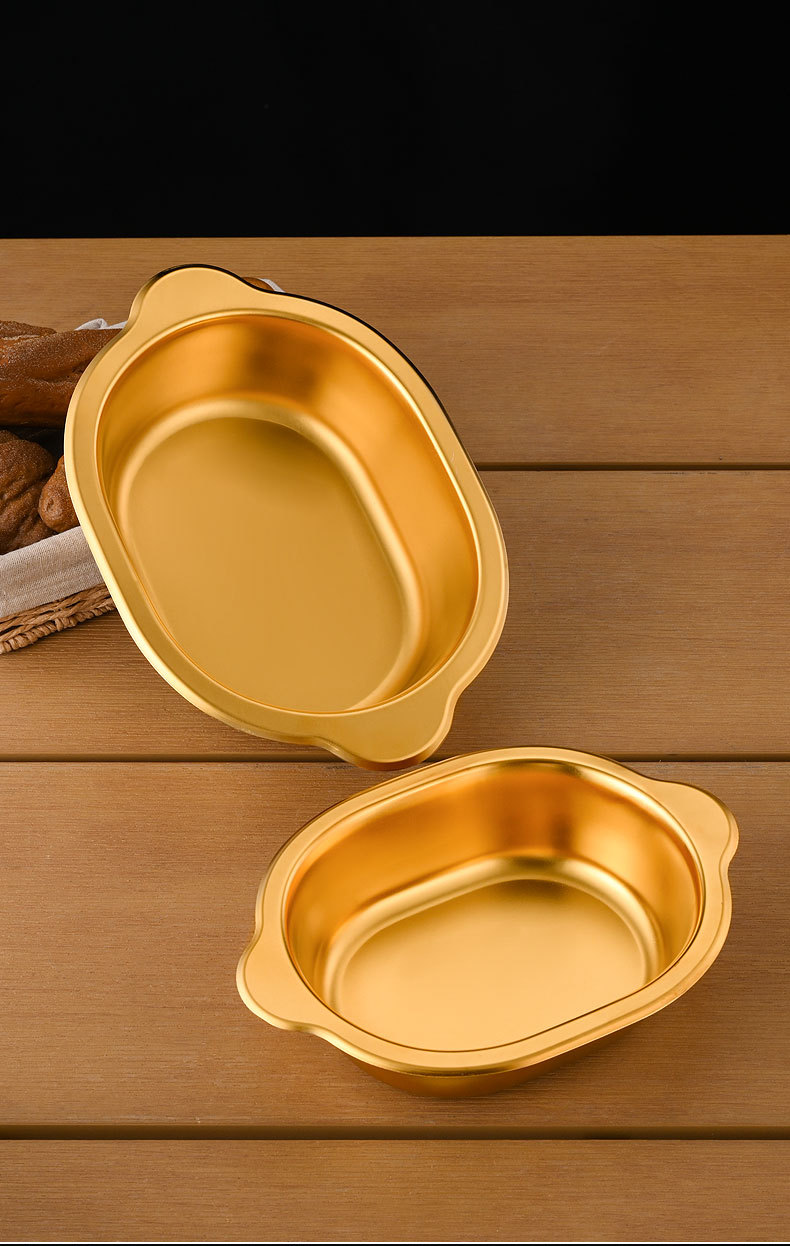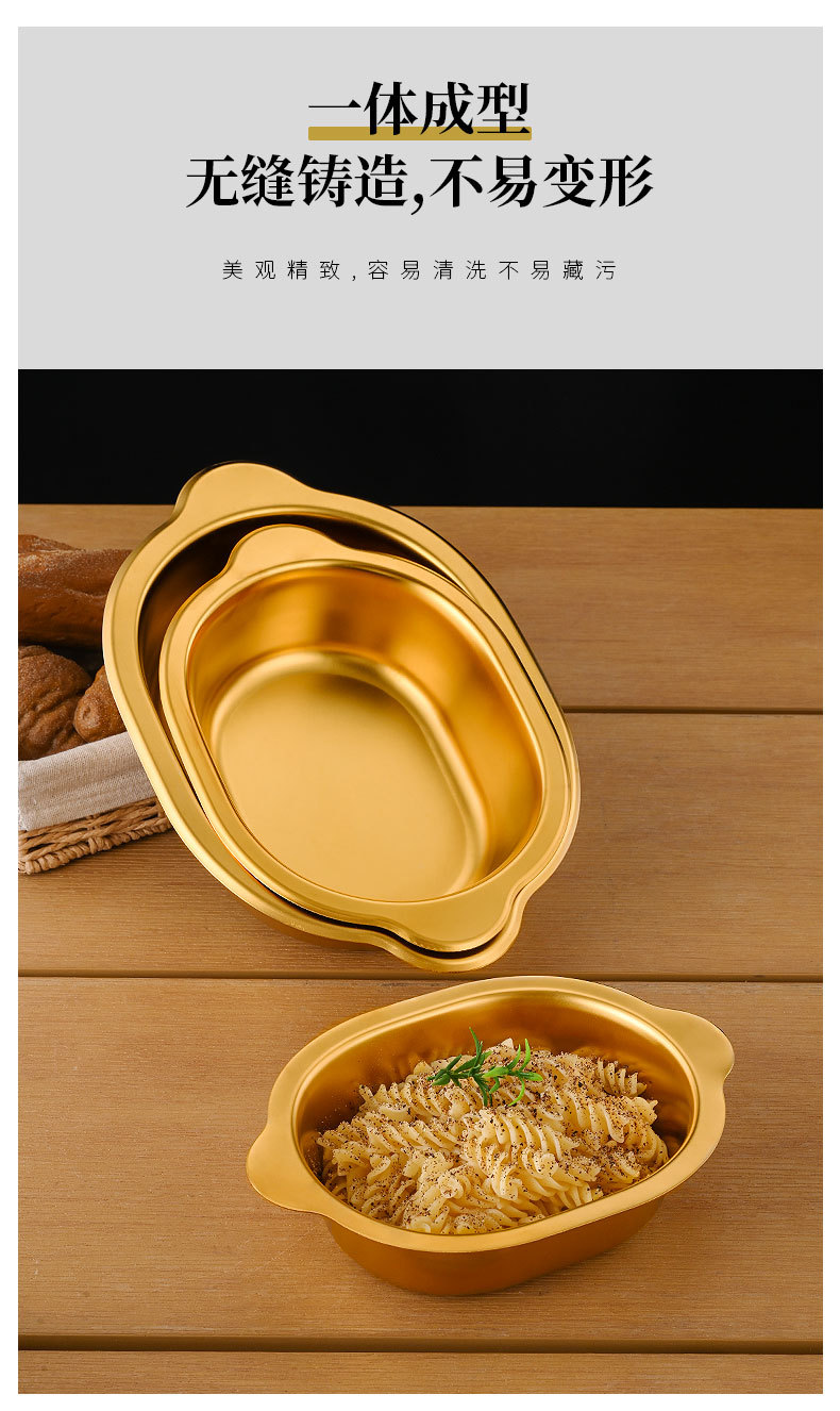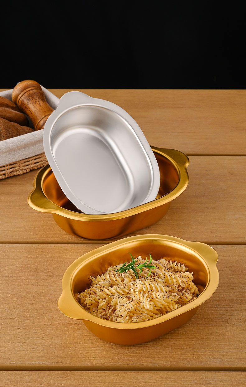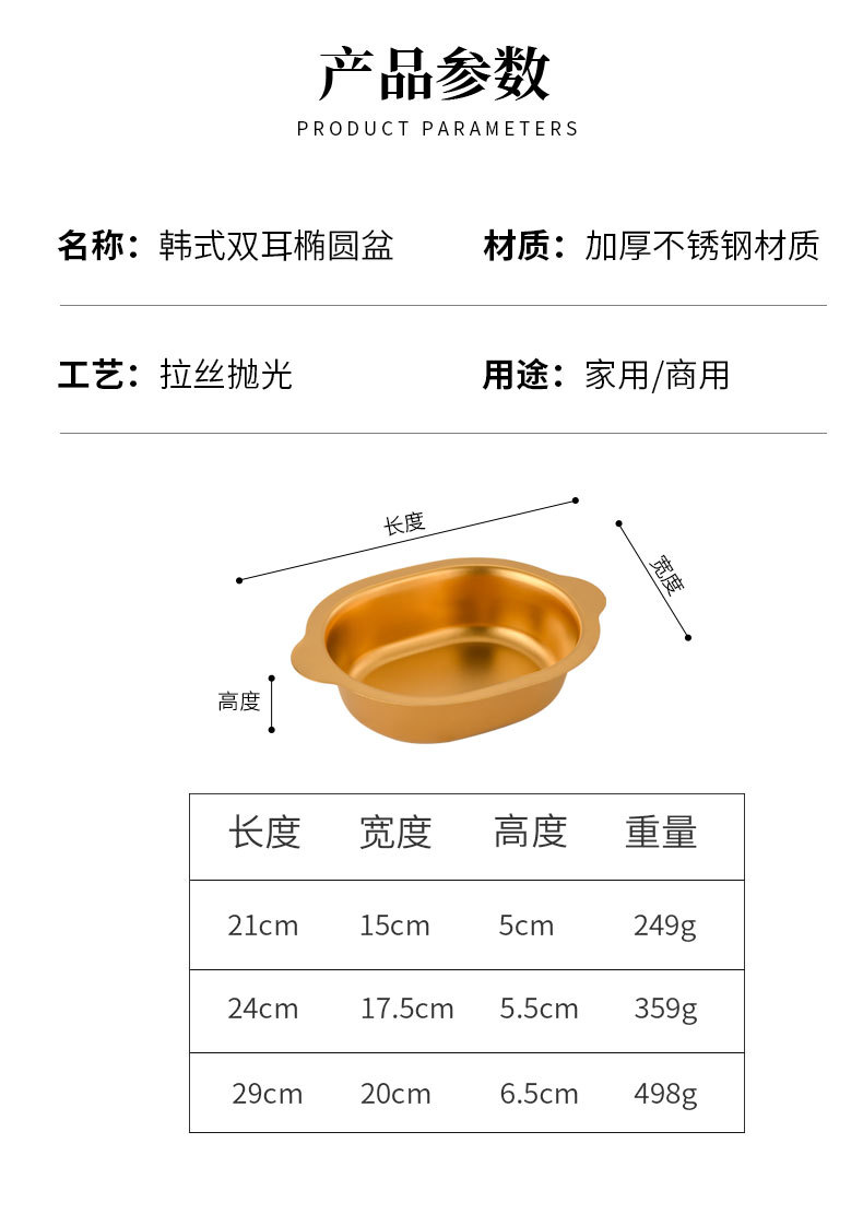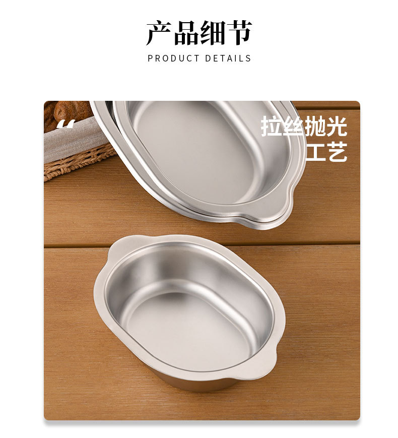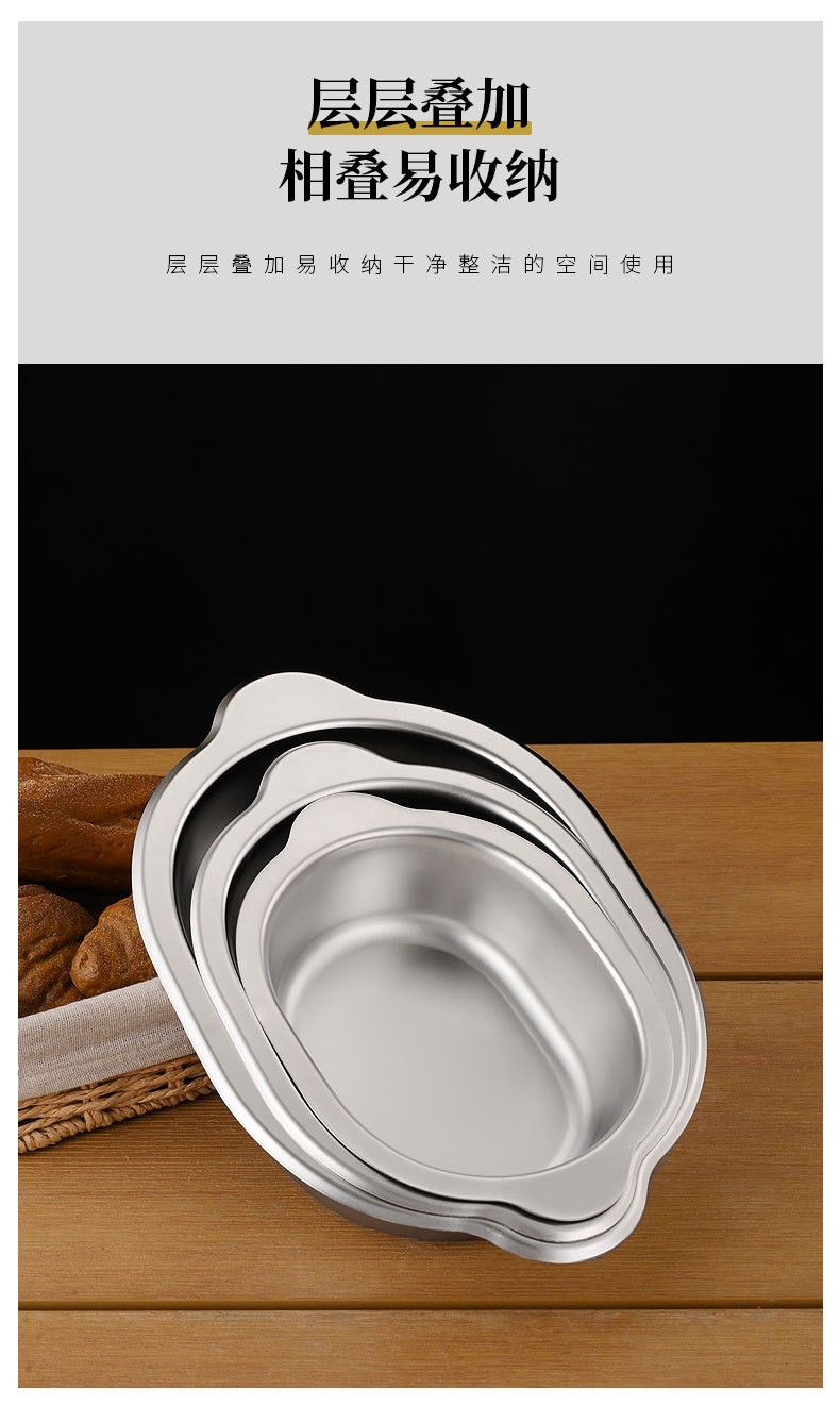 한국식 스테인레스 스틸 타원형 분지 풀 분지 건조 포트 상업용 이중 이어 그릇 프라이드 치킨 플레이트 평평한 바닥 샐러드 그릇 스낵 분지
