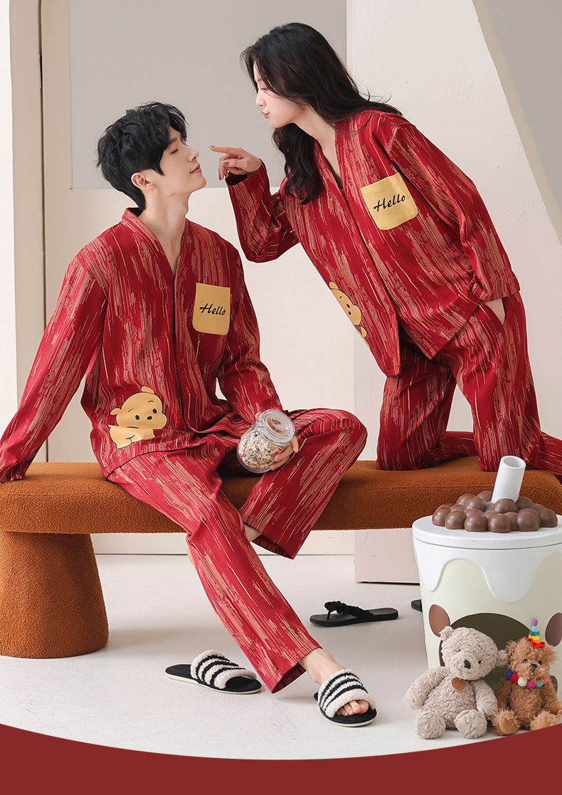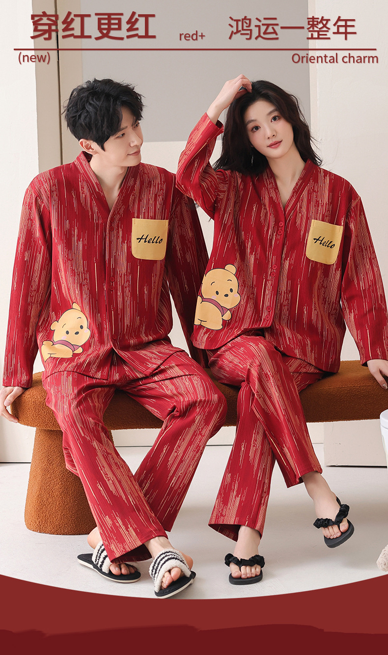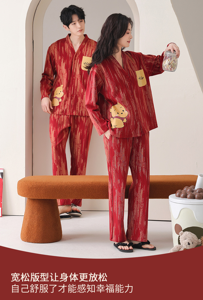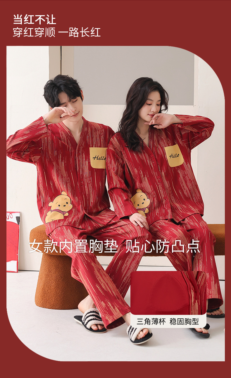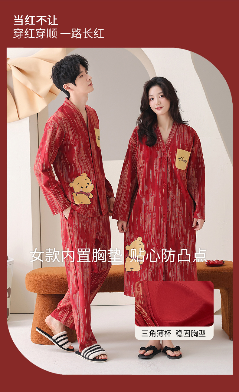 웨딩 파자마 커플의 붉은 봄과 가을 2025 새로운 하이 엔드 웨딩 동반 웨딩 축제 세트 홈 옷스토어 가기