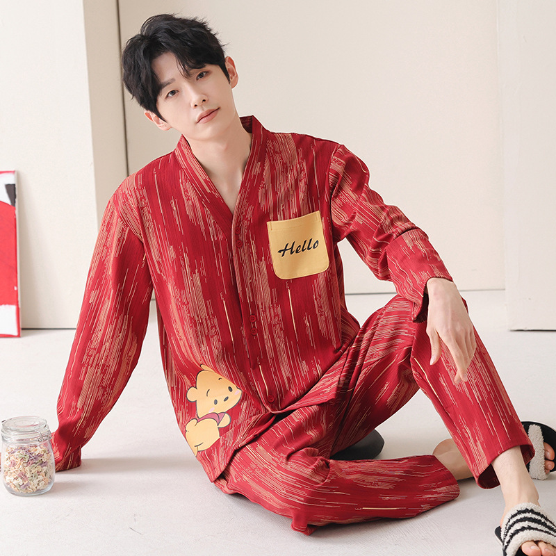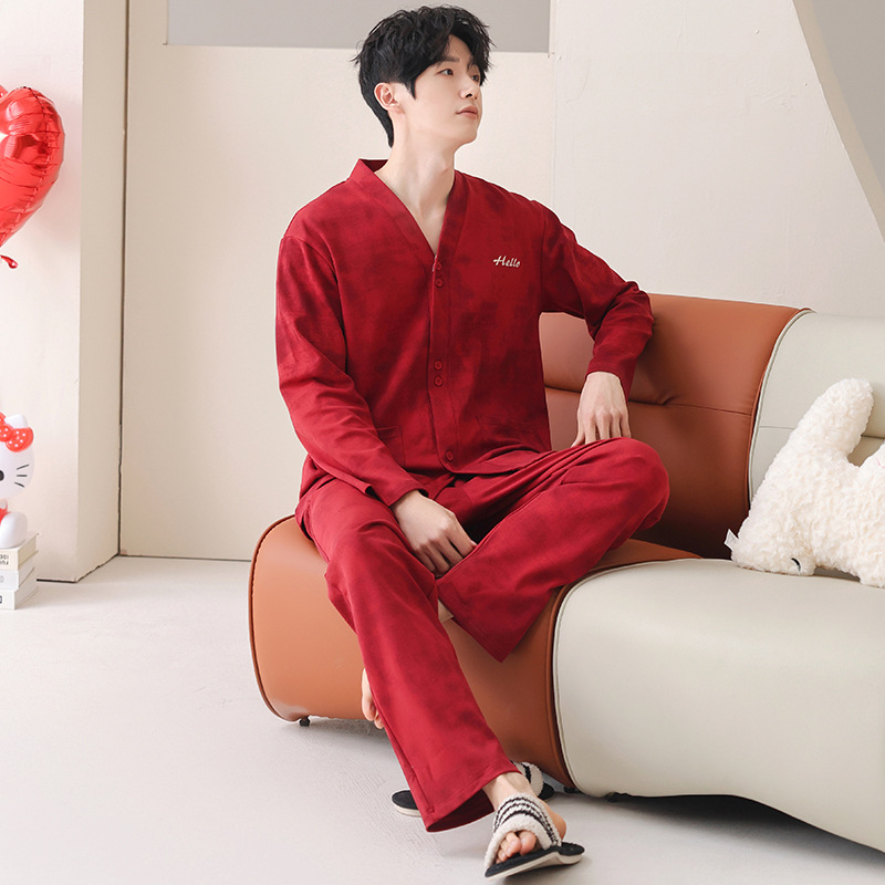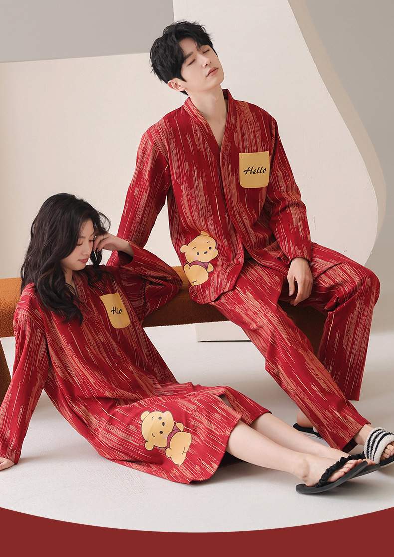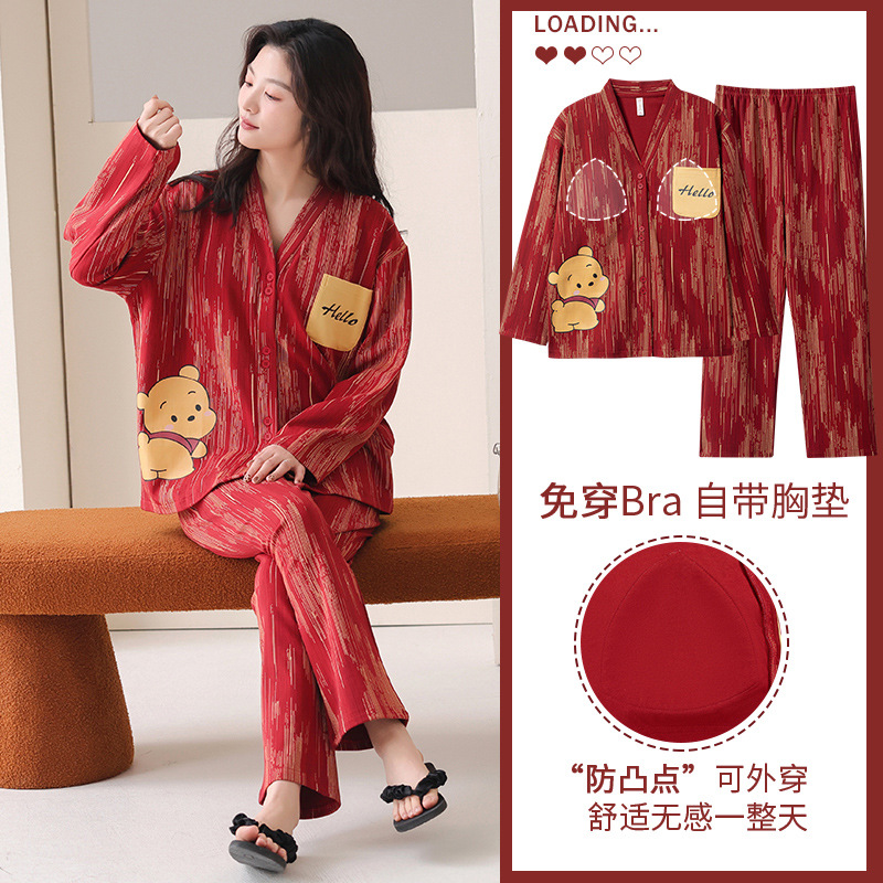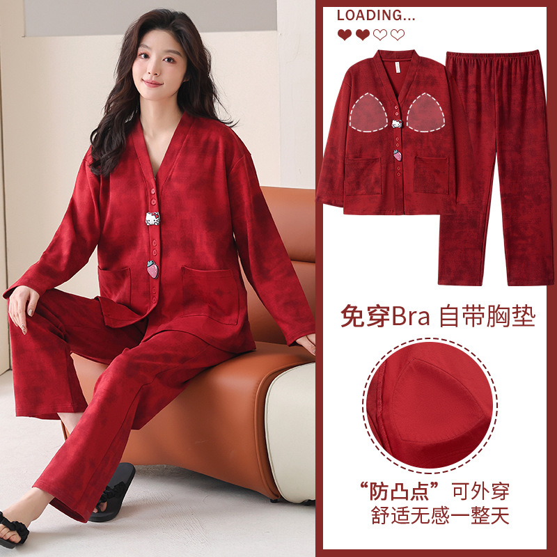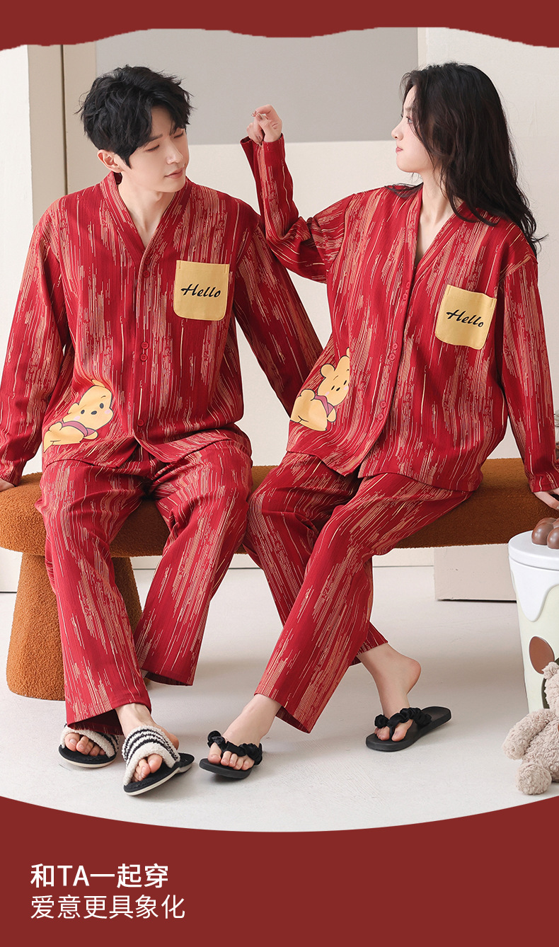 웨딩 파자마 커플의 붉은 봄과 가을 2025 새로운 하이 엔드 웨딩 동반 웨딩 축제 세트 홈 옷스토어 가기