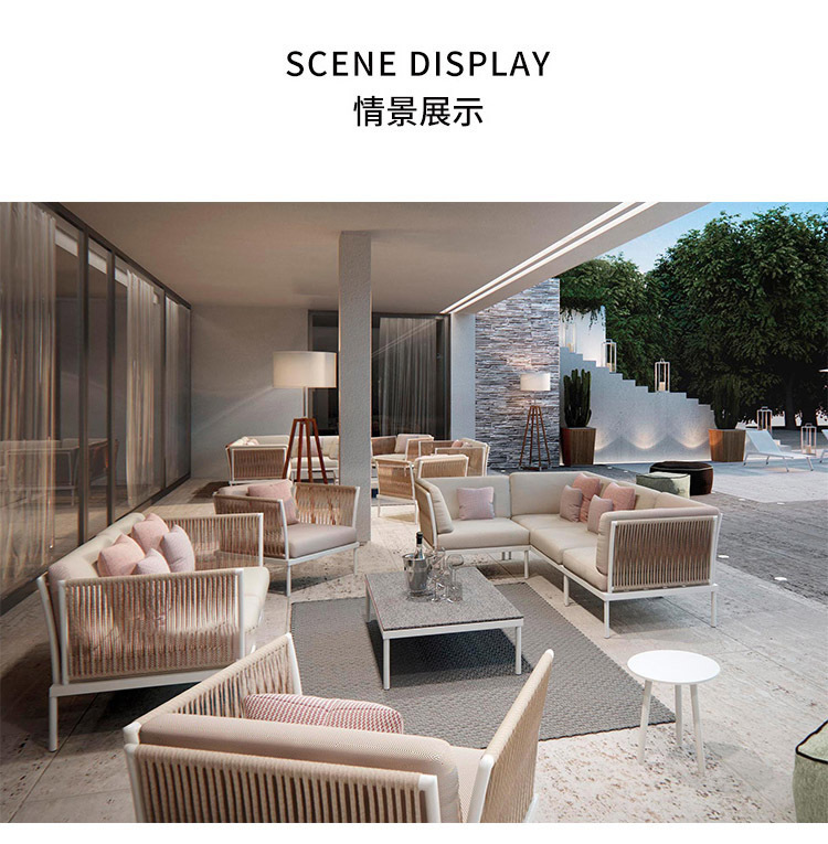 북유럽 스타일 야외 라탄 소파, 안뜰 발코니 테라스 라탄 의자 세트, 정원 빌라 가구, 방수 및 내구성