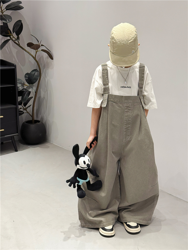 바오두 아동복 남아용 멜빵바지 2025 봄 신상 한국 스타일 아동 캐주얼 바지 봄 가을 긴바지 100-170