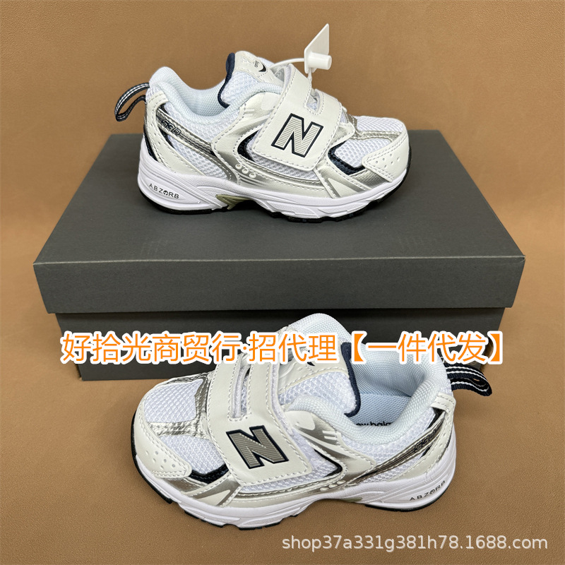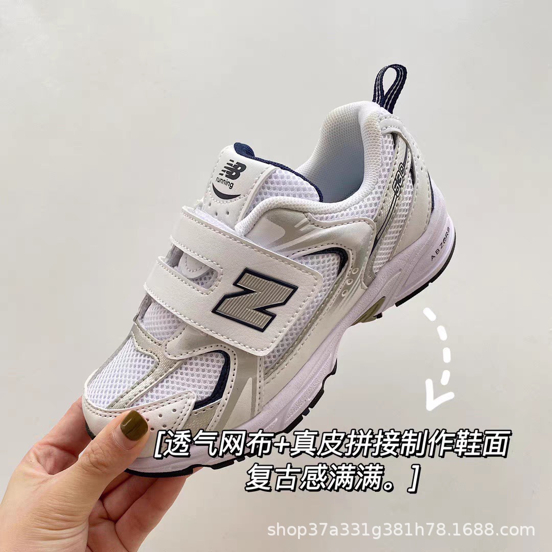 Putian Top with NB530 어린이 신발 레이스 업 무료 운동화 실버 그레이 소년과 소녀 어린이 벨크로 달리기 신발 봄과 여름스토어 가기